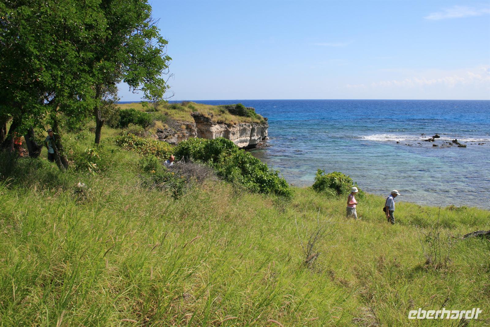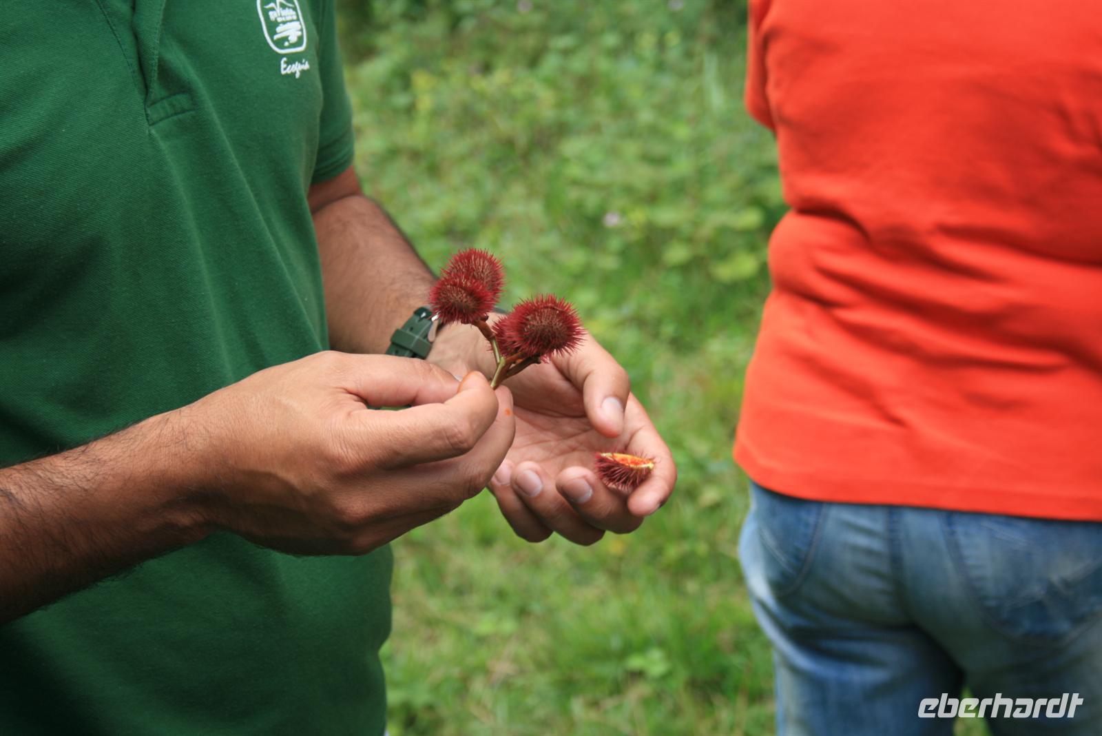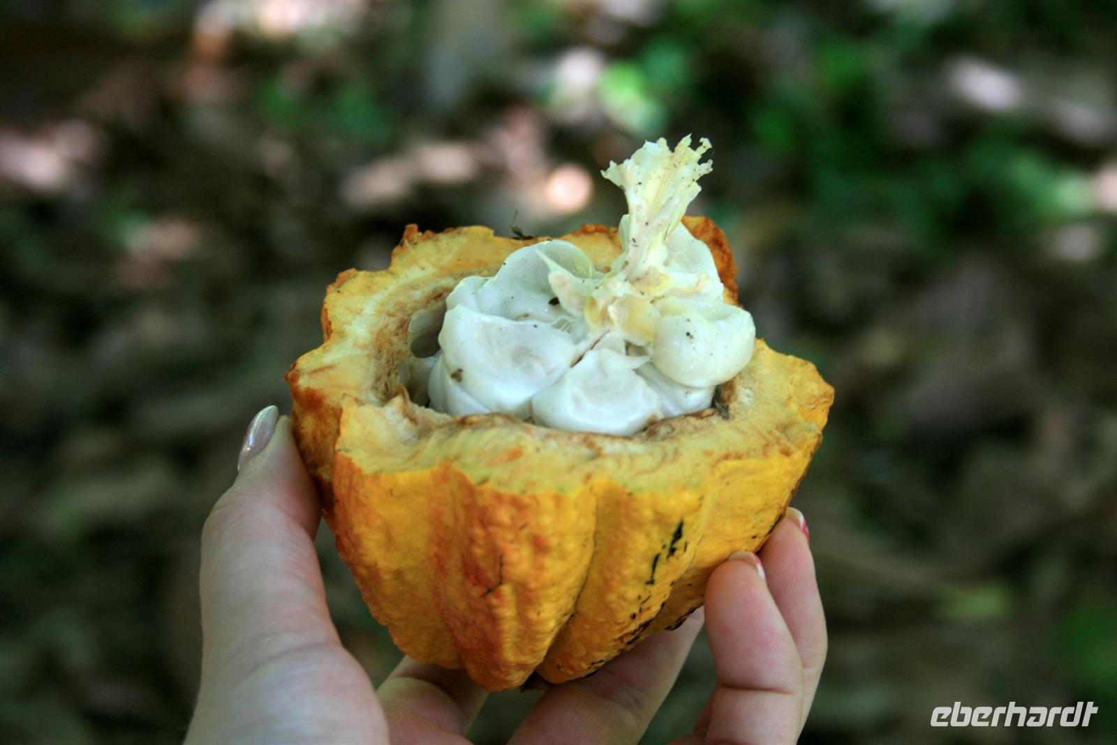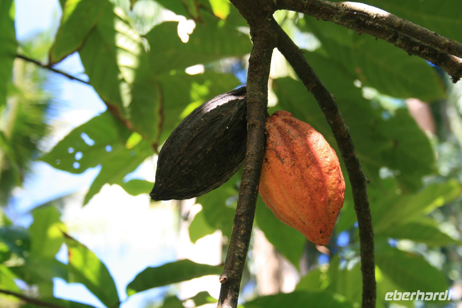 Eine Kostprobe von den hier wachsenden Kakaobohnen und Grapefruits direkt vom Baum darf natürlich auch nicht fehlen. An der Mündung des Toa Rivers angekommen, werden wir von zwei Ruderbooten abgeholt und setzen zum Atlantikstrand über. Die Wellen des „wilden“ Atlantiks bringen eine angenehme frische Brise in das feucht-warme Klima von etwa 30 °C. Dann fahren wir mit den Booten den Toa-Fluss hinauf und beobachten die Vögel und Pflanzenwelt an den Flussufern und Einheimische beim Fischen.