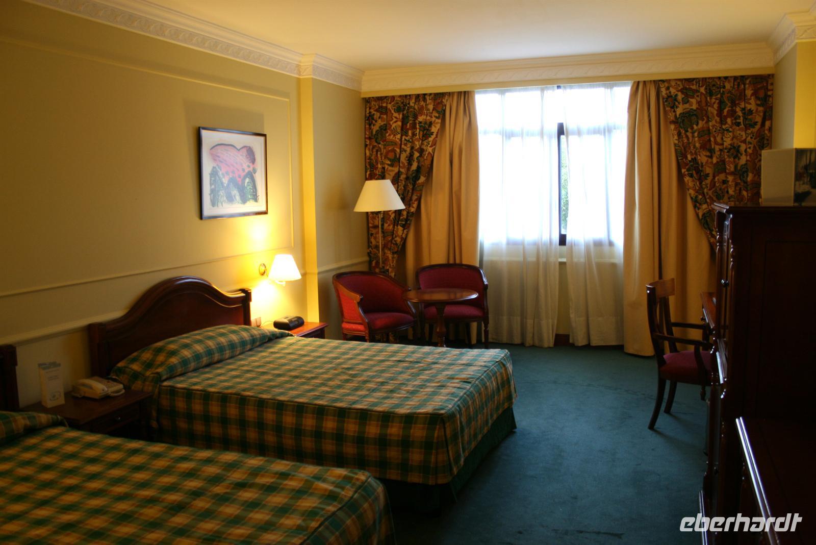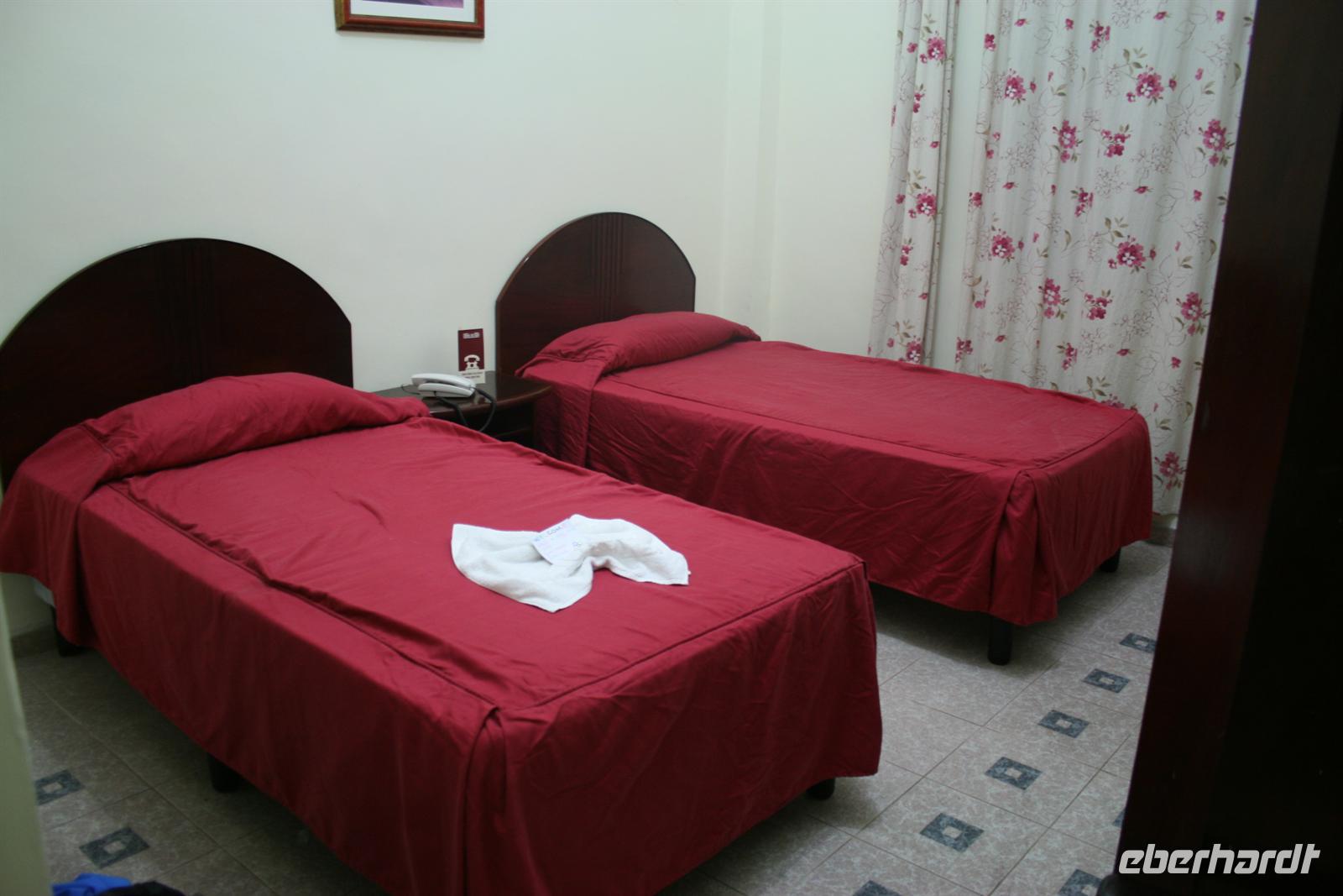 Nach etwa 40 Minuten Busfahrt durch Santiago erreichen wir unser Hotel "Las Americas". Die Zimmer sind einfach ausgestattet mit Dusche/WC, TV, Zimmersafe, Telefon und Klimaanlage. Das Hotel bietet einen Swimmingpool, eine kleine Bar in der Lobby und ein Restaurant.