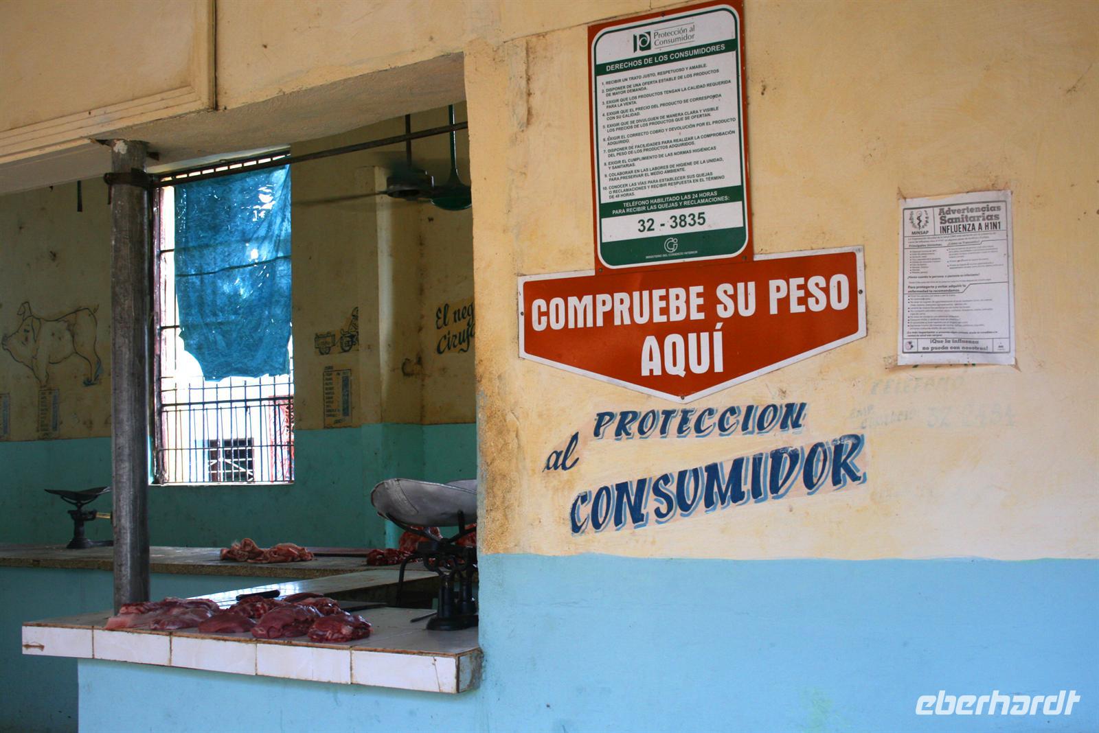 Nach dem Frühstück im Hotel machen wir eine Stadtrundfahrt mit den Bici-Taxis, den typischen Fahrradtaxis der Stadt. Wir halten an mehreren Plätzen und Kirchen Camagueys und Georg erklärt uns alles Wissenswerte dazu. Georg zeigt uns auch einen Laden, in dem die Einheimischen mit ihrer Lebensmittelkarte einkaufen gehen. Jeder Einwohner bekommt eine bestimmte Ration Lebensmittel jeden Monat.