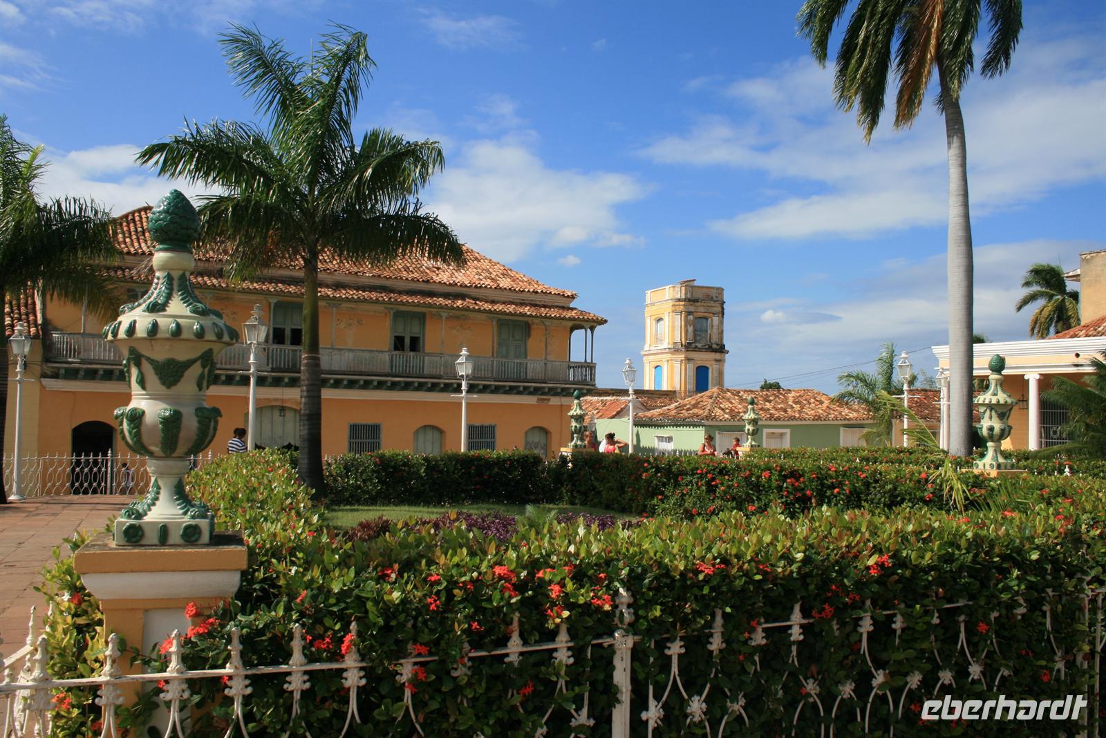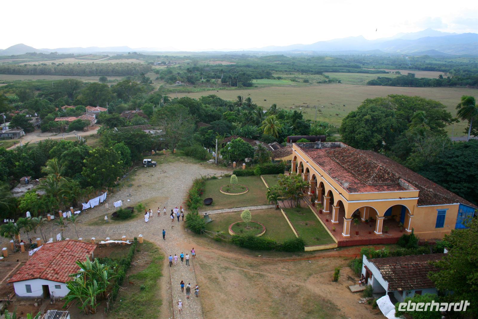 Dann fahren wir weiter bis zur ehemaligen Zuckerrohrmühle Manaca Iznaga. Hier kann man die Räumlichkeiten des Kolonialherrenhauses sehen und die Zuckermühle, die damals rein manuell mit der Kraft von Tieren betrieben wurde. Wer möchte, kann auf den 45 Meter hohen Wachturm hinauf steigen und die Aussicht über das große Tal der Zuckermühlen genießen. Händler verkaufen verschiedene Souvenirs. Gegen 17.00 Uhr erreichen wir Trinidad und die Halbinsel Playa Ancon, wo unser Hotel für die nächsten drei Tage liegt.