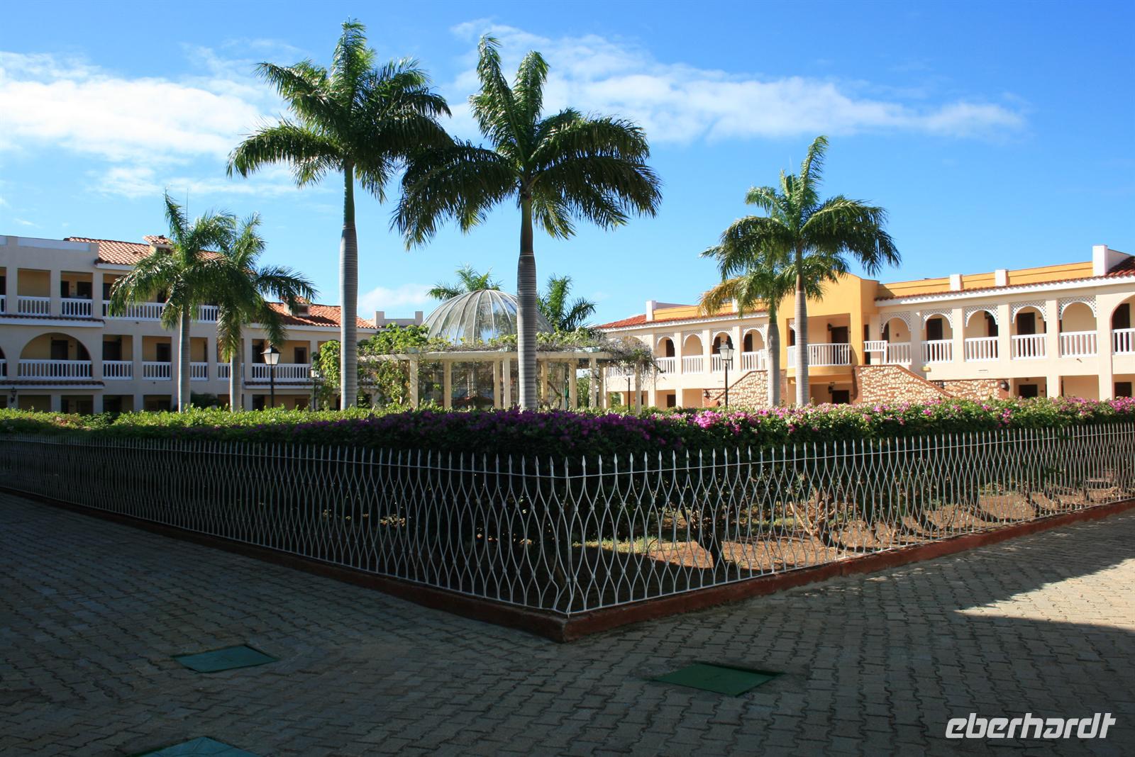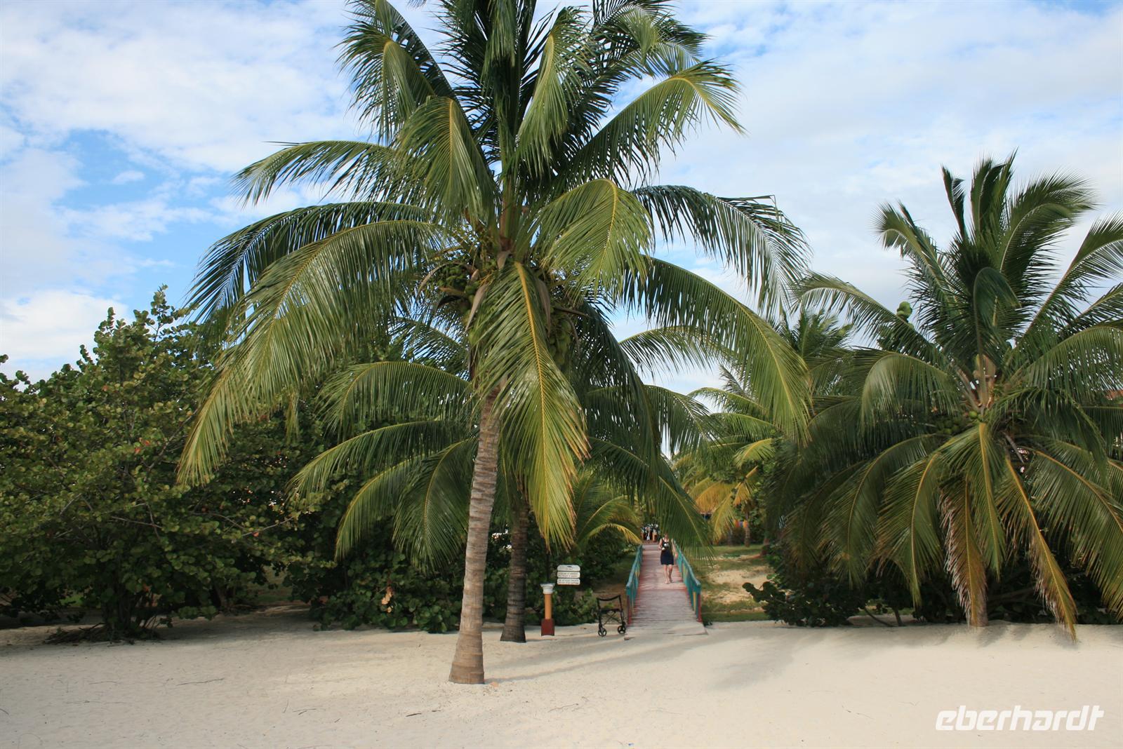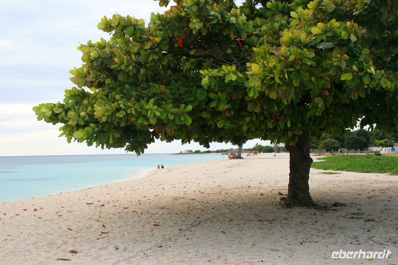 Am Nachmittag ist Freizeit. Einige von uns gehen im Meer baden, es ist etwas windig und bewölkt, aber dennoch 28°C. Unbedingt Sonnencreme verwenden, man bekommt leicht eine Sonnenallergie oder einen Sonnenbrand! Wer möchte, kann zum Mittagessen ins Hauptrestaurant gehen. Kaffee und andere Getränke kann man sich jederzeit an einer der Bars holen. Wir verabreden uns für 19.00 Uhr zum Abendessen und zum gemütlichen Ausklang des Tages und genießen den Nachmittag am Strand und im etwa 25°C warmen Wasser der Karibik. Strandliegen stehen am langen Sandstrand der Playa Ancon Halbinsel bereit. Der Strand ist angenehm ruhig und ohne Menschenmassen. Hier lässt es sich aushalten!