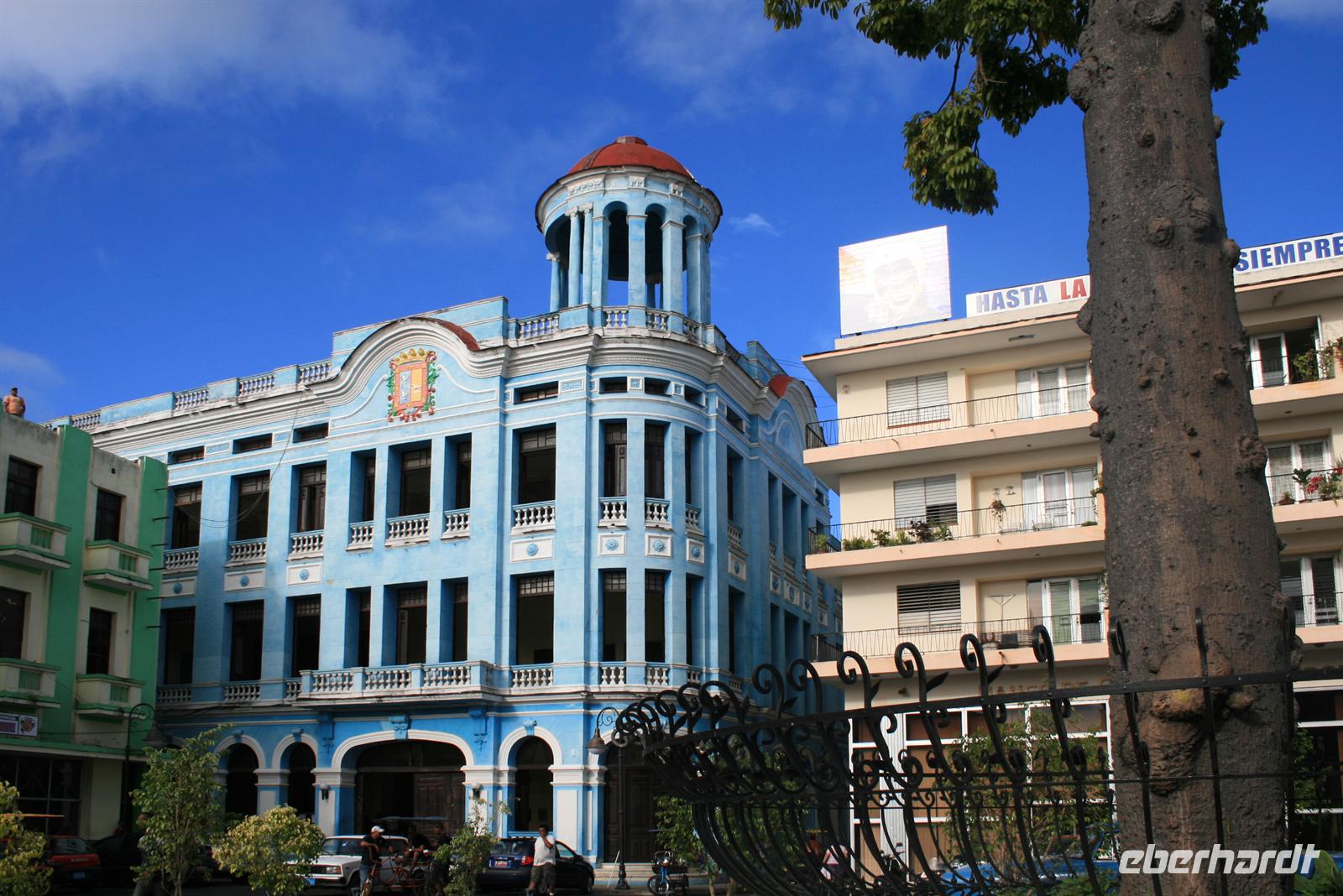 Nach dem Essen unternehmen wir einen Stadtrundgang in Santiago. Georg zeigt uns die schönsten Plätze und Sehenswürdigkeiten: den Parque Cespedes mit der großen Kathedrale, dem Parlamentsgebäude, von dessen Balkon Fidel Castro seine langen reden hielt, das älteste Haus Santiagos, in dem einst der Eroberer und Statthalter Velazques residierte, das Casa de la Trova, das Museum der Familie Bacardi und die vielen reich verzierten Kolonialgebäude.