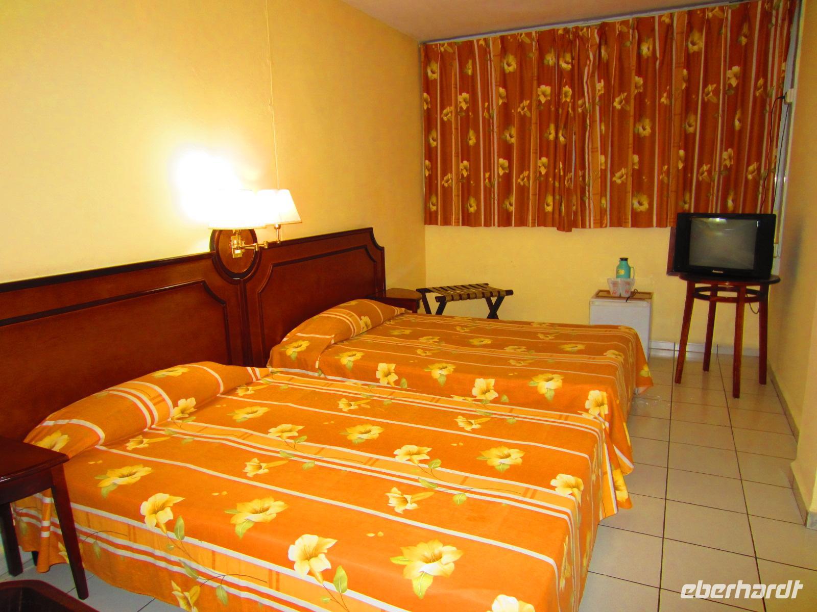 Für 14 reiselustige Eberhardt-Gäste und Reisebegleitung Madlen hieß es heute adiós Alemania y holá Cuba. Mit der Air France flogen wir ab Leipzig mit einer kleinen Maschine nach Paris. Schon nach einem kurzen Umstieg, konnten wir es uns im großen Langstreckenflugzeug bequem machen. Mit Bordfernsehn, Bücher lesen und angeregten Gesprächen vergingen die 10h Flugzeit wie im Nu. Während des gesamten Fluges über den Atlantik hatten wir fabelhaftes Wetter, sodass wir uns schon bestens auf die Karibik einstimmen konnten. Am Abend landeten wir in Havanna, wo uns auch schon unser Reiseleiter Emilio herzlich begrüßte. Müde von der langen Anreise, aber glücklich nun endlich in Kuba zu sein, fielen wir schnell in unsere Betten im Hotel Ambos Mundos direkt im Herzen Althavannas.