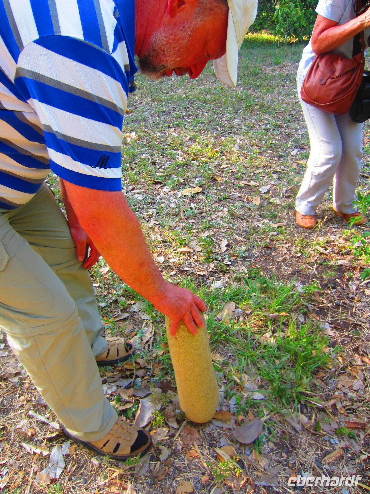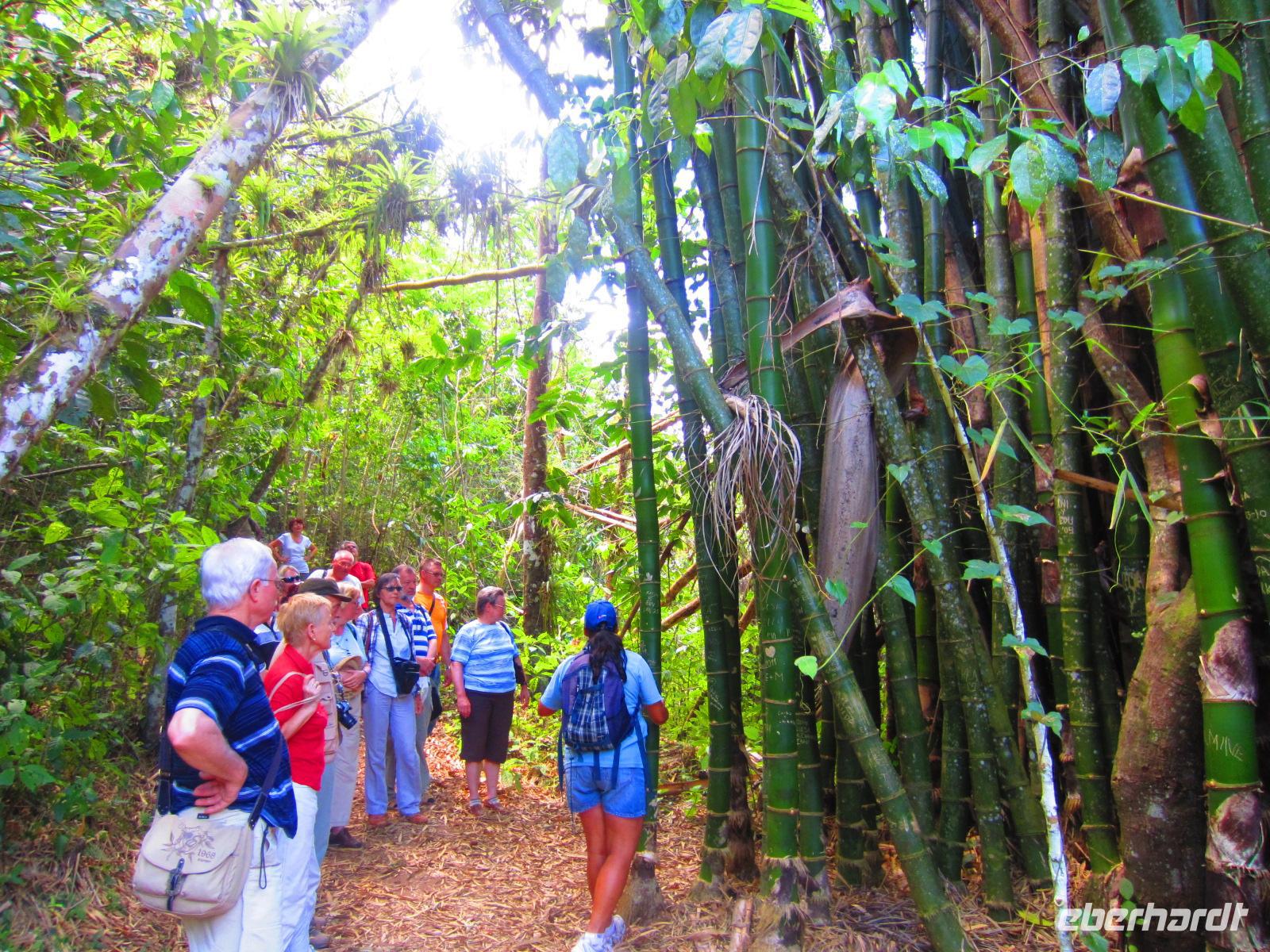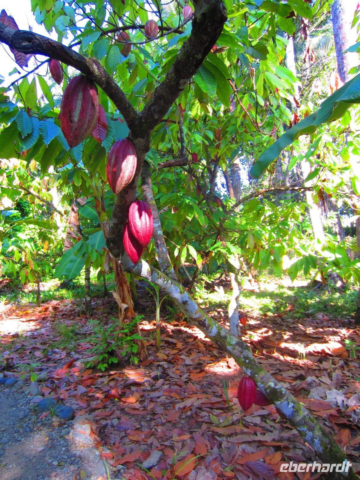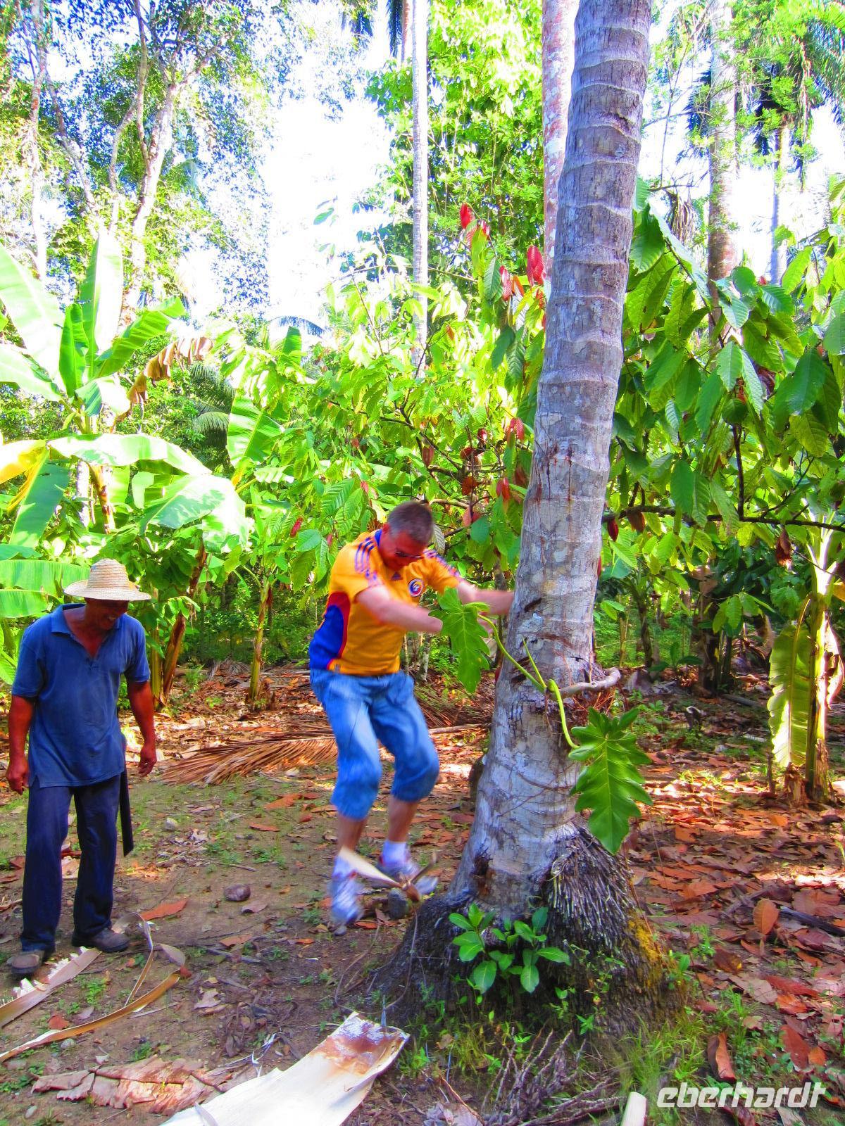 Für den heutigen Tag hatten sich Reisebegleitung Madlen und Reiseleiter Emilio noch etwas Besonderes einfallen lassen. Wir überraschten unsere Gäste mit einem Besuch auf einer Kakaoplantage. Umgeben von herrlichen Palmen und vielfältigen tropischen Pflanzenarten lernten wir alles über den Kakao, vom Anbau, über die Ernte, bis hin zur Verarbeitung. Natürlich haben wir auch gekostet: zunächst die Kakaofrucht, dann die getrocknete Bohne und zum Abschluss einen frischen, heißen Kakao mit Kokosmilch - herrlich.