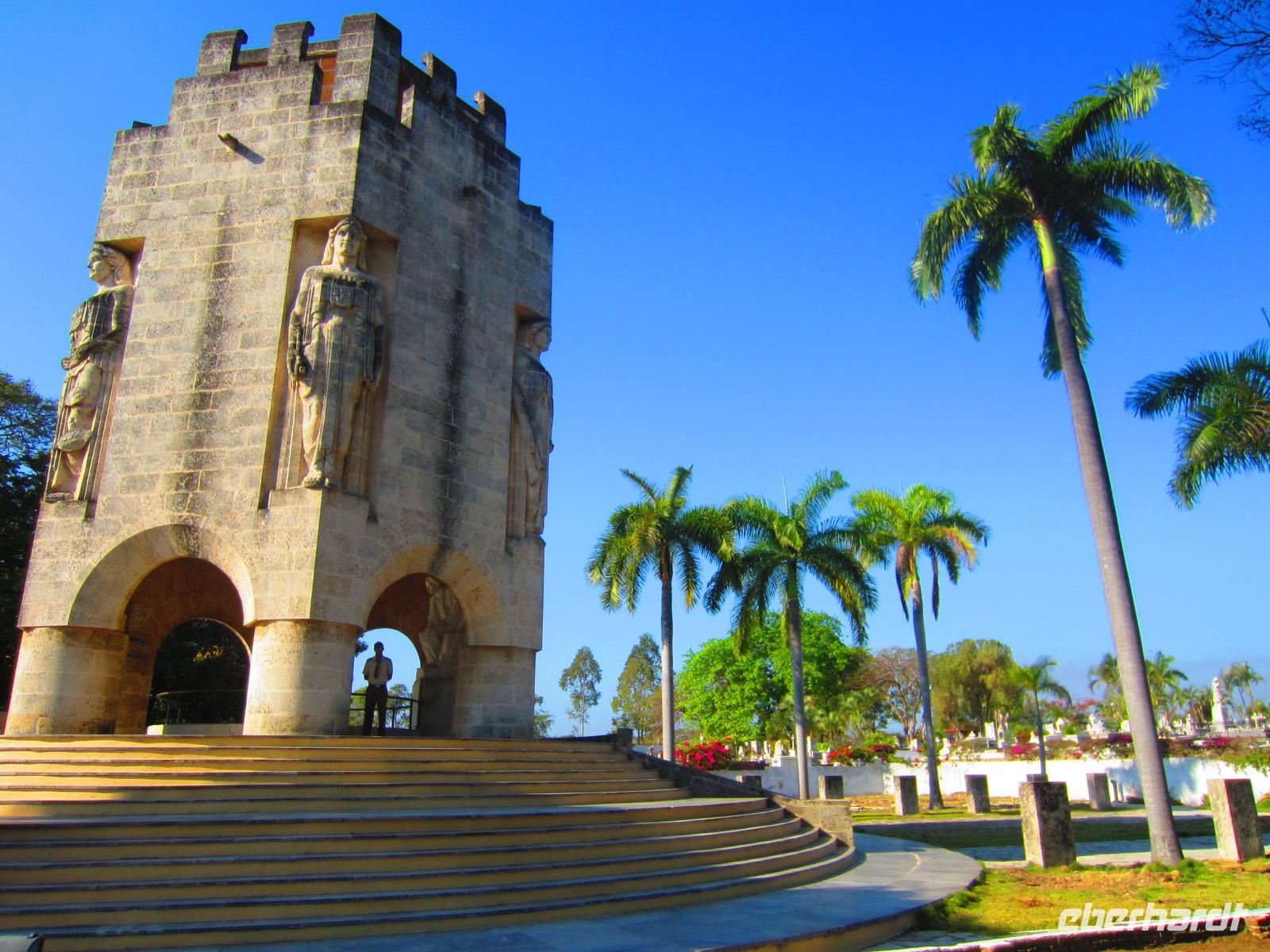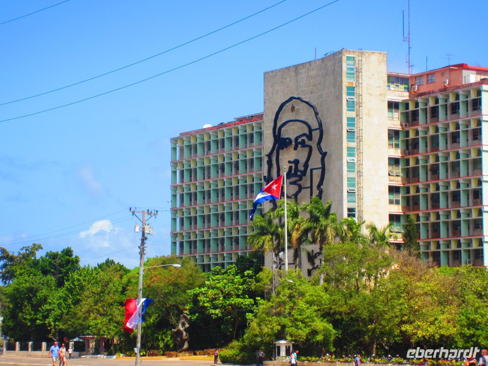 Der „Cementerio de Colón”, Kolumbusfriedhof, war am heutigen Morgen unser nächstes Ziel. Der Friedhof, einer der größten und seltsamsten Nekropolen der Welt, faszinierte uns sofort. Besonders beeindruckend stellt sich das höchste Gebäude der Anlage, das Mausoleum der Feuerwehrmänner, welche im Jahr 1890 bei einem Großbrand in der Stadt heldenhaft zu Tode kamen, dar. Außerdem faszinierte uns die Geschichte der “Amelin de Milagrosa“, deren Grab heute eine Wallfahrtsstätte für Kubaner ist, da sie als Beschützerin kranker Kinder und werdender Mütter gilt. Unsere Rundfahrt führte uns weiter zum berühmten Platz der Revolution. Wir sahen das über 100m (!) hohe Denkmal für José Martí , sowie das Innenministerium, das meistfotografierte Gebäude Kubas. An dessen Außenwand prangt das Bildnis von Che Guervara.