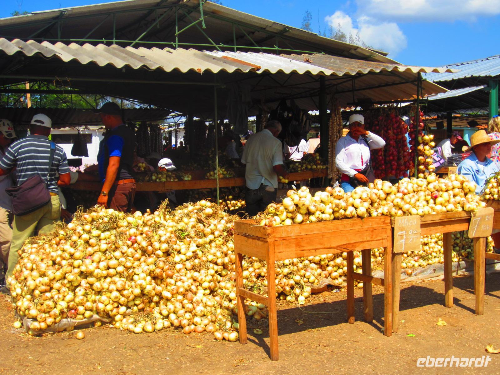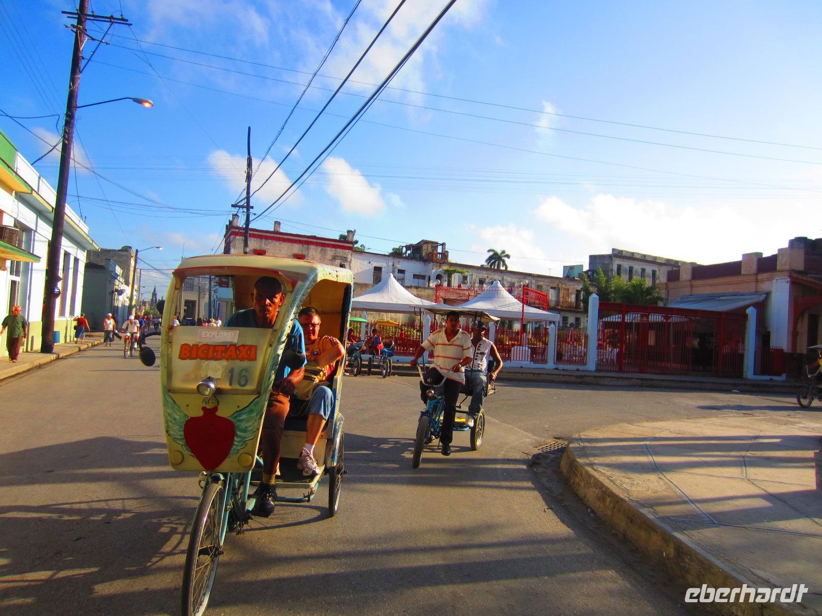 Am Vormittag erlebten wir eine Stadtrundfahrt der besonderen Art. Unsere Fahrradtaxis standen schon bereit, um uns flink durch die engen Gassen der Stadt zu kutschieren. Bei diesem lustigen Unterfangen konnten wir die Stadt hautnah erleben und bei unseren vielen Stopps deren Höhepunkte bewundern. Wir besuchten ein altes Herrenhaus aus der Kolonialzeit, wo uns unsere liebe Ilse ein kleines Klavierkonzert im Innenhof präsentierte ;-). Außederdem besuchten wird das Teatro Principal aus dem Jahre 1850, den Parque Agramonte mit der Kathedrale und den Plazuela de Carmen, welcher Skulpturen von Menschen aus dem Viertel zeigt. Zum Abschluss transferierten uns unsere starken Fahrradfahrer zum Bauernmarkt der Stadt, wo wir einen Einblick in den Alltag der Menschen erhielten. Hier gab es Ananas, Zwiebeln, verschiedenes Gemüse und vor allem viel Knoblauch, welchen die Kubaner mit Vorliebe verwenden.