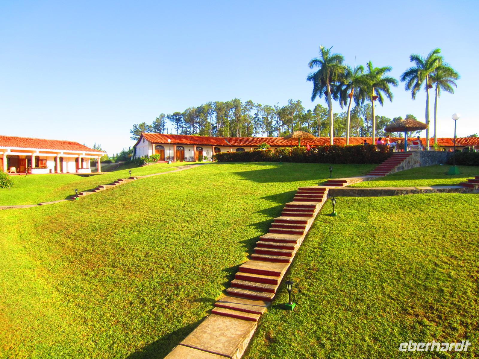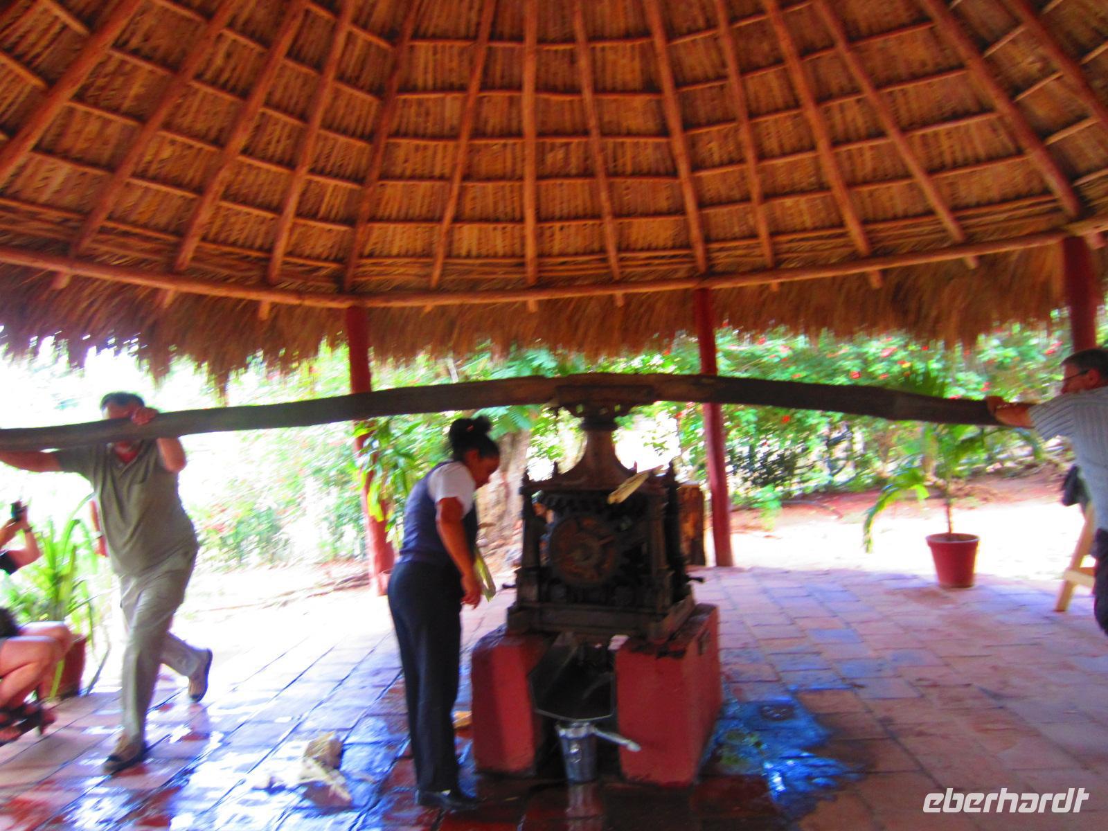 Im Tal der Zuckerrohmühlen machten wir Halt an Manaca Iznaga, einer ehemals sehr reichen Zuckerrohplantage. Hier trafen wir nun auch endlich auf unseren langersehnten 1. Ochsenkarren;-). Zwei starke (!) Männer aus unserer Gruppe probierten sich an einer alten Zuckerrohpresse. Mit Erfolg. Anschließend gab es für alle frisch gepressten Zuckerrohsaft mit Rum. Einige von uns wagten den mutigen Aufstieg auf den 45m hohen Wachturm. Von Oben hatte man einen herrlichen Blick über das Tal. Am späten Nachmittag erreichten wir unser herrlich am Meer gelegenes All-Inclusive Hotel „Brisas Trinidad del Mar“. Am Abend genossen wir das reichliche Buffet, leckere Cocktails und das Showprogramm des Hotels.