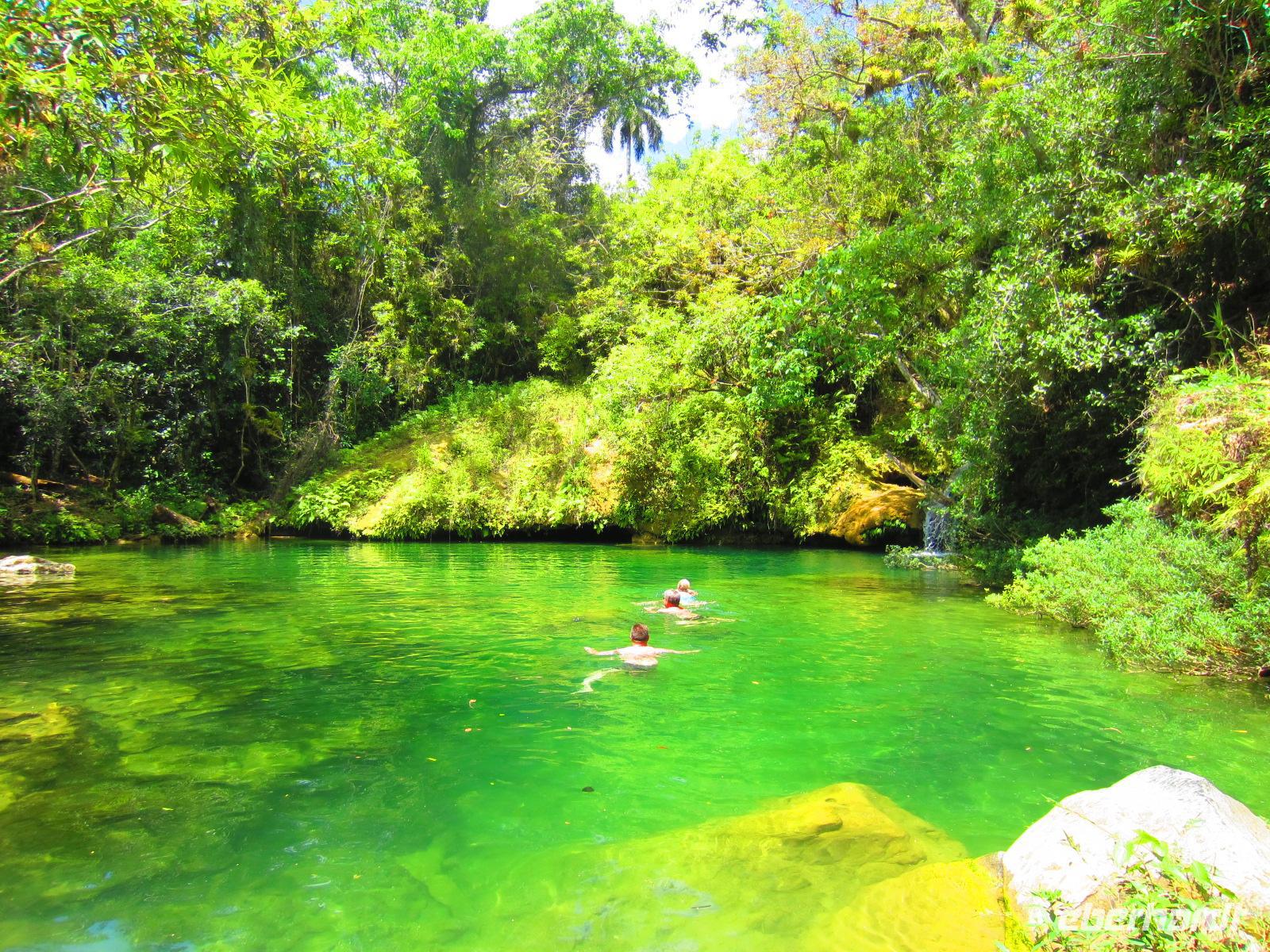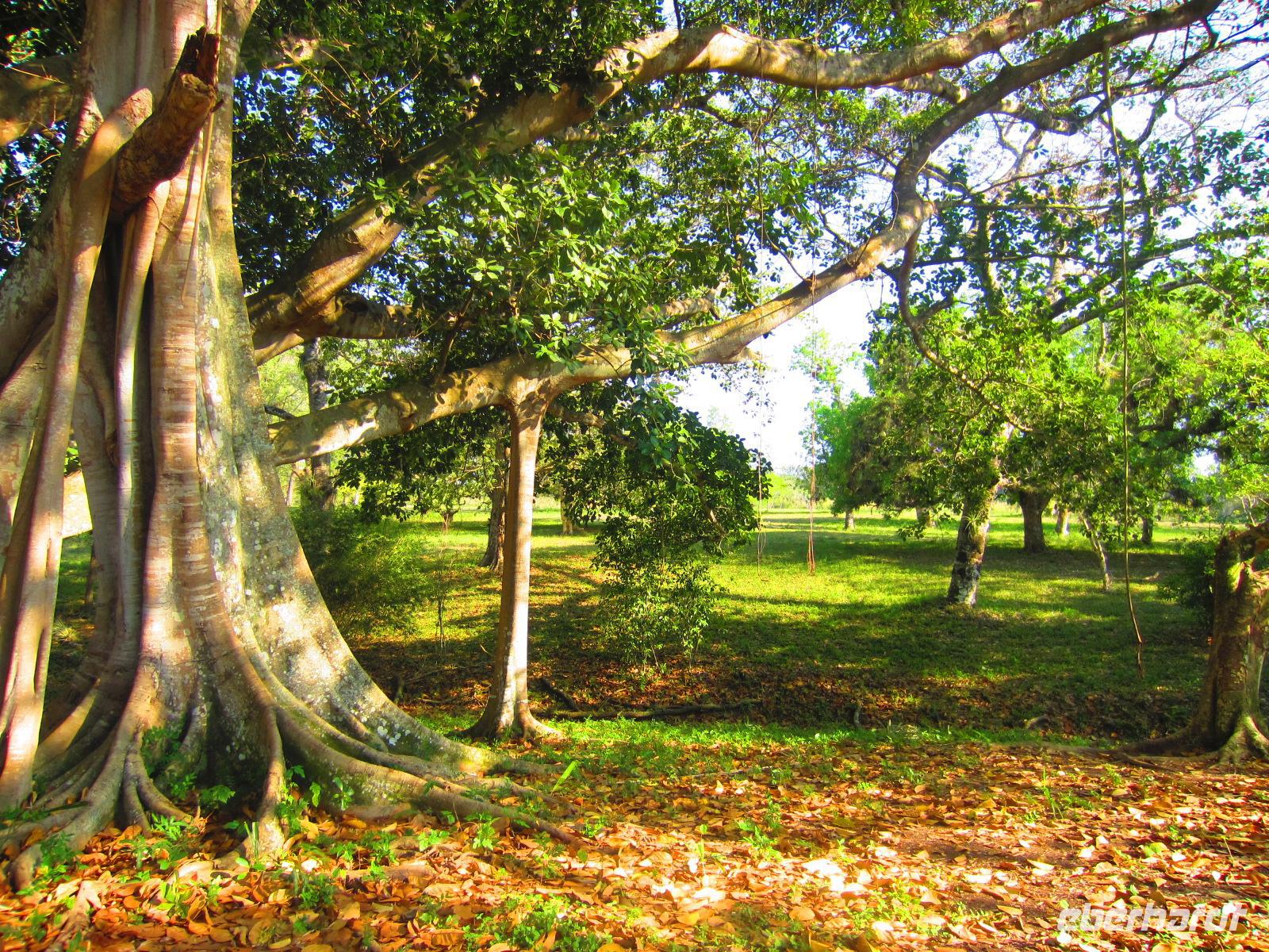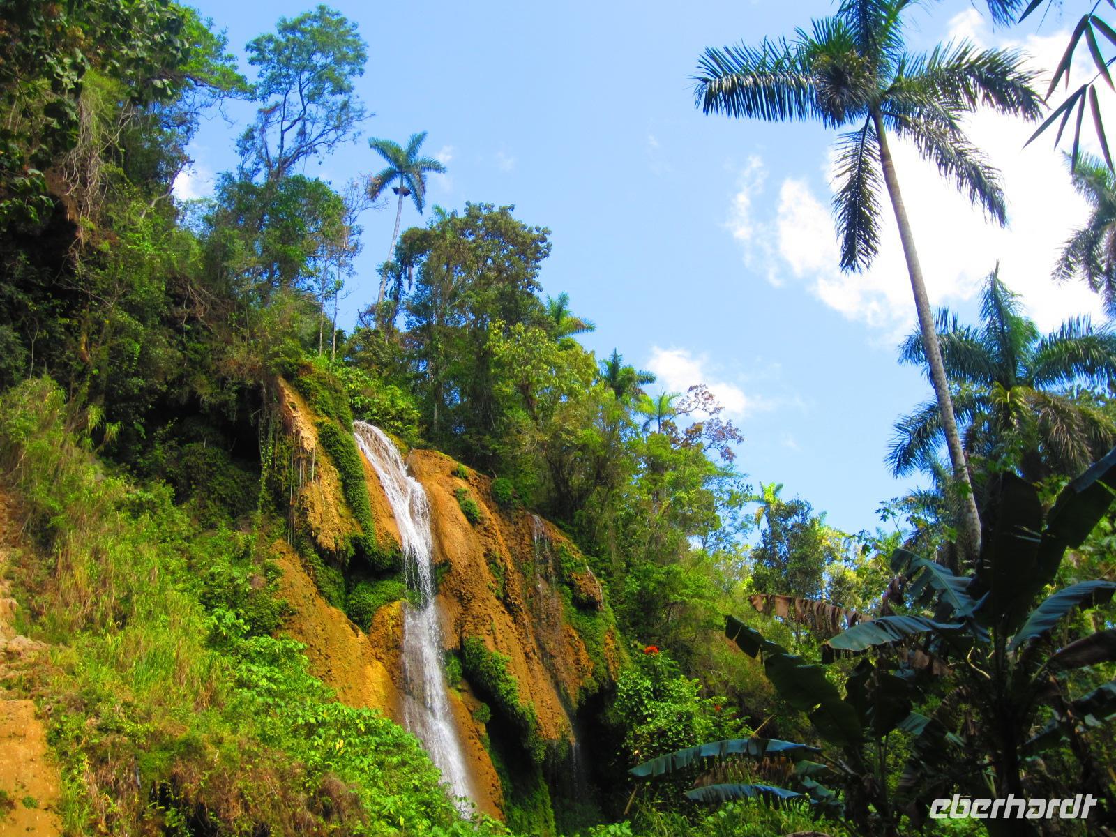 Nach einem ausgiebigen Frühstück verließen wir unser Strandhotel und machten uns auf zum Abenteuer Wandern. Im Luftkurort Topes de Collantes erwartete uns bereits unsere liebe Wanderführerin, die zu jeder Pflanze eine lustige Geschichte kannte, und unsere russische Luxuslimousine, ein alter LKW, mit 6-Sterne Fahrer Yuri. Über Stock und Stein, mitten hinein in den dichten Wald ging die rasante Fahrt auf der bestuhlten Ladefläche des LKWs. Am Rande eines kleinen Dorfes begannen wir unsere 3-stündige Wanderung. Wir sahen Kaffeepflanzen, Mameybäume, riesige Bambusstauden, einen kleinen Wasserfall und den laut singenden Nationalvogel Tocororo. An einem natürlichen See wagten sich sogar einige von uns in das kühle Nass, um sich zu erfrischen. Unsere herrliche Wanderung endete an einem Restaurant in dem wir uns stärken konnten, bevor es mit dem LKW zurück zum Bus ging. Nach diesem ersten Naturspektakel des Tages, folgte am Nachmittag auch schon das Nächste. Im Botanischen Garten „Jardín Botánico Soledad“ bekamen wir viele exotische Pflanzen aus aller Welt gezeigt. Besonders faszinierten uns der Leberwurstbaum, die riesigen Bambuspflanzen, der unglaubliche Gummibaum und der spanische Bartbaum. Den Abend, dieses eindrucksvollen Tages, genossen wir bei einem leckeren Essen in unserem schönen Hotel „ La Union“ in Cienfuegos.
