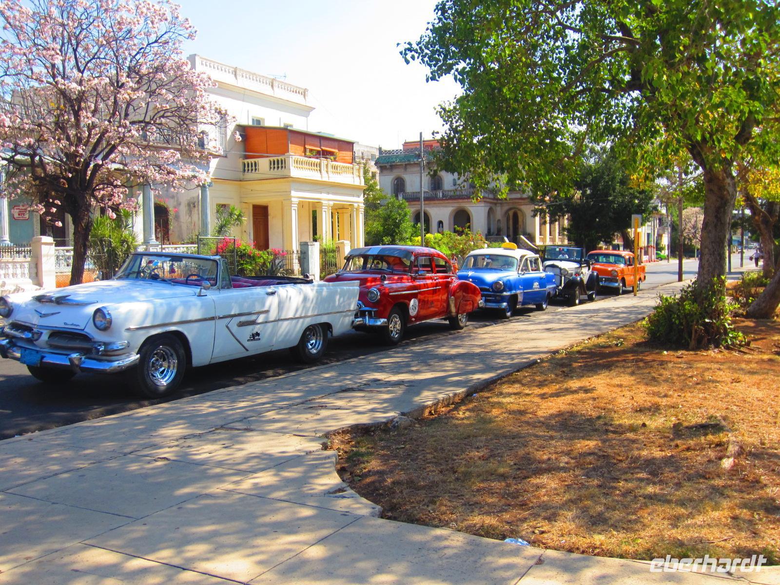 Mitten in der Altstadt, am „Plaza de la Cathedral“, schmausten wir im Restaurant „El Pátio“ mit herrlichem Ausblick auf die Altstadt. Nun erwartete uns ein Höhepunkt unserer Reise, die Stadtrundfahrt im Oldtimer. Unsere 5 Luxuskarossen aus den 50er Jahren erwarteten uns schon an der Hafenbucht. Am berühmten Malecón entlang ging unsere rasante Fahrt direkt zum „Hotel Nacional“, dem nobelsten Haus der Stadt. Bei einem Spaziergang durch die Anlage genossen wir den einmaligen Blick auf die Uferpromenade. Weiter ging es durch bisher ungesehen Teile der Stadt bis zum schicken Viertel Miramar. Hier scheint das schwierige Leben der Kubaner vergessen. Villen über Villen säumen die galanten Straßen. Ausländische Investoren und Botschaftssitze haben es sich hier wohnlich eingerichtet. Den Abend genossen wir in einer typischen Pianobar in der Altstadt bei Musik und Tanz.