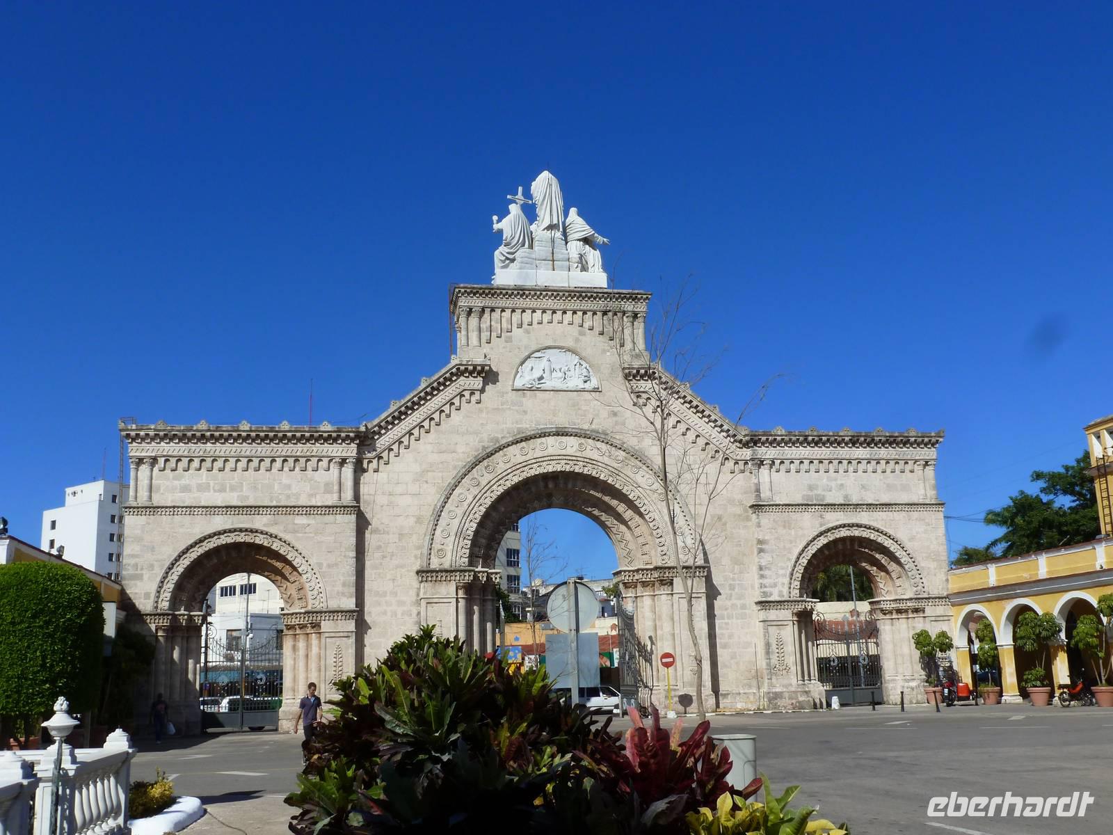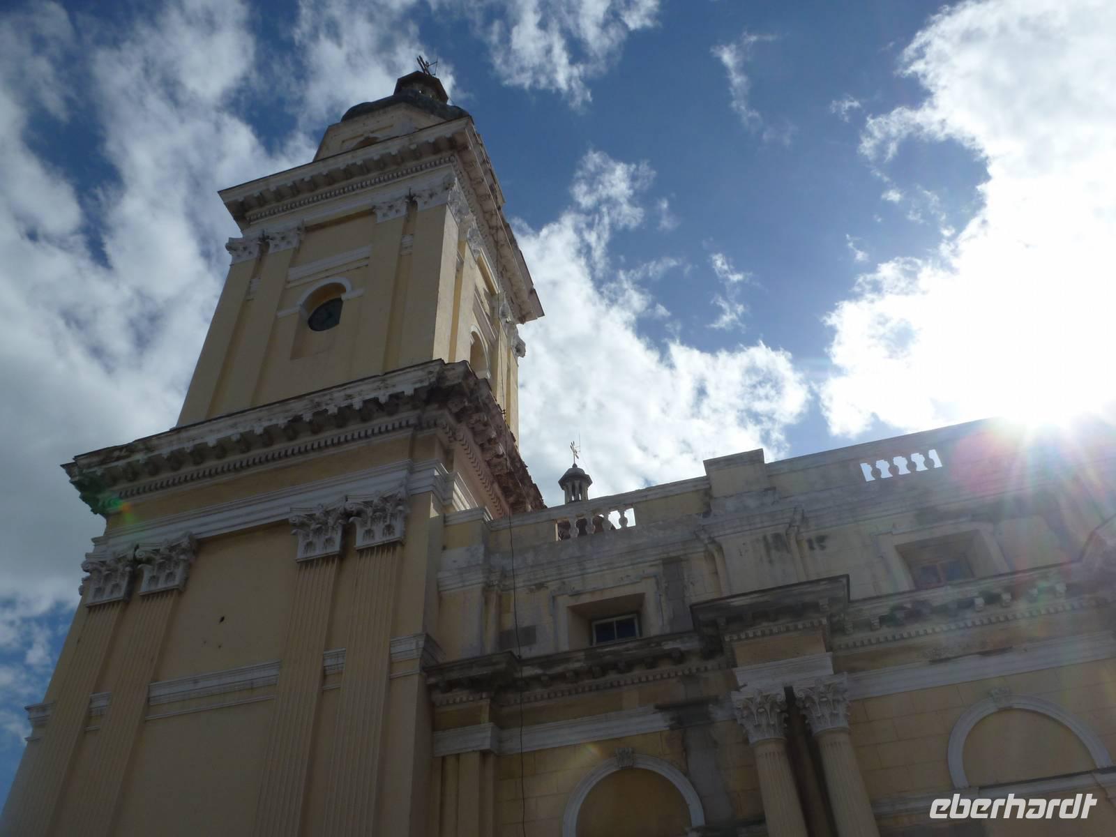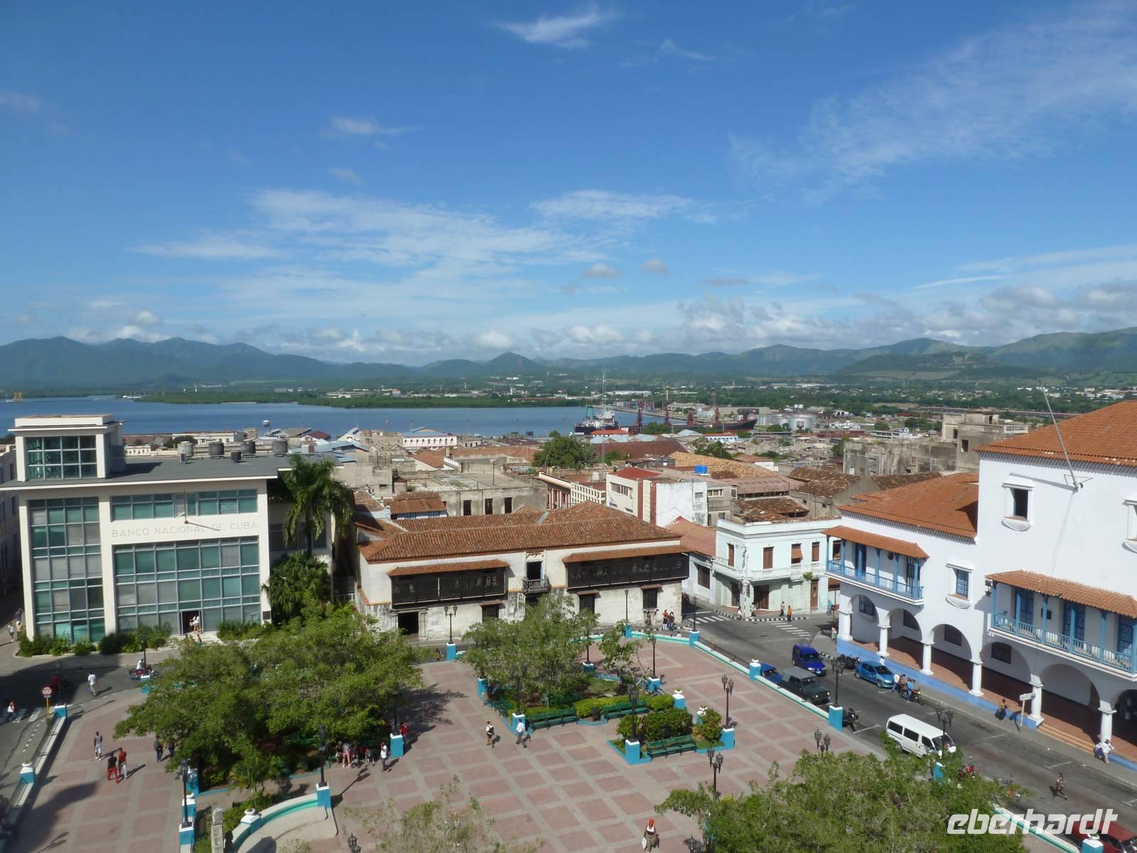 Leider wird es nur eine kurze Nacht, denn bereits um 6:00 Uhr fliegen wir mit einer karibischen Propellermaschine weiter nach Santiago de Cuba. Die zweitgrößte Stadt der Insel - sie zählt etwa eine halbe Million Einwohner - gilt als „Wiege der Revolution". Das spüren wir nicht nur bei der Besichtigung des Plaza de la Revolución im Norden der Stadt. Es sind vor allem die Menschen rund um den Parque Céspedes, die uns mit ihrer Hartnäckigkeit und Bissigkeit in Sachen Verkaufen und Betteln verblüffen. Dennoch genießen wir die ersten Eindrücke bei einem kleinen Rundgang durch die Altstadt. Insbesondere die Kathedrale, unter der angeblich der spanische Eroberer Diego Velázquez begraben sein soll, hat es uns angetan.