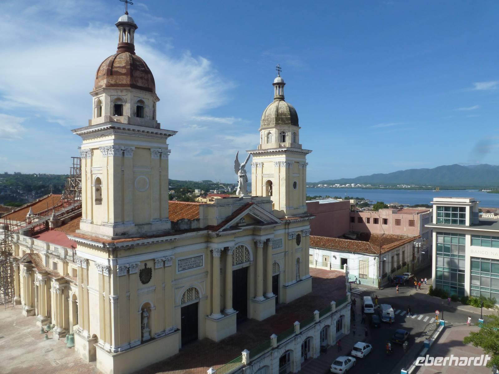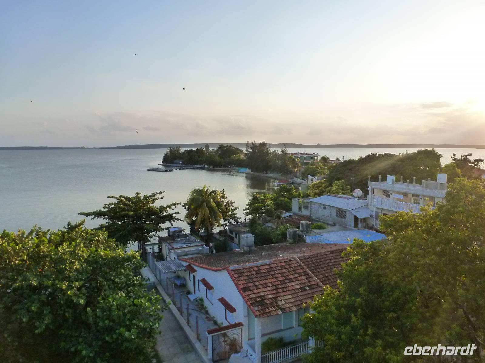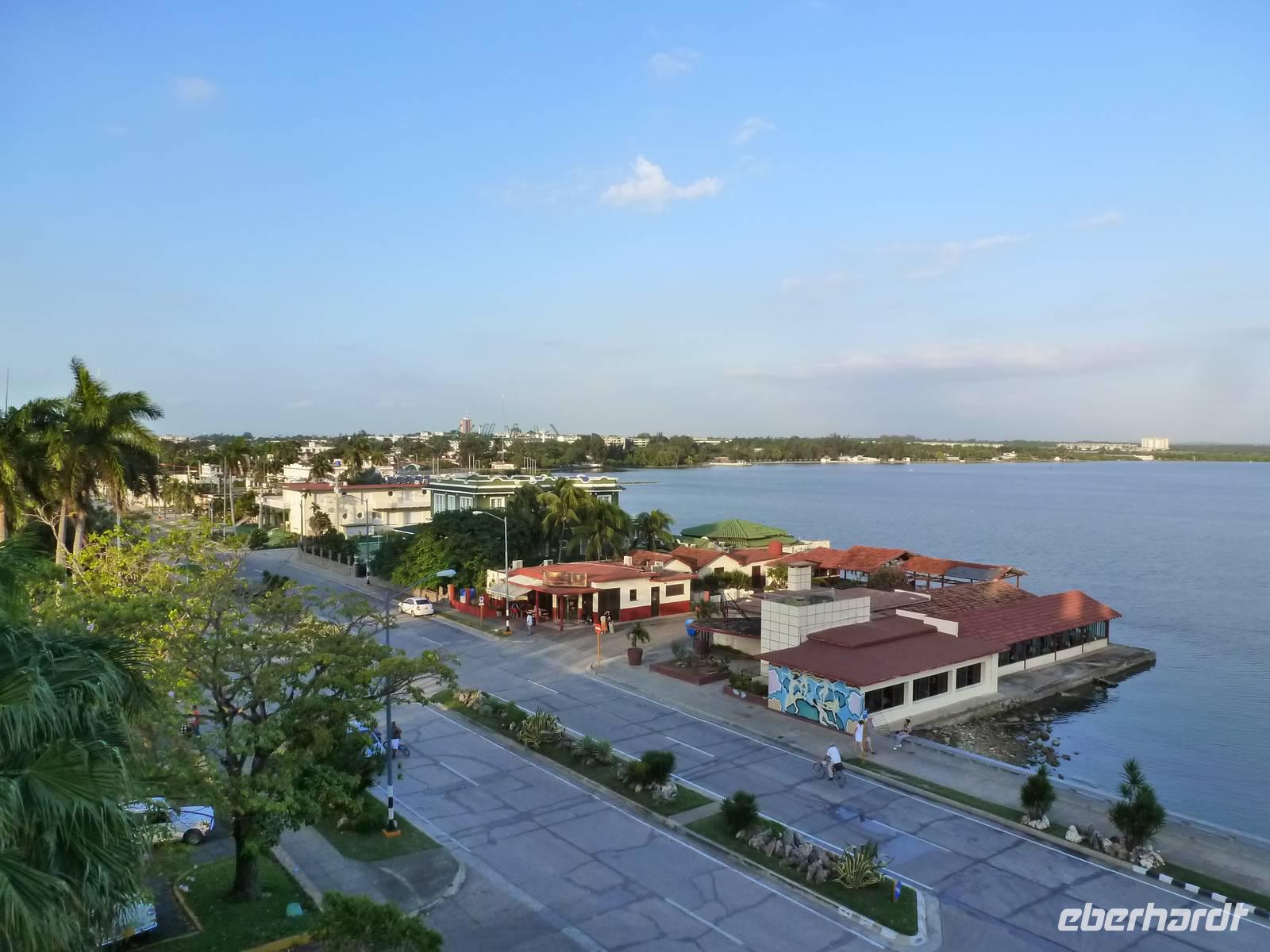 Nach einem späten Mittagessen werden wir wieder sicher in die Zivilisation entlassen und fahren weiter nach Cienfuegos. Die kleinste Provinz Kubas hat viel zu bieten (Zucker, Kaffee, Reis, Berge), vor allem aber eine wunderschöne Hauptstadt. Die „Perle des Südens" sieht von oben besonders schön aus und so verarbeiten wir den ereignisreichen Tag bei einem leckeren Getränke auf der Dachterrasse eines Hotels.