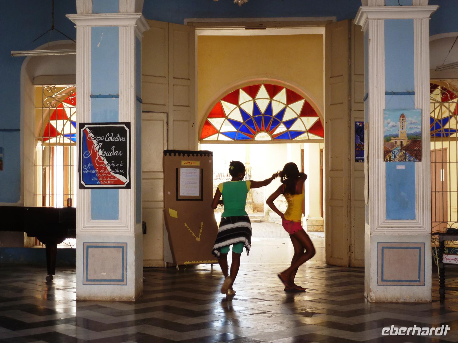 Leider ist das Wetter nicht besser geworden und wir dürfen aus Sicherheitsgründen keine Rundfahrt auf dem Río Toa unternehmen. Doch wir lassen uns die gute Laune nicht verderben und verbringen einen vergnügten Vormittag bei einem spontanen Salsa-Tanzkurs.