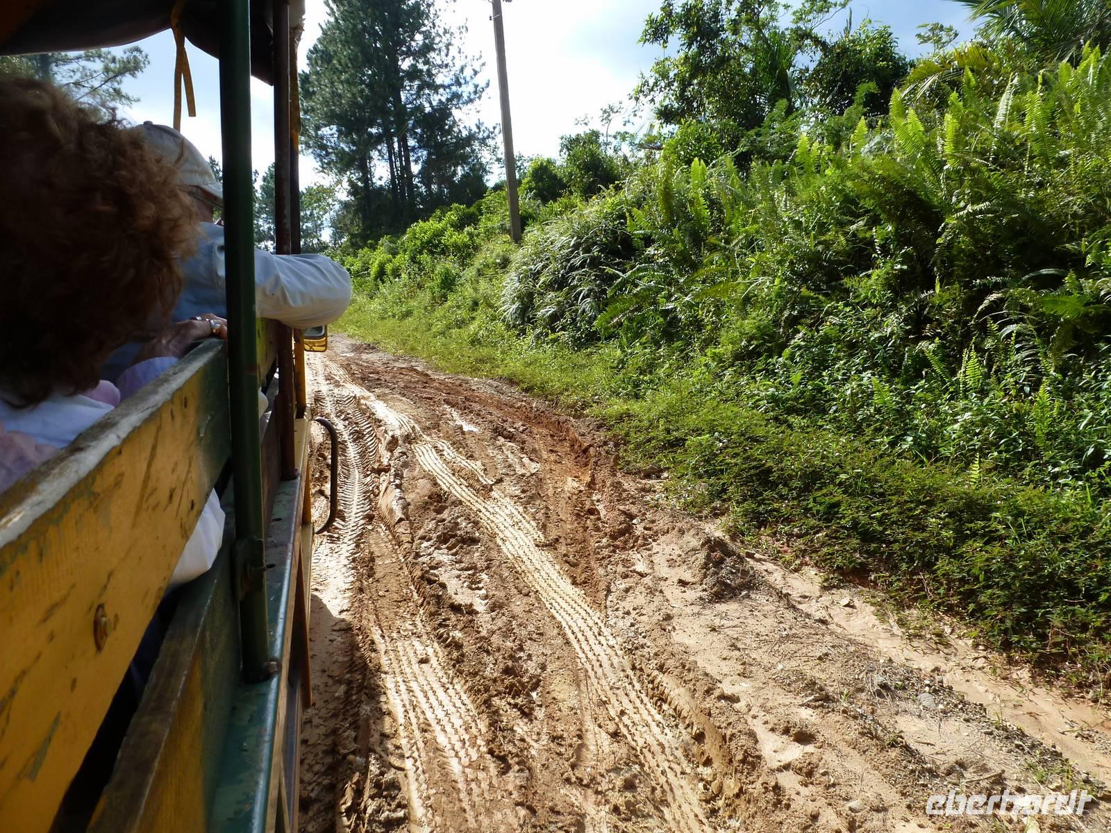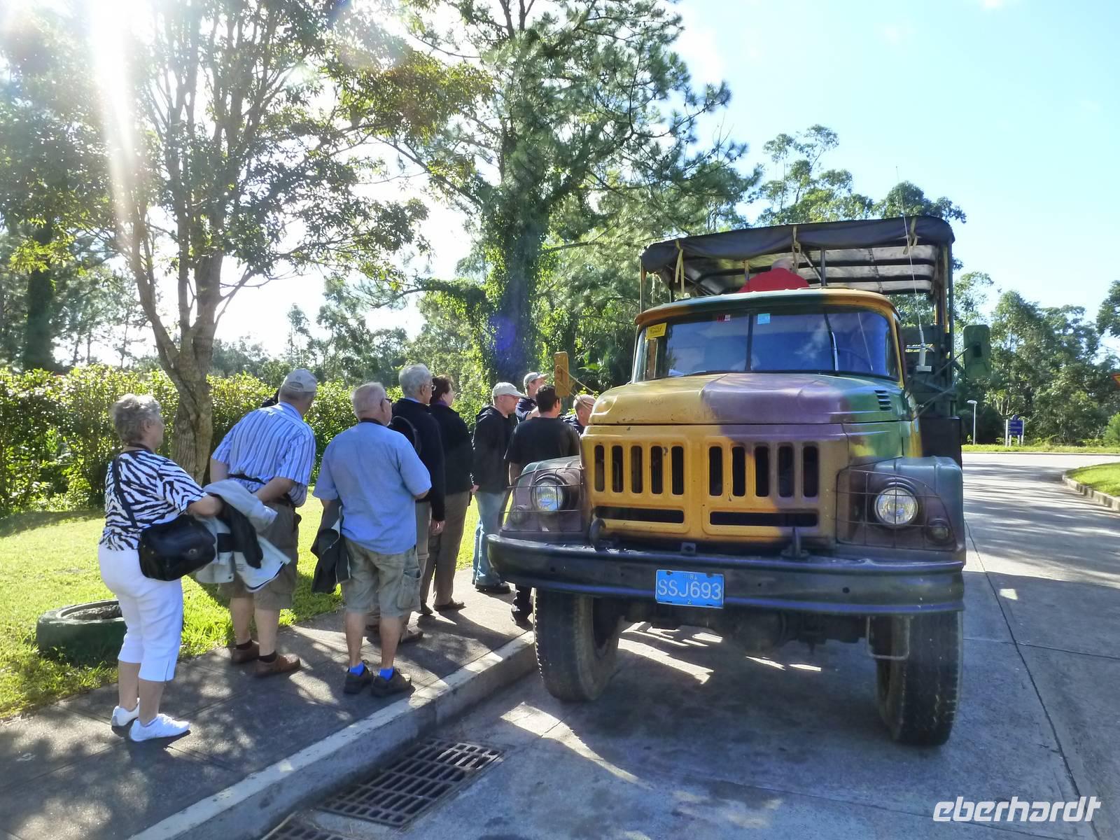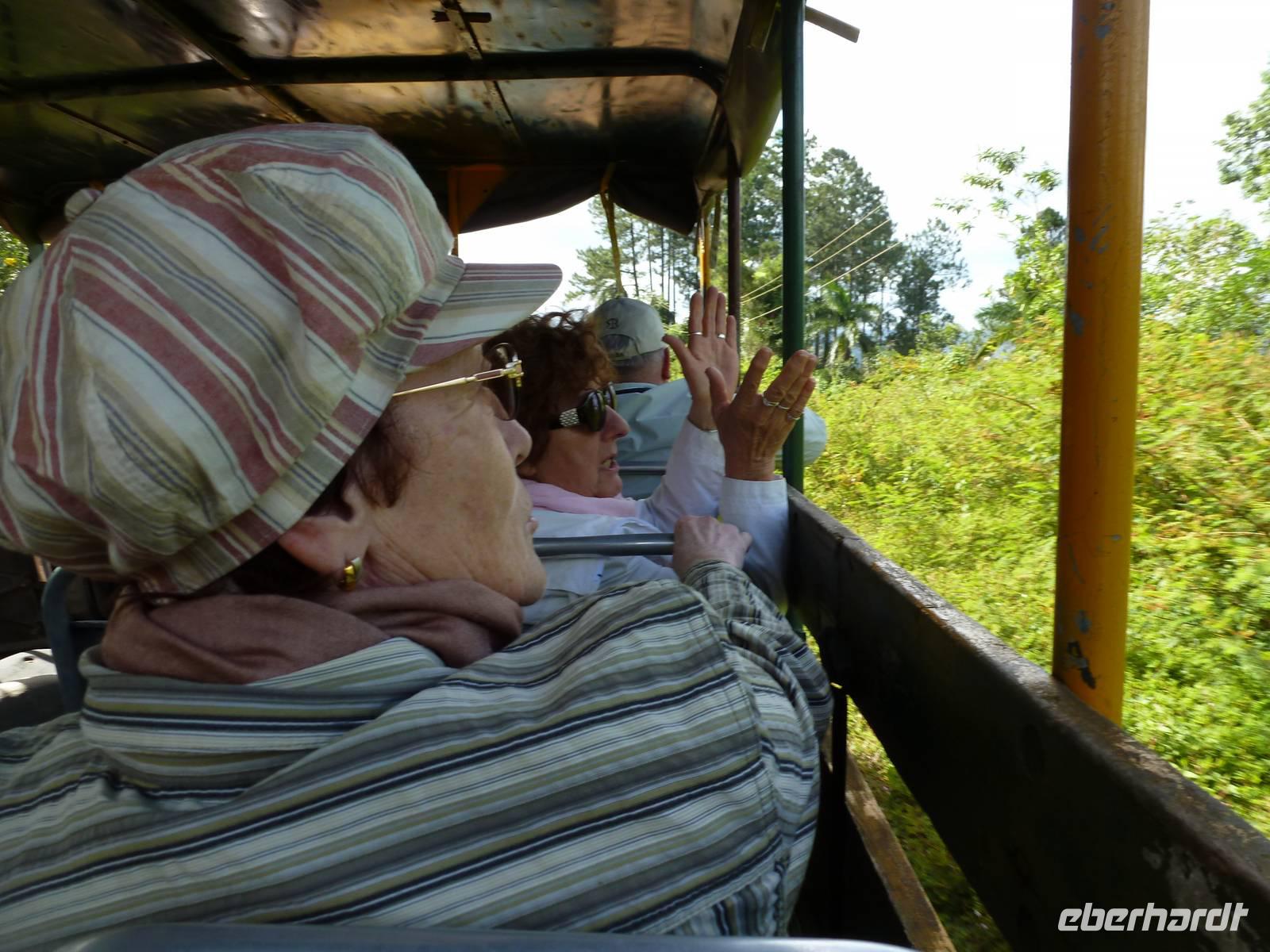 Heute geht es abenteuerlich zu! Wir brettern in (zunächst wenig vertrauenserweckenden) umfunktionierten LKWs der Armee durch den Nationalpark Topes de Collantes. Dort wachsen hunderte faszinierender Pflanzen, die während der Fahrt natürlich fotografiert werden müssen. Doch aufgepasst, die Piste ist hügelig und es ruckelt an mancher Stelle gefährlich. Doch unser Fahrer kennt sein Fahrzeug genau und bringt uns sicher zum Ziel.