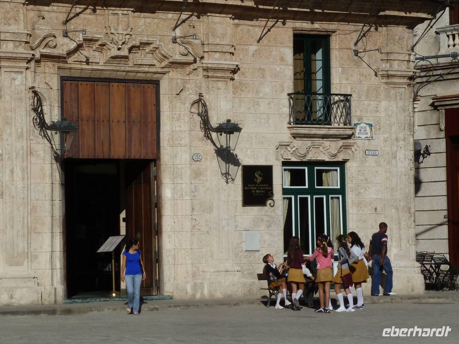 Nach langen neuneinhalb Stunden Flugzeit erreichen wir die kubanische Hauptstadt am frühen Abend. Nun ist wieder Geduld gefragt, denn wir müssen jeder einzeln die Pass- und Sicherheitskontrolle passieren. Zum Glück machen wir einen vertrauenserweckenden Eindruck und dürfen gegen 19:00 Uhr endlich unsere Reiseleiterin Mariela begrüßen. Nach einer kurzen Fahrt ins Hotel und einem fruchtigen Willkommensgetränk (natürlich mit Rum) fallen wir förmlich in unsere Betten.