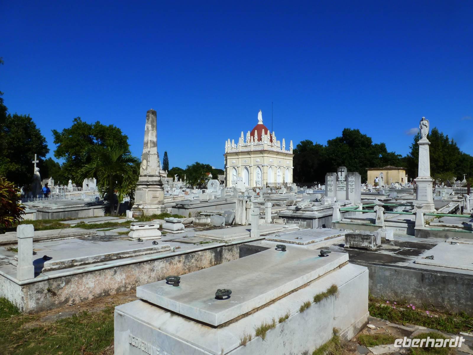 Zum ersten Mal auf unserer Reise besichtigen wir einen kubanischen Friedhof und erfahren mehr über die Bestattungskultur der Kubaner. Ausgesucht haben wir uns den Cementerio de Cristóbal Colón, den größten Friedhof Amerikas. Das Bild ist geprägt durch Tausende Grabplatten, Familiengruften und Mausoleen. Gänsehaut verursacht vor allen Dingen bei den Damen die Geschichte der Amelia Goyri de Adot (La Milagrosa), die gemeinsam mit ihrem totgeborenen Baby begraben wurde und es wie durch ein Wunder in den Armen hielt, obwohl es ihr bei der Beerdigung zu den Füßen gelegt wurde.