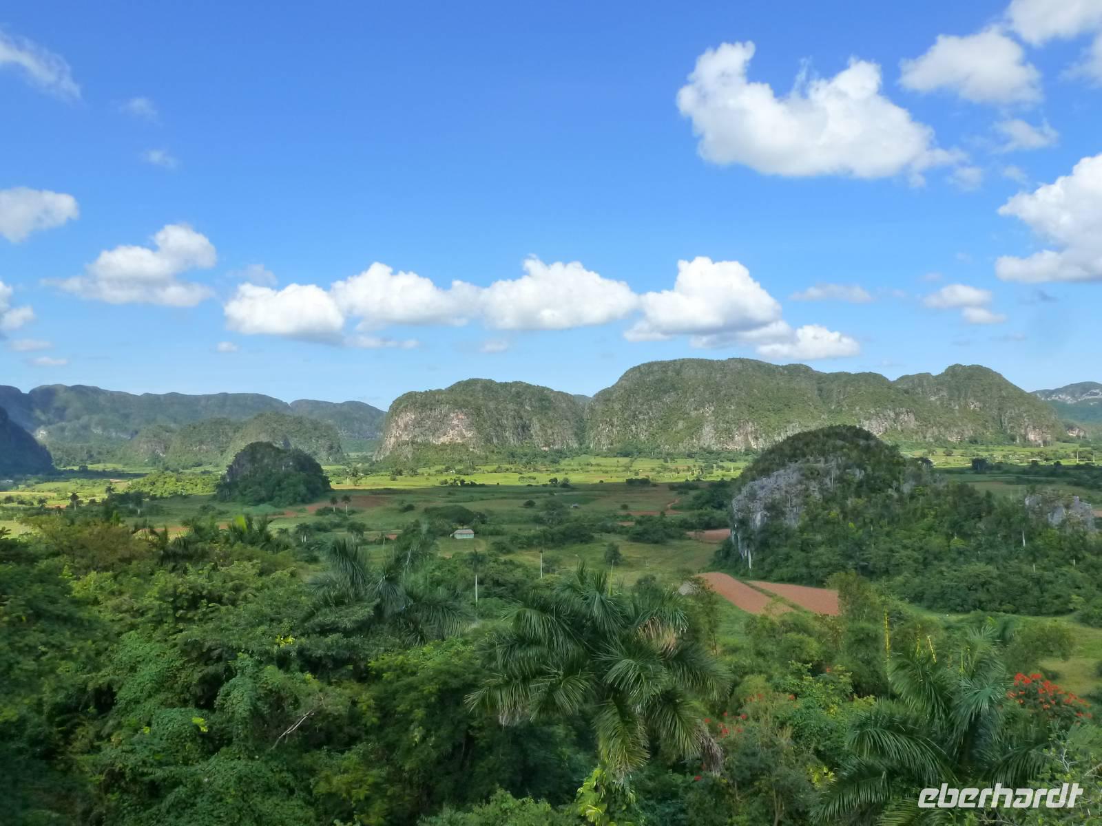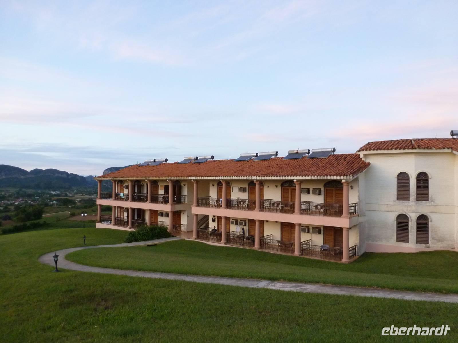 Rote Erde und traumhafte Karstformationen erwarten uns im Viñales-Tal. Die Anmut der Landschaft fasziniert uns und wir begeben uns auf eine leichte Wanderung bis in ein Bauerndorf, wo wir freundlich begrüßt und auf einen Kaffee eingeladen werden. Auch unser Hotel hat eine unvergleichliche Lage zu bieten und wir genießen den Sonnenuntergang auf unseren Balkonen.