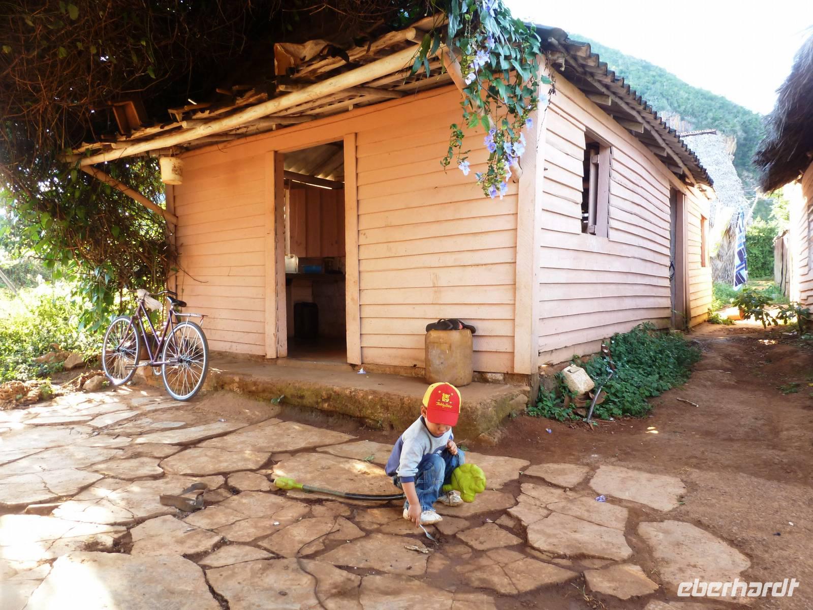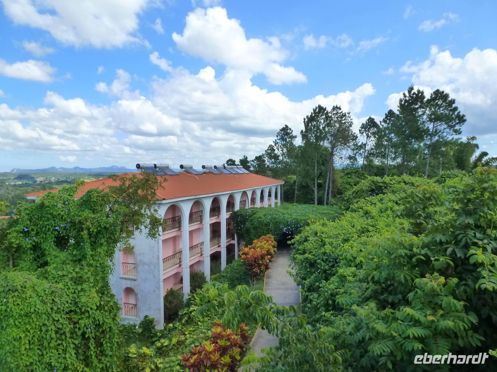 Als nächstes besuchen wir das Naturschutzgebiet nördlich von Soroa namens Las Terrazas. Vor über 40 Jahren großzügig wiederaufgeforstet, besticht das Areal durch unzählige terrassenförmige Landschaften. Die Gemeinde, in der etwa 1.000 Menschen eine Heimat gefunden haben, bildet ein Dorf inklusive Kirche, Kindergarten und Schule, Hotel, Restaurants, Künstlerateliers, Kino, Frisör und allem, was das kubanische Herz zum Leben braucht.