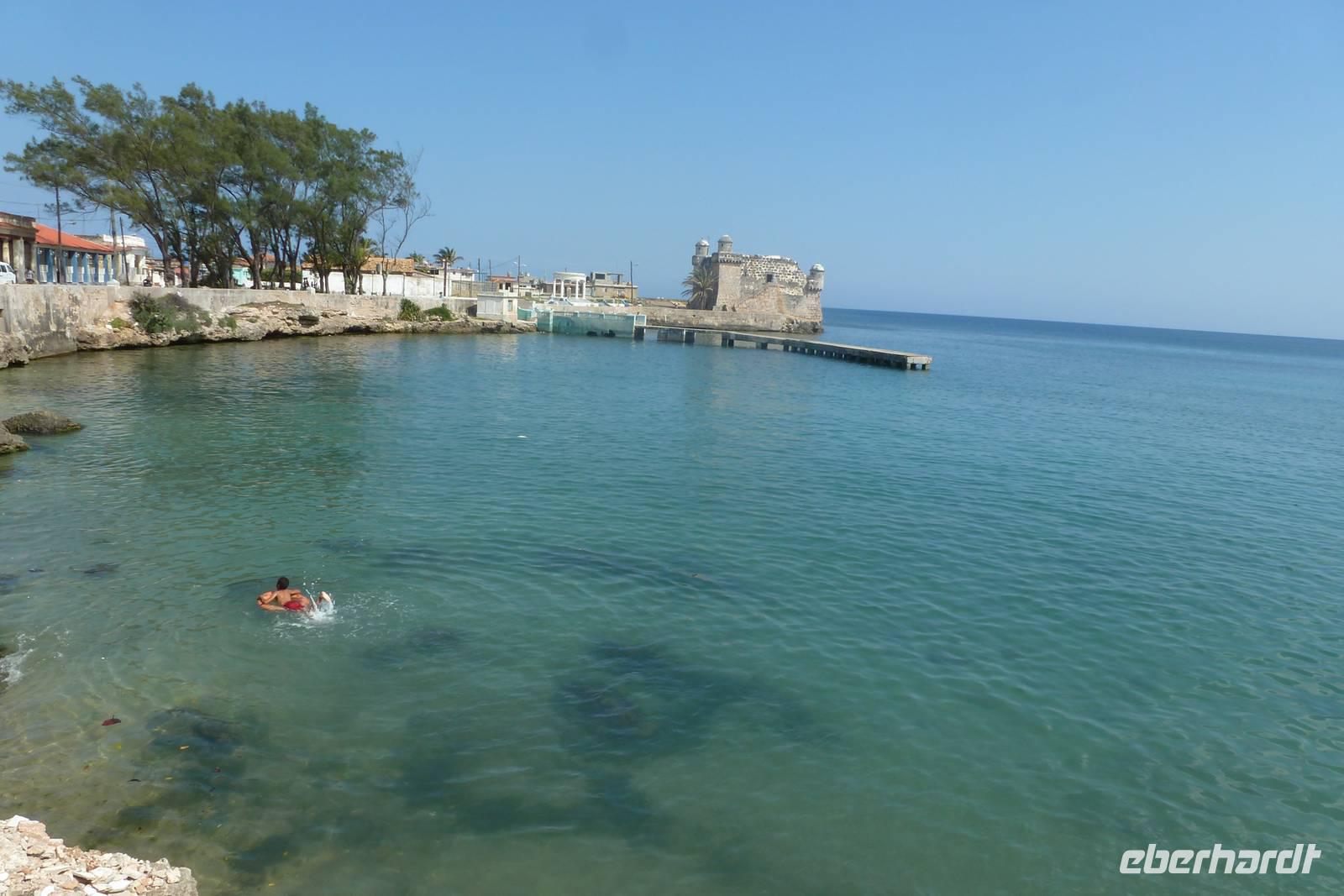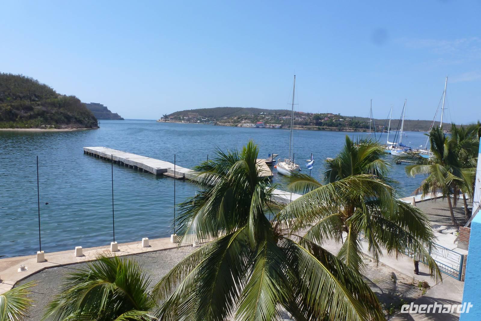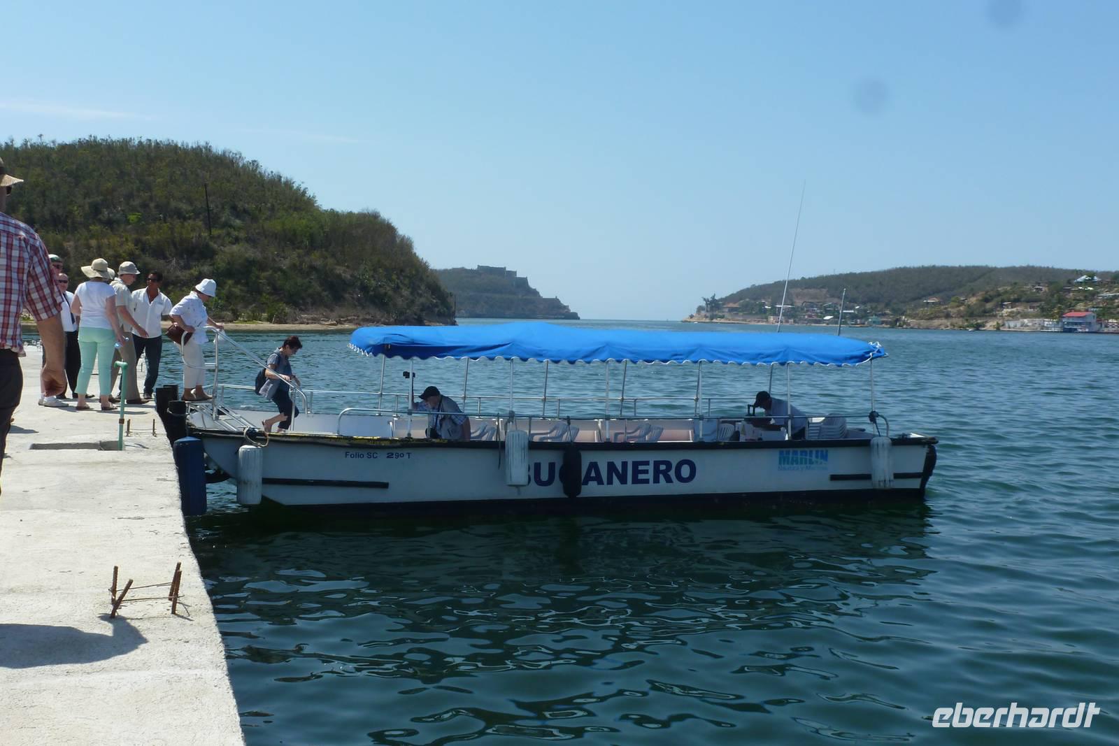 Es ging heute sehr früh los - um 6 Uhr früh sind wir in den Osten Kubas geflogen - nach Santiago. Es war ein angenehmer Flug, und um halb 8 sind wir schon gelandet. Unser Bus und unser Buschauffeur Javier haben uns schon erwartet. Es war ein schöner, moderner Bus den wir nun für die gesamte Reise hatten. Erst einmal sind wir zum Friedhof Santiagos gefahren und haben die Wachablösung an Jose Martis Grab - dem Nationalhelden Kubas - miterlebt. Weiter ging es zur Kaserne Moncada, welche Fidel Castro mit seinen Männern 1953 angegriffen hat. Danach sind in die Stadt gefahren und haben das kubanische Leben auf den Straßen der zweitgrößten Stadt der Insel kennengelernt. Wir sind durch die Fußgängerzone spaziert, überall waren die Menschen auf der Straße, haben Musik gehört, Domino gespielt und sich zum plaudern getroffen. Wir sind zum Hauptplatz mit dem Rathaus gelaufen - dort hat Fidel Castro nach der Revolution das erste Mal vom Balkon zu den Menschen gesprochen. Und weil wir nun alle etwas Hunger hatten wollten wir erst einmal Mittag essen. So ging es mit einem kleinen Boot einmal durch den Hafen von Santiago zu dem kleinen Inselchen El Cope wo wir in einem wunderschönen kleinen Fischrestaurant mit einer tollen Terrasse am Wasser leckeren gegrillten Fisch genossen haben - das war toll und so entspannend. Nach dieser schönen Pause fuhren wir mit dem Boot zurück und dann auf einer „verlassenen" Straße hoch zur Festung El Morro. Es war richtig heiß und die Sonne hat es besonders gut mit uns gemeint. Wir spazierten durch die Festung und haben ein paar tolle Aufnahmen vom Hafen und der Küste am karibischen Meer gemacht. Schließlich sind wir zu unserem Hotel „Las Americas" gefahren und haben uns etwas ausgeruht. Am Abend sind wir nach einem Begrüßungsgetränk „Rum-Cola" ins Restaurant „Zum-Zum" gelaufen und haben „alte Klamotte" gegessen - das ist so eine Art Rindsgulasch auf kubanische Art.