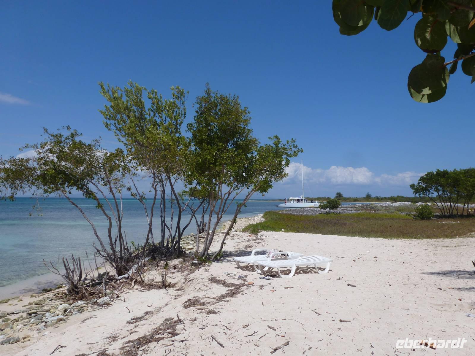 Der heutige Sonntag konnte ganz individuell gestaltet werden - man konnte entweder am schönen Strand des Hotels Club Costa Sur bleiben und die Annehmlichkeiten der All Inklusive Anlage genießen oder einen Ausflug zur Karibikinsel Cayo Blanco unternehmen. So sind 7 Gäste im Hotel geblieben und ich bin mit 10 „Sonnenfans" zum kleinen Hafen gefahren. Dort gingen wir an Bord eines wunderschönen Katamarans, welcher uns heute durch die Karibik zur unbewohnten Insel Cayo Blanco bringen sollte. Wir machten es uns auf dem Netz oder auf den Sitzen des Katamarans gemütlich und bei kubanischen Rhythmen und einem kühlen Getränk gleiteten wir über das karibische Meer. Nach circa einer Stunde sind wir an der Insel angekommen und alle „Mutigen" sind mit Schnorchel und Taucherbrille in dem bunten Riff vor der Insel schnorcheln gegangen. Es gab bunte Fische und tolle Korallen zu sehen. Dann sind wir von Bord gegangen und haben die kleine tolle Insel getreten. Dort wurde in einer kleinen Hütte frische Paella für uns gekocht und wir konnten nach einer kurzen Erkundung des Strandes auch schon essen - wir haben uns noch frische Languste und Schrimps dazu bestellt - es war sehr lecker, mitten in der Karibik, von Palmen und türkisblauen Wasser umgeben... Dann sind wir in das warme Meer schwimmen gegangen, haben unter den Kokospalmen geträumt und haben es uns einfach gut gehen lassen. Gegen 14:45 Uhr fuhren wir wieder zurück Richtung Kuba - die Rückfahrt war bei Cuba Libre und Bucanero Bier sehr lustig - unsere Männer der Gruppe haben auf dem Katamaran Salsa getanzt....da war was los! Aber alles hat ein Ende und so kamen wir wohlbehalten wieder am Hafen an und Lois und Javier erwarteten uns schon. Zurück im Hotel haben wir uns an der Strandbar noch für einen weiteren Cuba Libre getroffen und den Abend nach dem Essen bei guter Stimmung an der Poolbar ausklingen lassen.