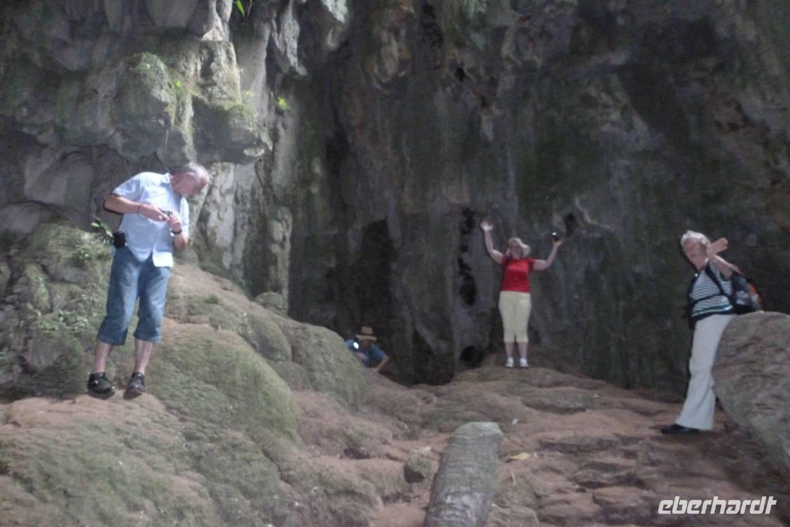 Heute fuhren wir mit unserem Luis in den Westen Kubas - raus aus der Stadt und hinein in die wunderschöne Natur des Vinales Tals. Zuerst fuhren wir in die Guayabita-Likörfabrik nach Pinar del Rio. Dort wird in einer kleinen Halle ein Schnaps aus Früchten hergestellt, die nur in diesem Tal wachsen. In der kleinen Fabrik haben wir auch die originalen kubanischen Zigarren gekauft - ein tolles Mitbringsel für alle Daheimgebliebenen. Danach sind wir natürlich in eine Zigarrenfabrik gefahren - dort werden die Zigarren noch echt mit der Hand gedreht. Dicke, dünne, kurze, lange - es war sehr interessant zu sehen, dass die Männer und Frauen diese noch mit der Hand rollen. Weiter ging es durch das wunderschöne Vinales Tal mit seiner roten Erde, den Tabakhütten und vielen Bauernhäusern in den Ort Vinales. Wir fuhren zuerst zu einer Felshöhle in den tollen „Elefantenhügeln", wo wir zuerst durch einen Höhlengang durchliefen, um dann zu einen wunderschönen Restaurant unter Palmenblattdächern zu kommen. Es gab sehr gutes gegrilltes Hühnchen. Danach spazierten wir durch das traumhafte Tal und besuchten zuerst ein Tabakhaus, in welchem die Tabakblätter alle zum trocknen aushingen. Danach besuchten wir eine Bauernfamilie zu Hause - Luis kannte wiedermal die Hausherrin und begrüßte sie mit „einem Küsschen links, einem Küsschen rechts". Und so durften wir in die Küche hinein und konnten sehen, wie die Landbevölkerung Kubas hier lebt.Das war ein ganz tolles Erlebnis. Schließlich fuhren wir zu unserem schönen Hotel Ermita oben auf einem Hügel über dem Tal - es ist eine ganz tolle Anlage mit schönen Blick über die Tabakfelder und die rote Erde...Wir waren im Pool schwimmen oder haben uns in der Nachmittagssonne etwas ausgeruht. Zum Sonnenuntergang haben wir uns mit einem Cuba Libre auf der schönen Aussichtsplattform getroffen...das war romantisch. Das tolle Abendessen gabs im schönen Panoramarestaurant mit Blick übers Tal....