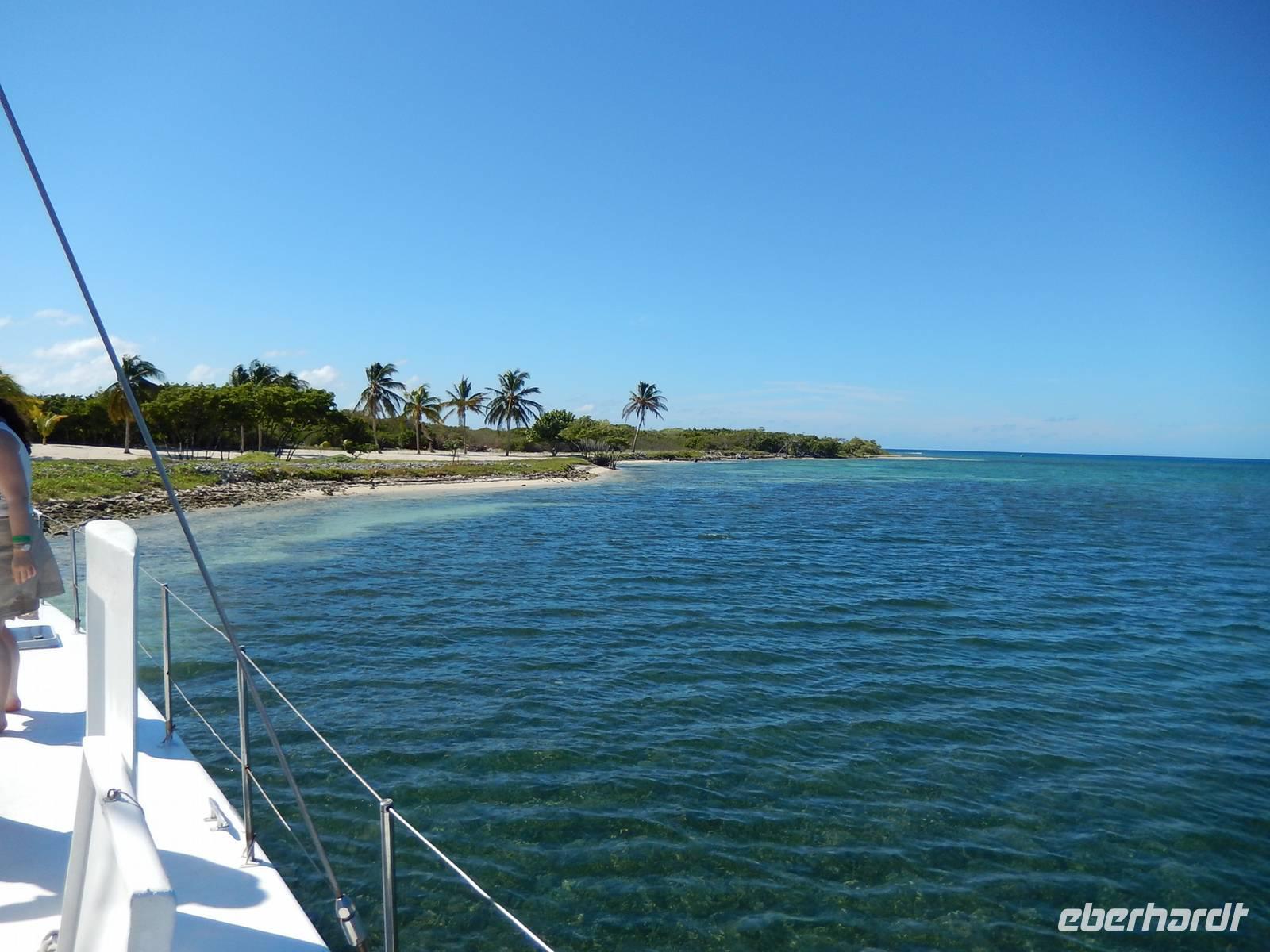 Während fast die ganze Gruppe am Strand liegt, sind wir mit den Katamaran nach Cayo Blanco gesegelt. Der Strecke war sehr ruhig und auf unserer Hinfahrt hat der Skipper einen „Yellow Jack" gefischt. Cayo Blanco ist eine kleine Insel unbewohnt, ja fast jungfräulich. Als Tiere leben dort hauptsächlich Einsiedlerkrebse und Leguane. Am Strand angekommen, haben wir Zeit eine Stunde im dortigen Korallenriff zu schnorcheln. Nachdem das Boot zurück ist, essen wir alle gemeinsam zu Mittag und anschließend haben wir wieder Freizeit um Strand und Meer zu genießen. Der traumhafte Tag endet dann im Hotel.