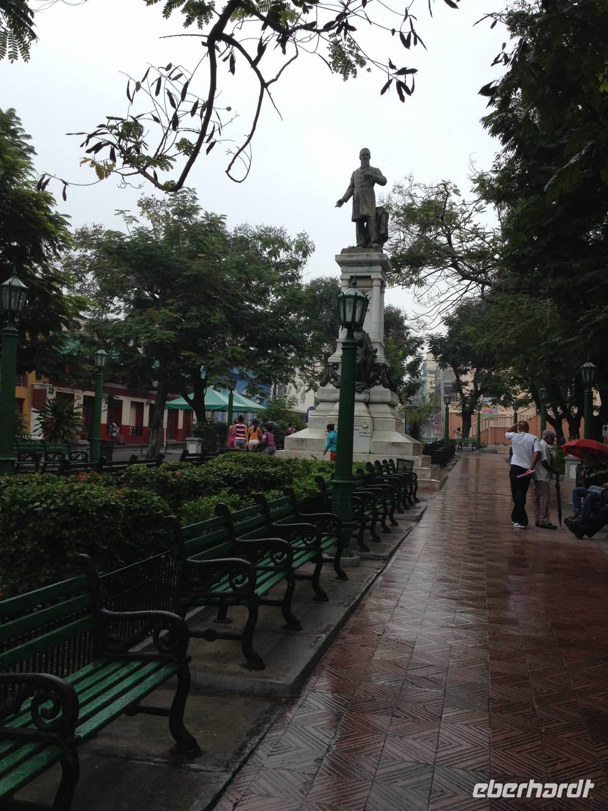 Nach dem Frühstück fahren wir mit dem lokalen Fahrrad-Taxi in Richtung Zentrum um ein traditionelles Haus und die Kirche La Merced zu besichtigen. Danach sehen wir die Plaza del Carmen wo sich Monumente verschiedener Bürger befinden, wie der Mann der die Zeitung liest. Unsere Fahrradfahrer waren sehr nett und sie waren achtsam der ganze Zeit.
