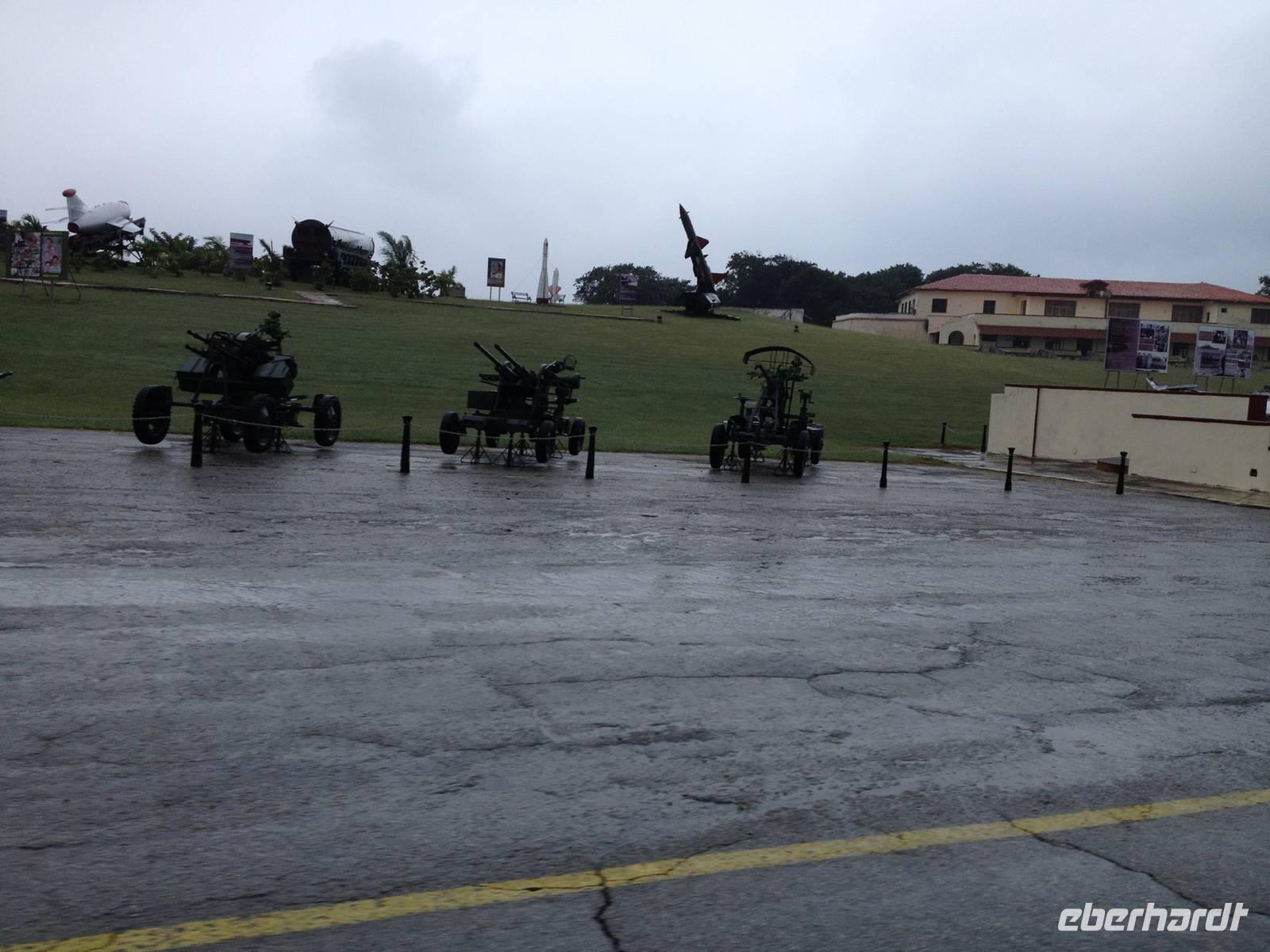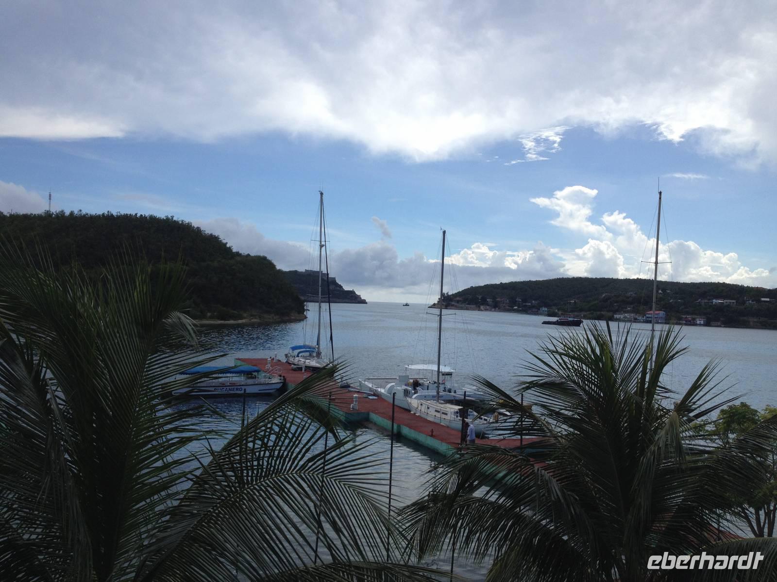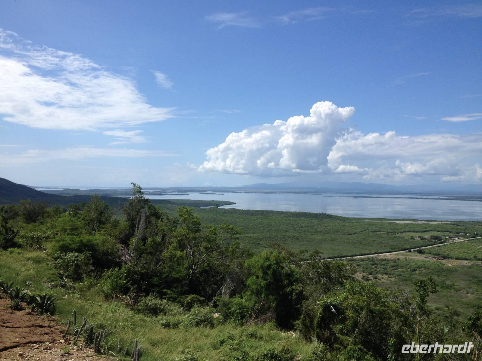 Nach dem Frühstück fahren wir nach Guantanamo. Am Aussichtspunkt La Gobernadora begrüßt uns ein örtlicher Reiseleiter aus der Provinz Guantanamo. Er erklärt uns einiges über das Gefängnis und auch die Geschichte zwischen über die militärische Bedeutung.