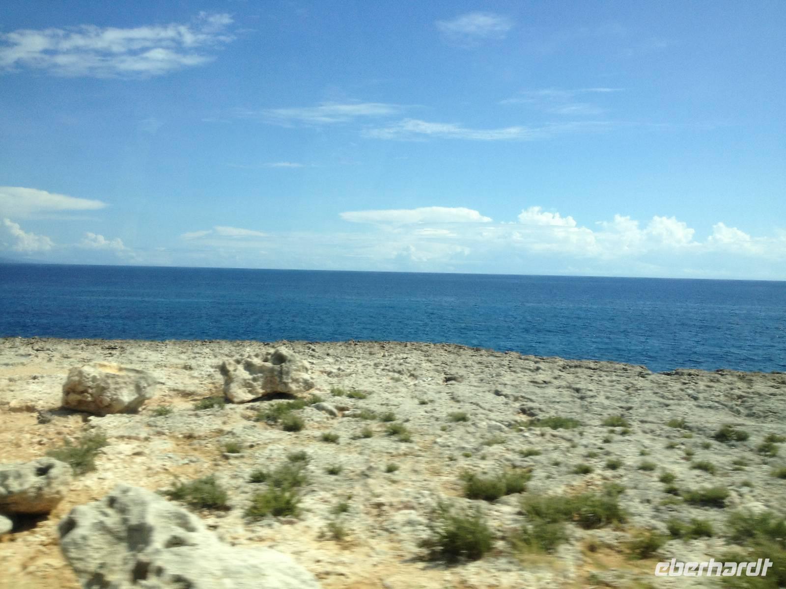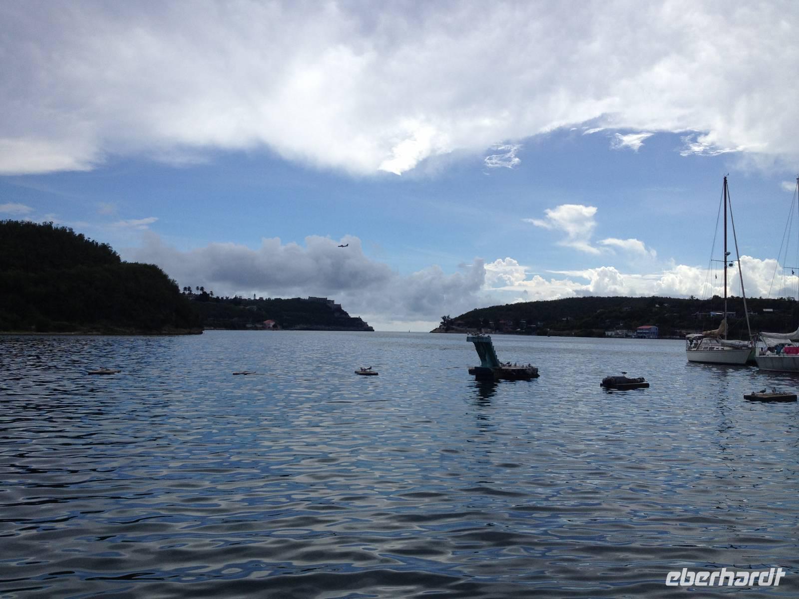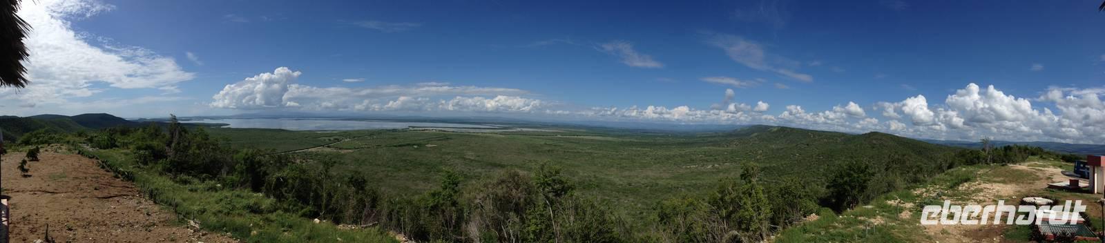Nach dem Frühstück fahren wir nach Guantanamo. Am Aussichtspunkt La Gobernadora begrüßt uns ein örtlicher Reiseleiter aus der Provinz Guantanamo. Er erklärt uns einiges über das Gefängnis und auch die Geschichte zwischen über die militärische Bedeutung.