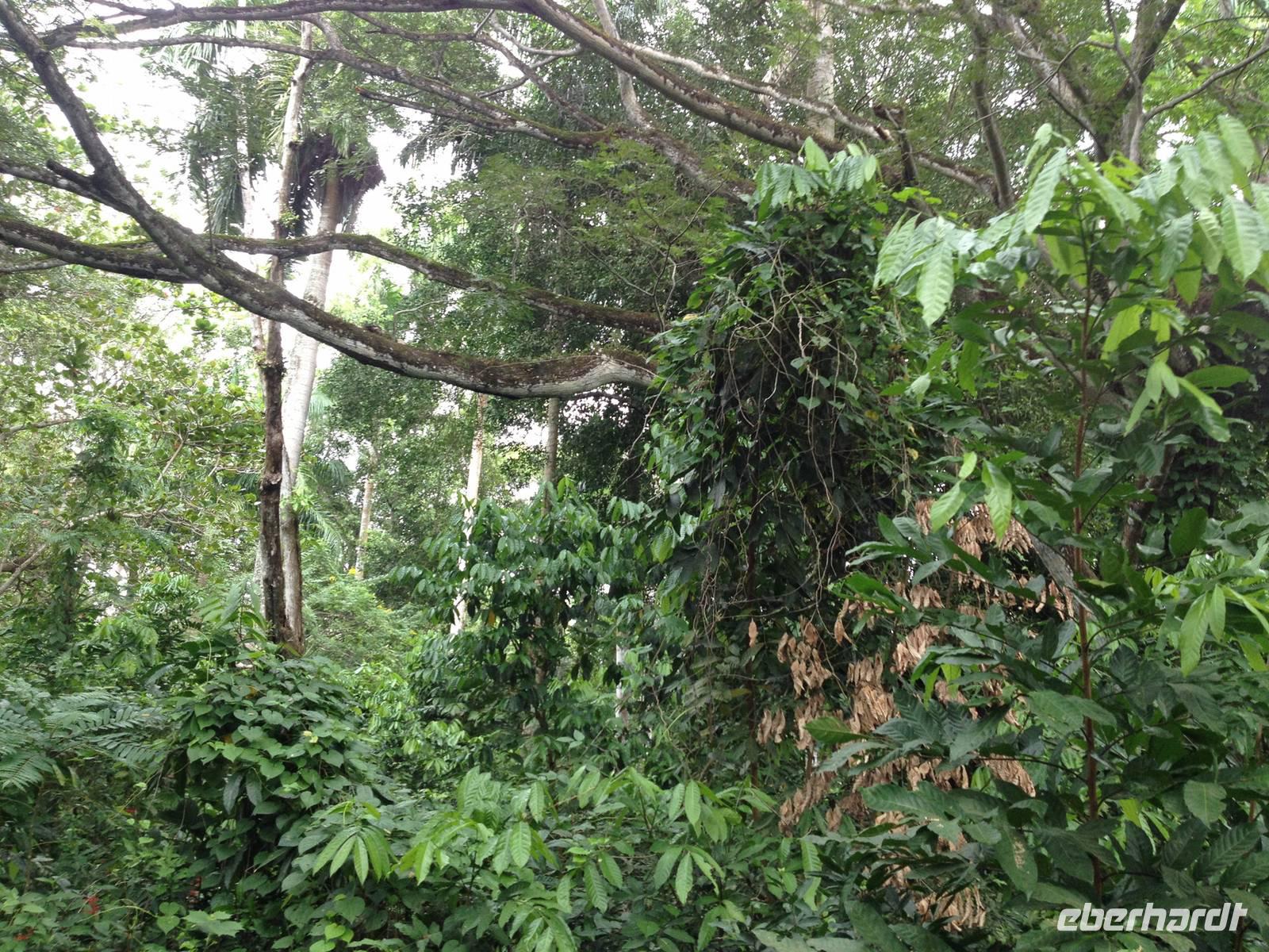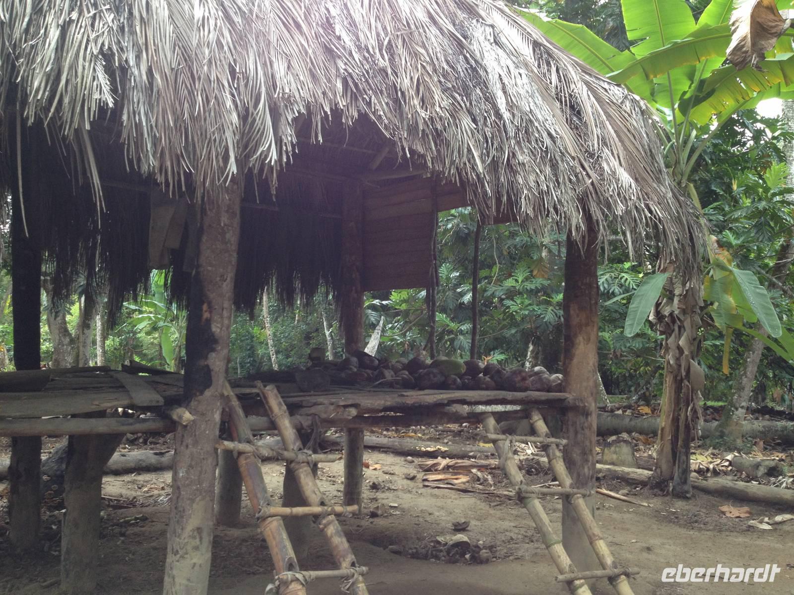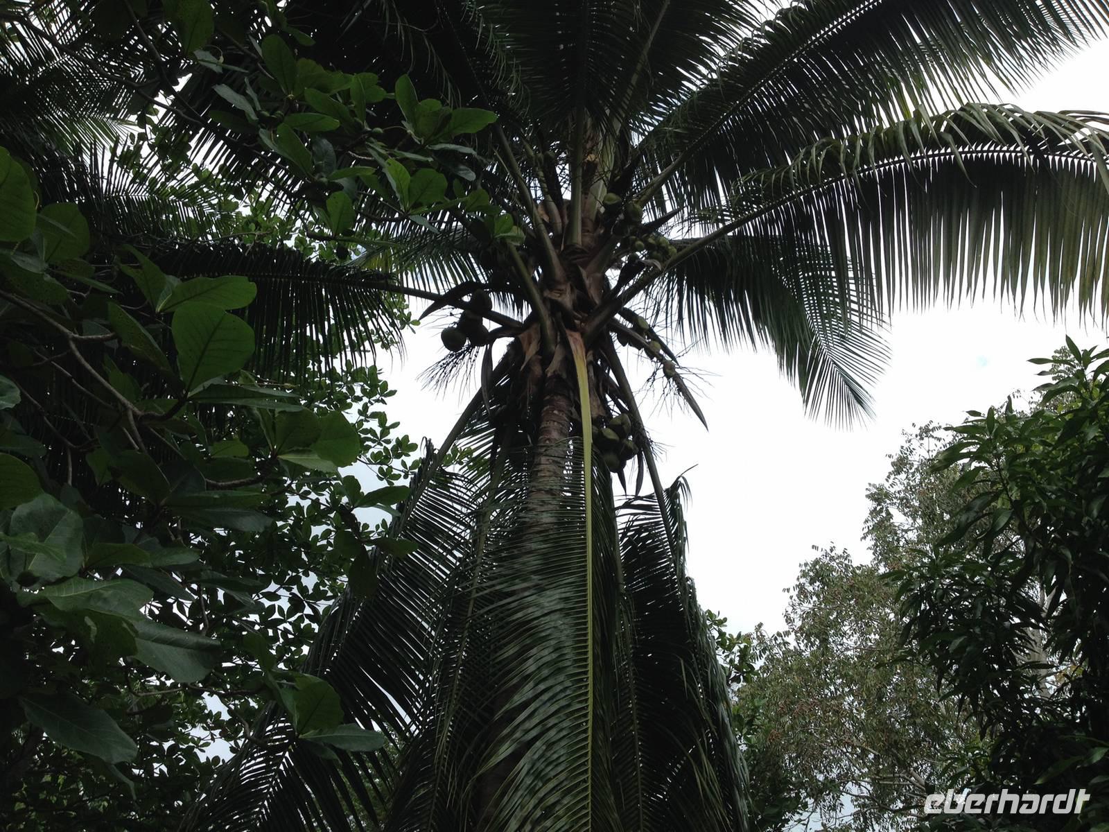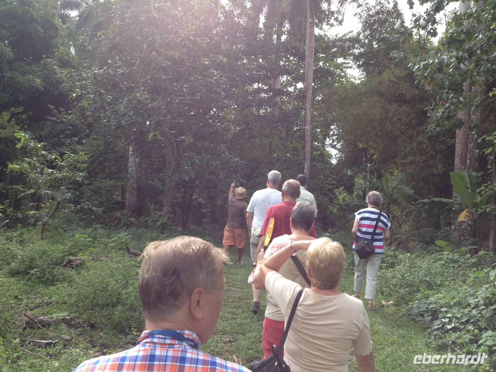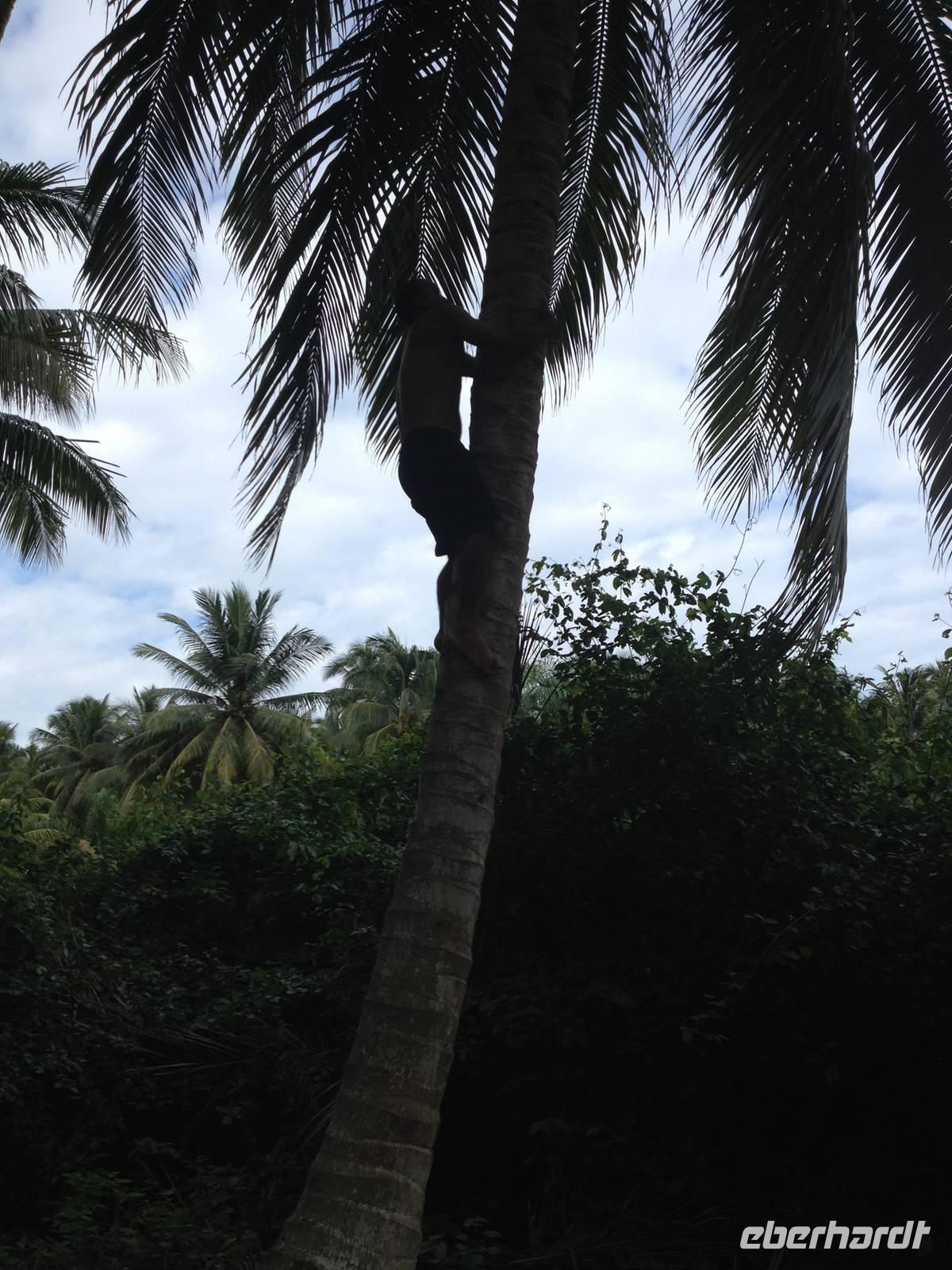 Nach der Führung können wir frische Kokosmilch kosten, die Kokosnüsse werden vor unseren Augen direkt vom Baum geholt. Außerdem besuchten wir noch das Haus eines Forstarbeiters und konnten dort verschiedenes Obst probieren.