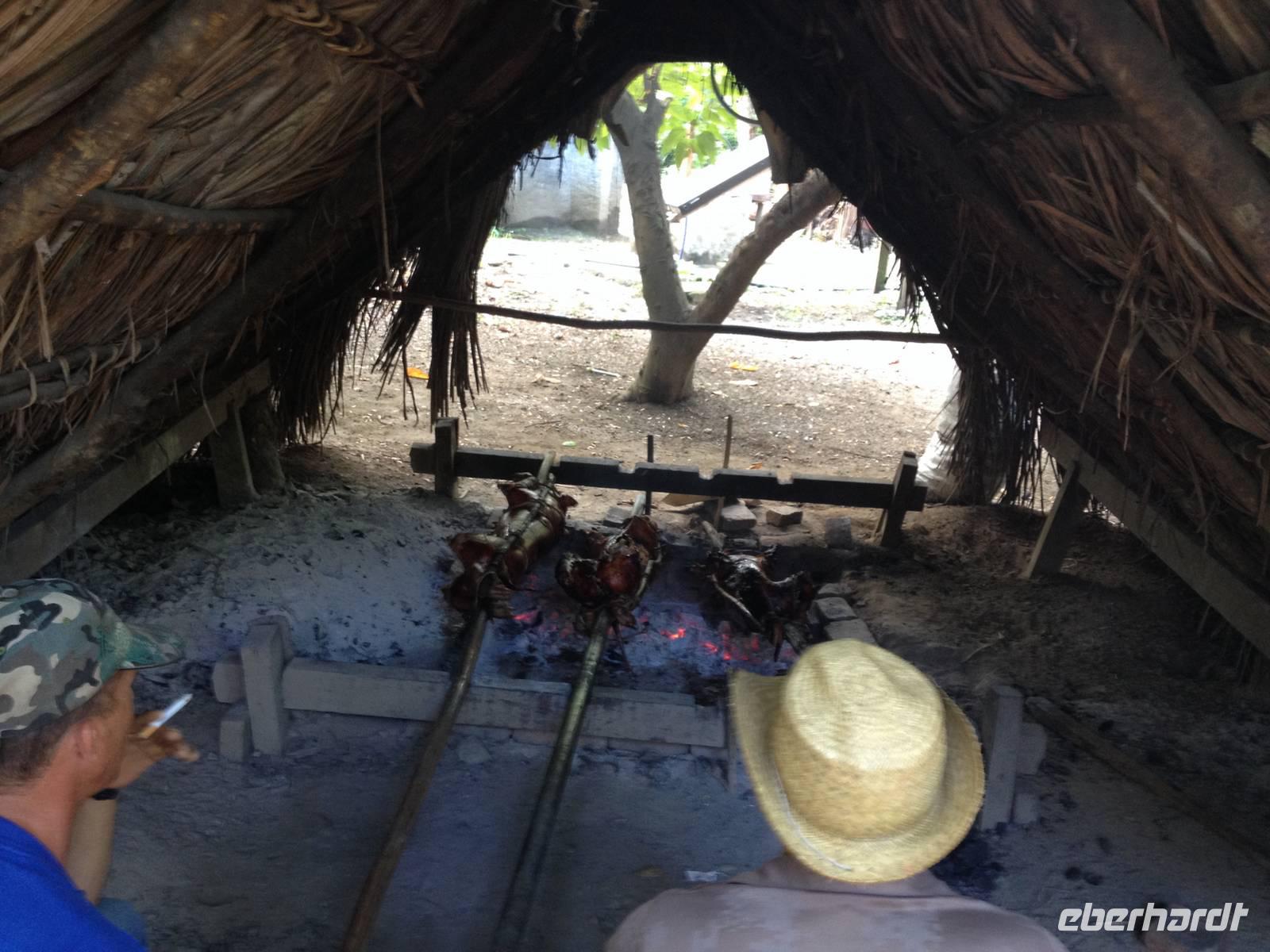 Auf der anderen Seite des Flusses in Cayucos erwartet uns ein leckers Mittagessen. Die Suppe wurde uns in einem Teller aus Bambus serviert und die das Hauptgericht war Schwein am Spieß gebraten. Zum Nachtisch konnten wir einen Kokospudding probieren, welcher typisch für diese region ist. Und natürlich durfte ein Cocktail mit Orangensaft und Rhum nicht fehlen.