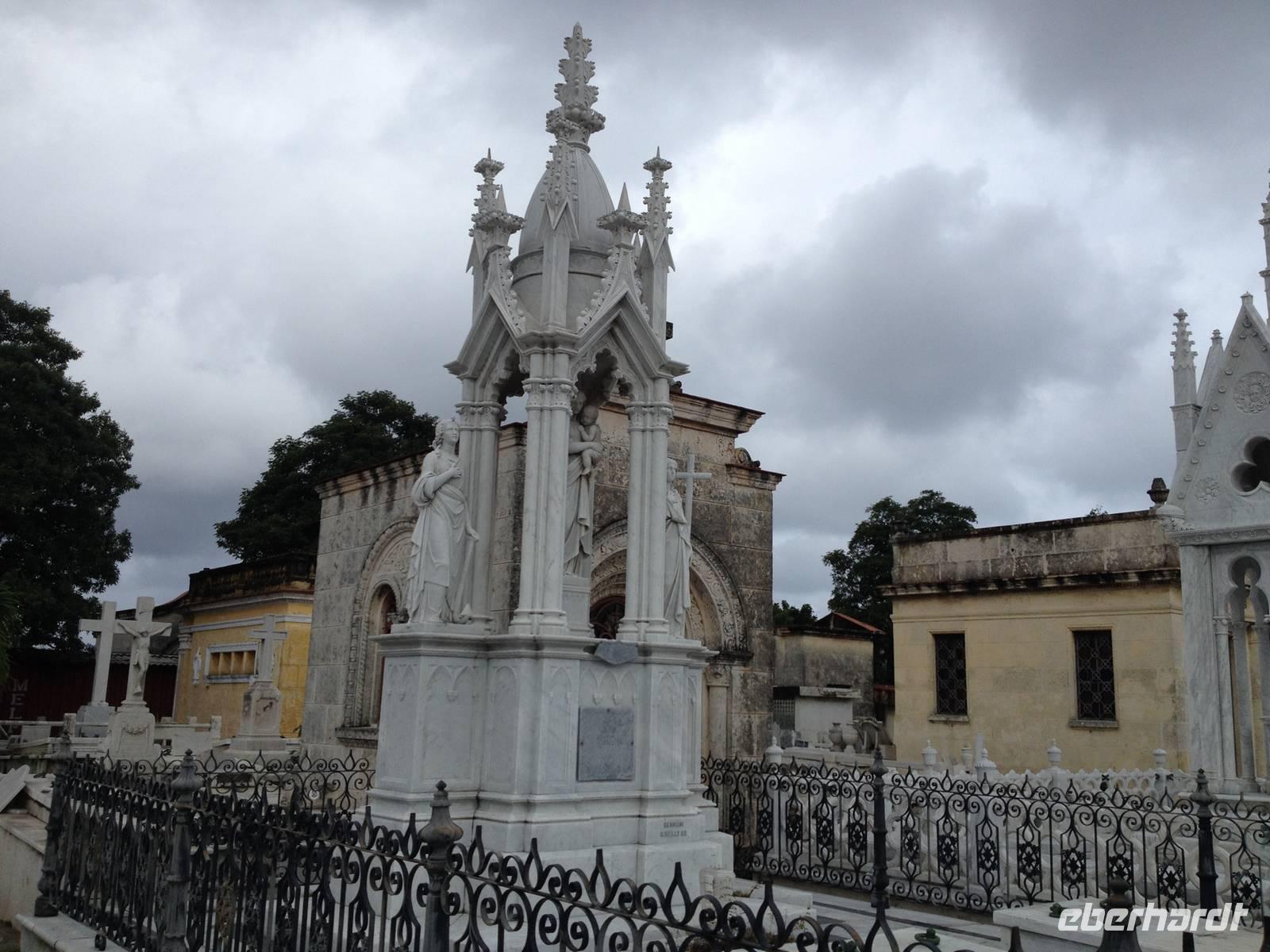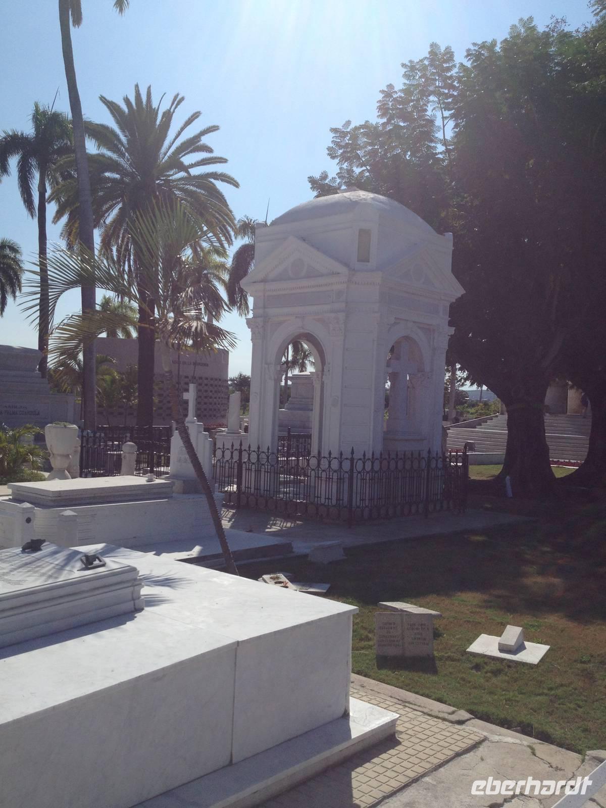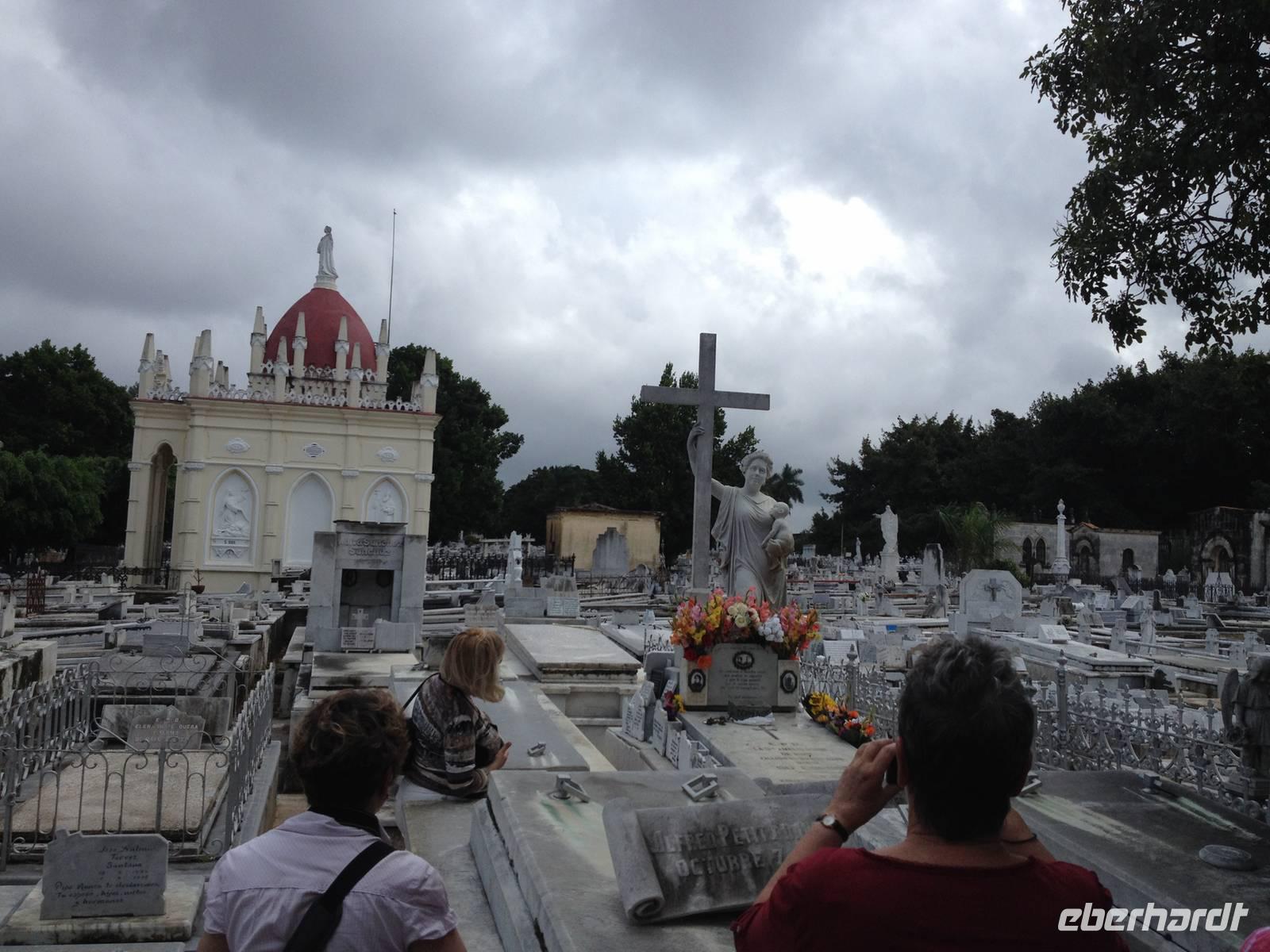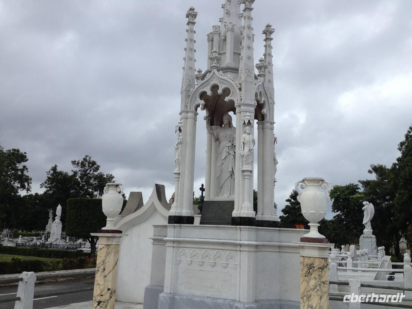 Das Friedhof Santa Ifligenia ist ein Spiegelbild der kubanischen Geschichte und wir konnten die verschiedene Denkmäler und Mausoleums sehen, wie zum Beispiel das von Bacardi, Compai Segundo, die Familie Céspedes, verschiedener Militärs. Das größte Mausoleum zeigt die 6 alten Provinzen von Kuba und beherbergt die sterblichen Überreste von Jose Martí.