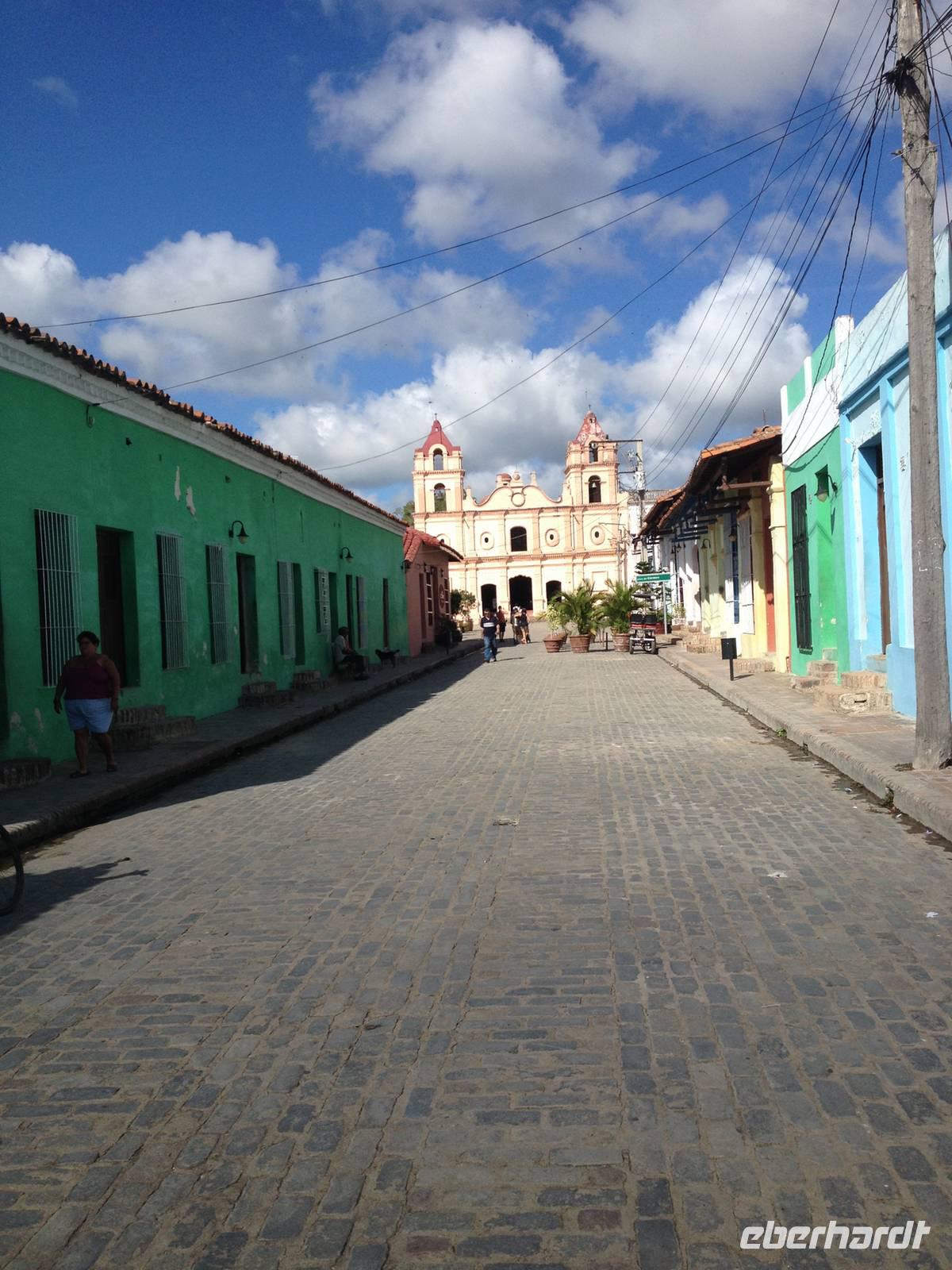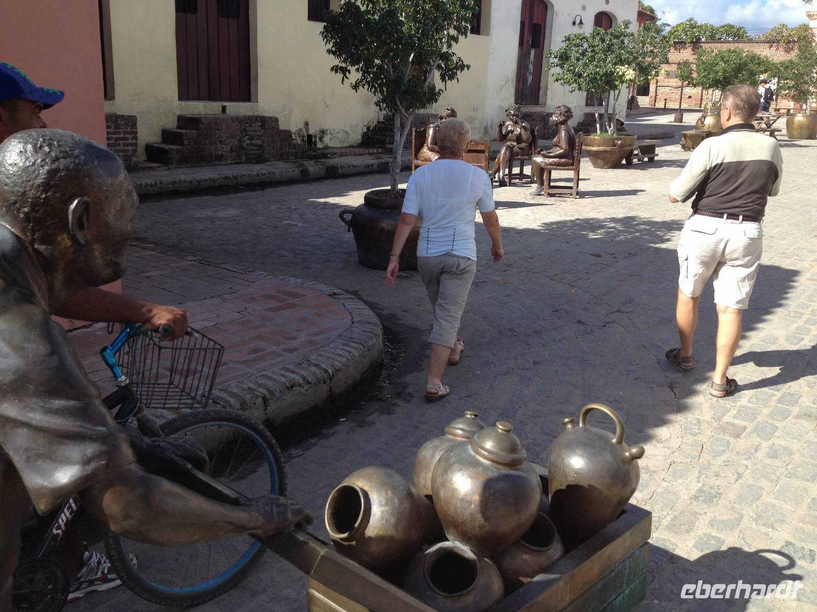 Ein Rundgang führt uns durch das historische Zentrum. Wir beginnen im Parque Céspedes wo die Kathedrale, das Rathaus, das Haus von Diego Velázquez und unser Hotel befinden. Dann gehen wir zur Plaza de Dolores und bis zur Plaza de Marte, wo sich das Unabhängigkeitsdenkmal und Monumente zur Erinnerung für Camilo Cienfuegos und José Martí befinden. Wir hatten dort Gelegenheit mit Einwohnern zu sprechen. Im ältesten Stadtteil, dem französische Viertel befinden sich verschiedene Grundschulen und wir konnten die fröhlichen Kinder fotografieren.