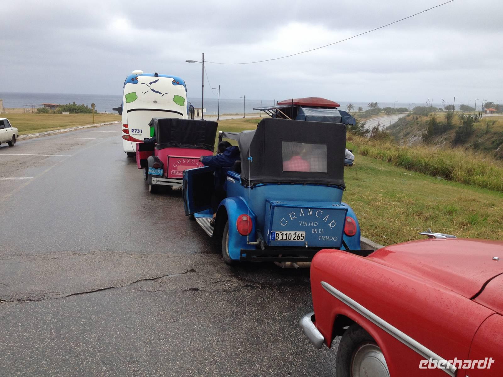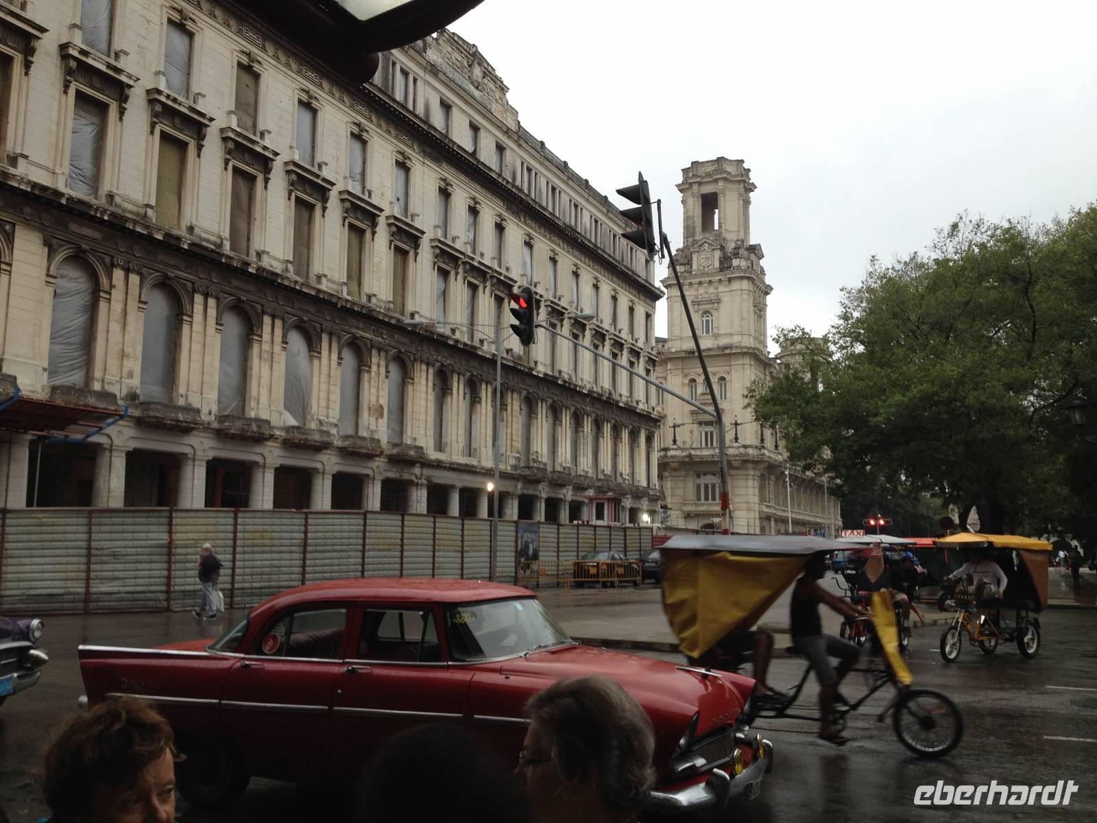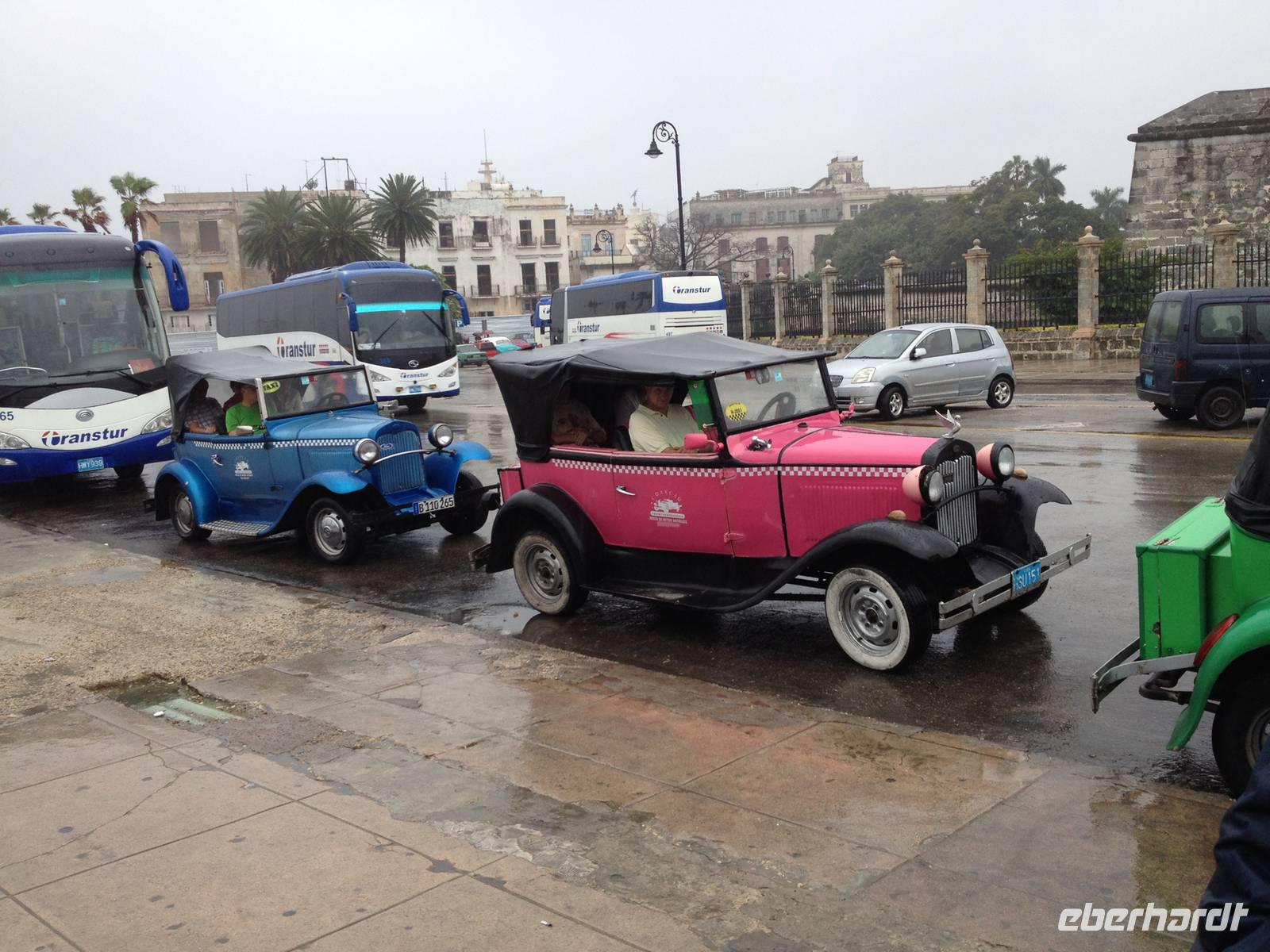 In Havanna regnet es, aber das war kein Problem! Wir konnten die Fahrt mit den Oldtimern genießen und sind mit den Autos zur Festung El Morro gefahren. Nach einer kurzen Besichtigung geht die Fahrt weiter durch die Altstadt Havannas bis zu unserem Hotel. Am Abend hatten wir ein angenehmes Essen in Restaurant Cafe de Oriente mit einem Salon nur für uns. Der Kellner erzählte uns die Geschichte über Zauberer der dort war und die Karte die dort noch liegt.
