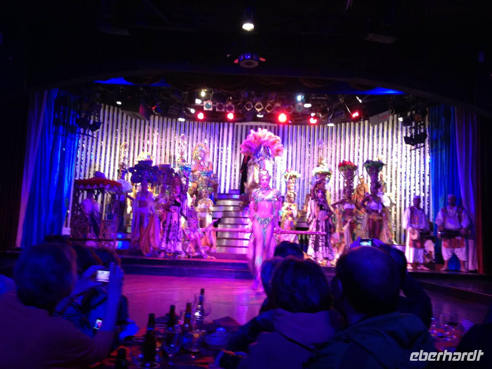 Die Nacht war noch jung und das schöne Cabaret Parisien wartet schon auf uns. Zuerst lernen das bekannte Hotel kennen, dann essen wir zu Abend und in der Show sitzen wir in der ersten Reihe. So können wir das Erlebnis aus Live Musik und Tanz genießen. In der Show sahen wir die verschiedenen Einflüsse von anderen Kulturen auf die kubanische Kultur. Gegen Mitternacht waren wir zurück im Hotel.