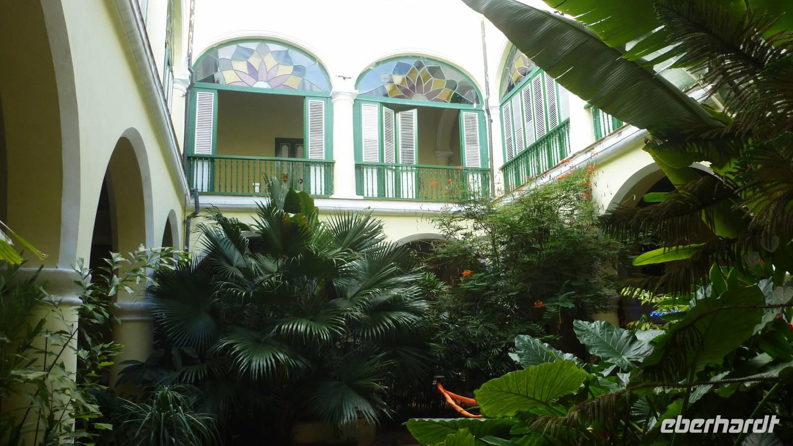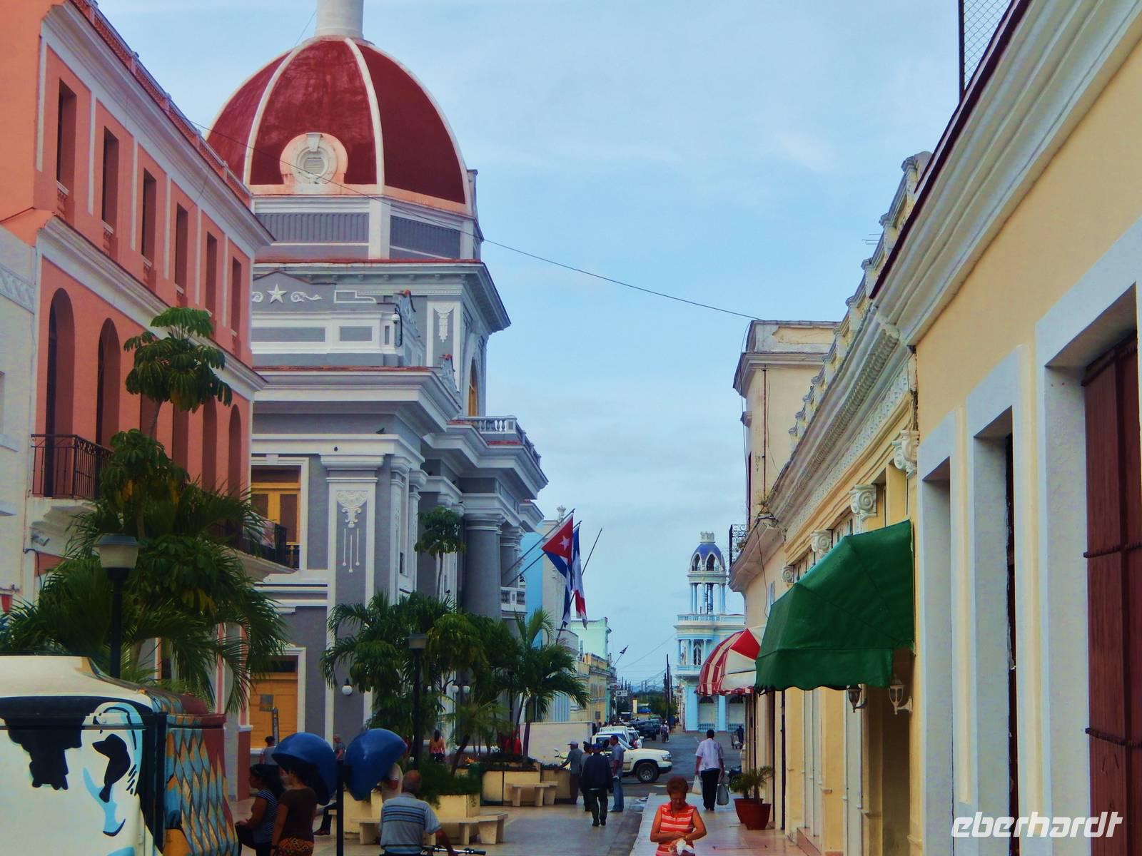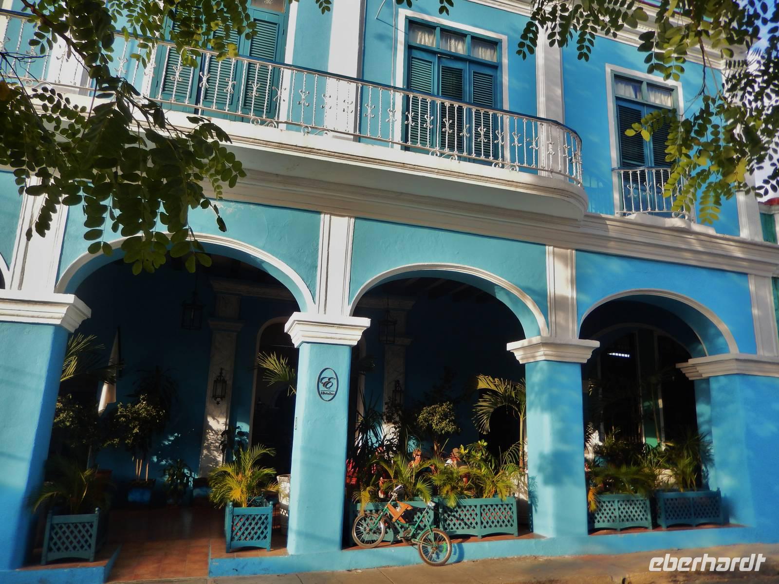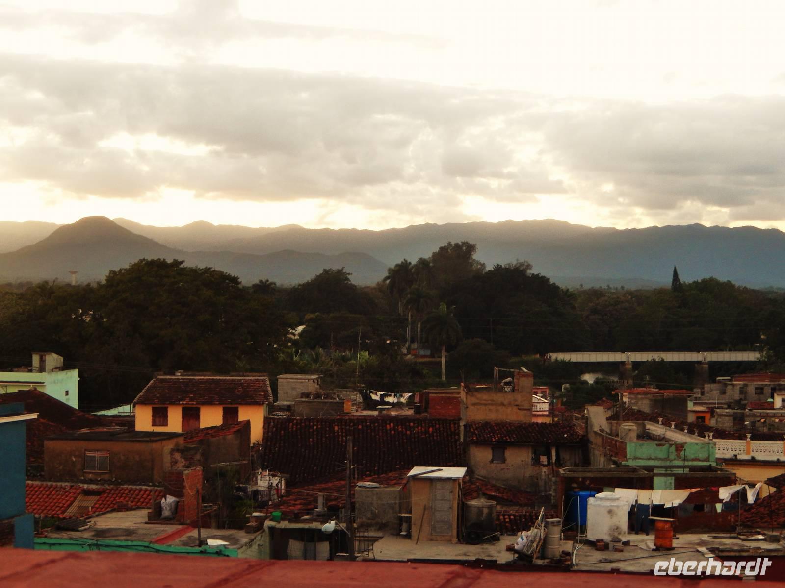 Vorbei an Karibikstränken und Palmentälern gelangen wir am Nachmittag zum Jardín Botanico in der Nähe von Cienfuegos. Gegründet wurde dieser Park 1901 von einem US-amerikanischen Zuckerbaron, welcher seltene und wertvolle Arten aus aller Welt sammelte. Wir lernen verschiedene Palmen-, Fikus- und Hibiskusarten kennen. Ein kubanischer Naturführer begleitet und und zeigt uns Bambusarten, einen Ebenholzbaum, Kanonenkugelbaum, Lidschibäume und vieles mehr. Danach fahren wir zum heutigen Übernachtungsort, nach Cienfuegos. Gleich neben unseren schönen Hotel Jagua befindet sich das Palacio de Valle. Während sich Luis um den Check in kümmert, besuchen wir das schöne Gebäude, welches kostbare Elemente der gotischen, venezianischen, barocken und maurischen Baukunst aufweist. Wie aus einem Märchen aus 1001 Nacht erscheint das Gebäude, und scheint so gar nicht hier hin zu gehören. Auf der Dachterrasse genießen wir bei einem Cocktail atemberaubenden Blick über das Meer und die Stadt, die gerade in goldenes Abendlicht getaucht wird. Später entspannen wir im Hotel, begleitet von einem unvergesslichen Sonnenuntergang. Nach dem Abendessen am reichhaltigen Hotelbuffet verweilen wir noch bei einem Drink an der Bar.