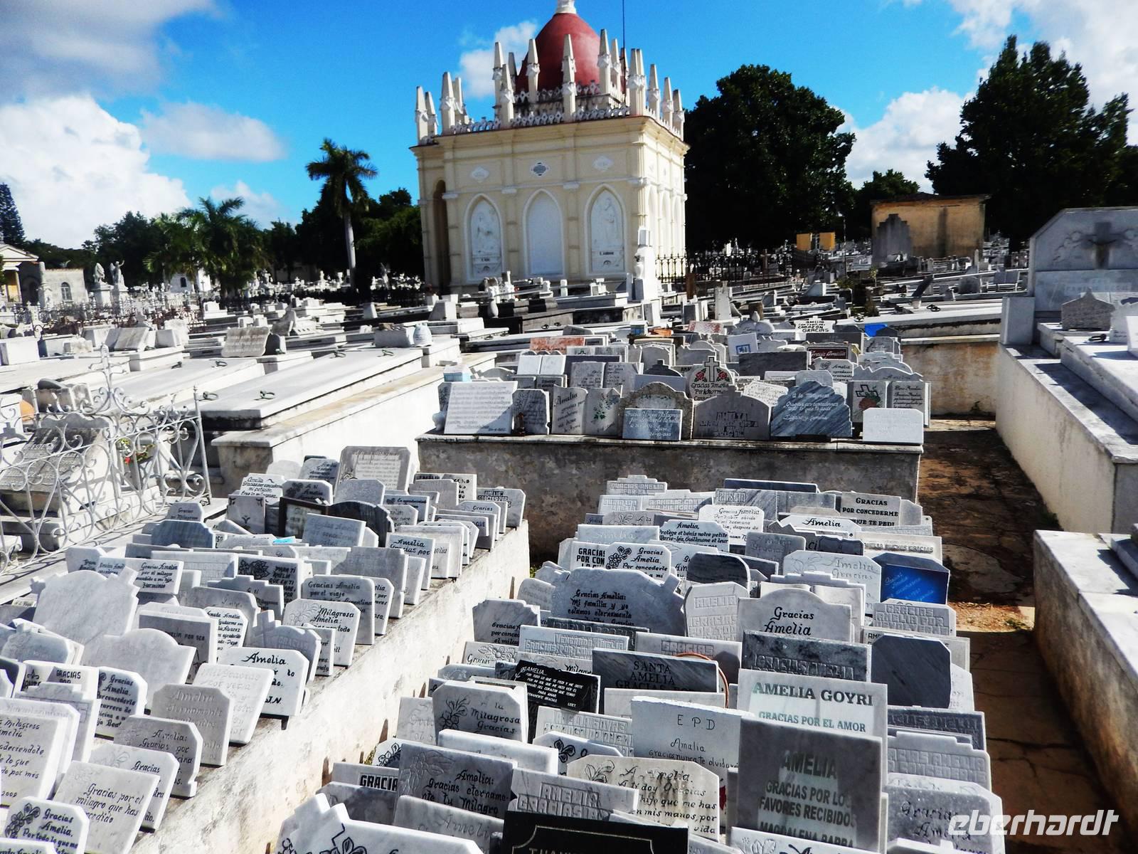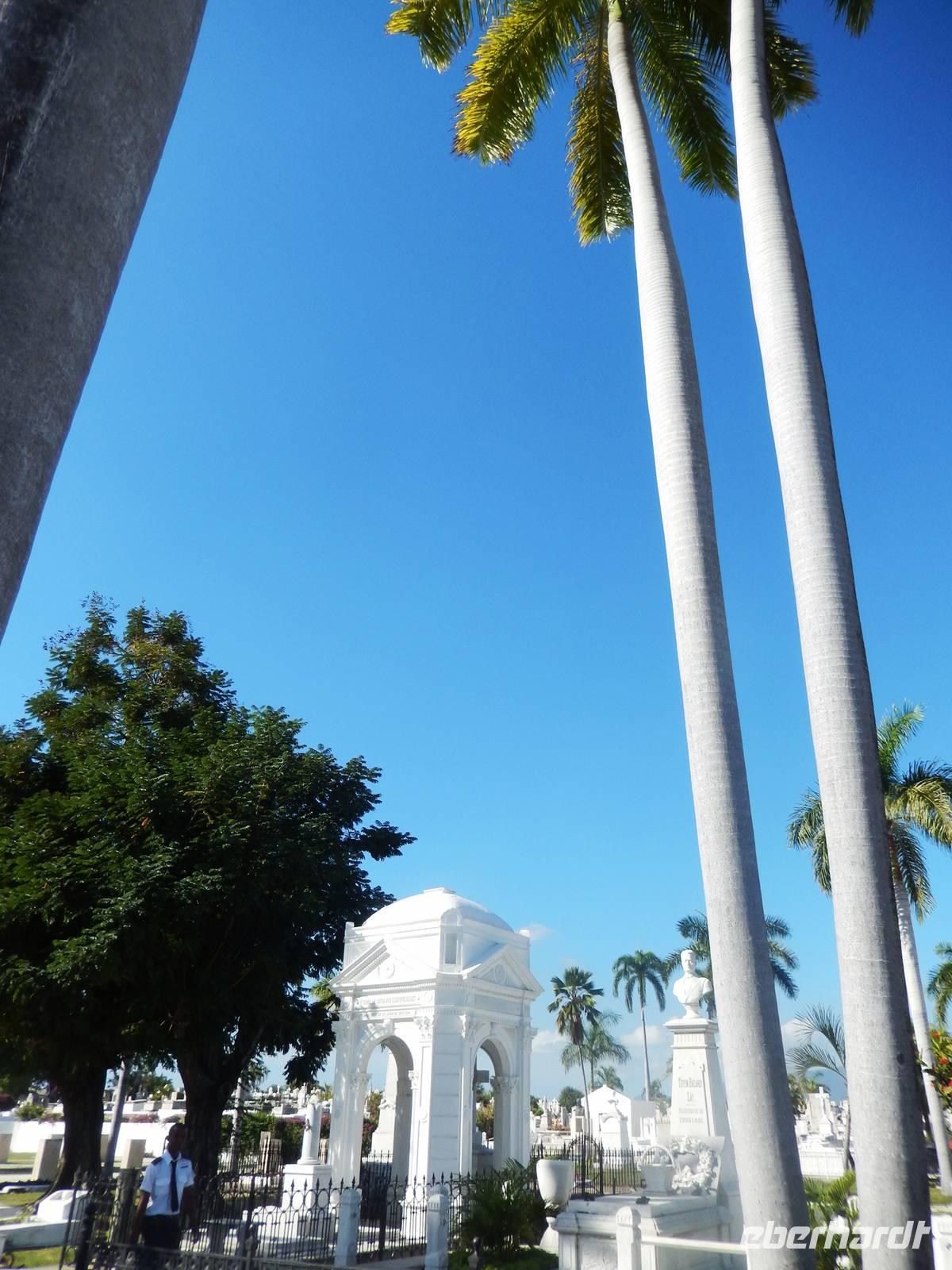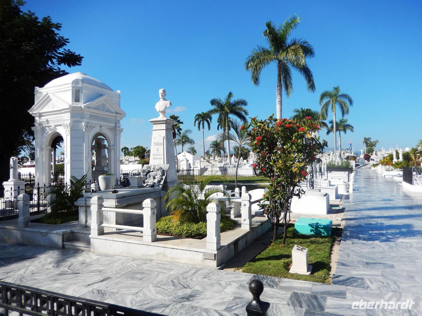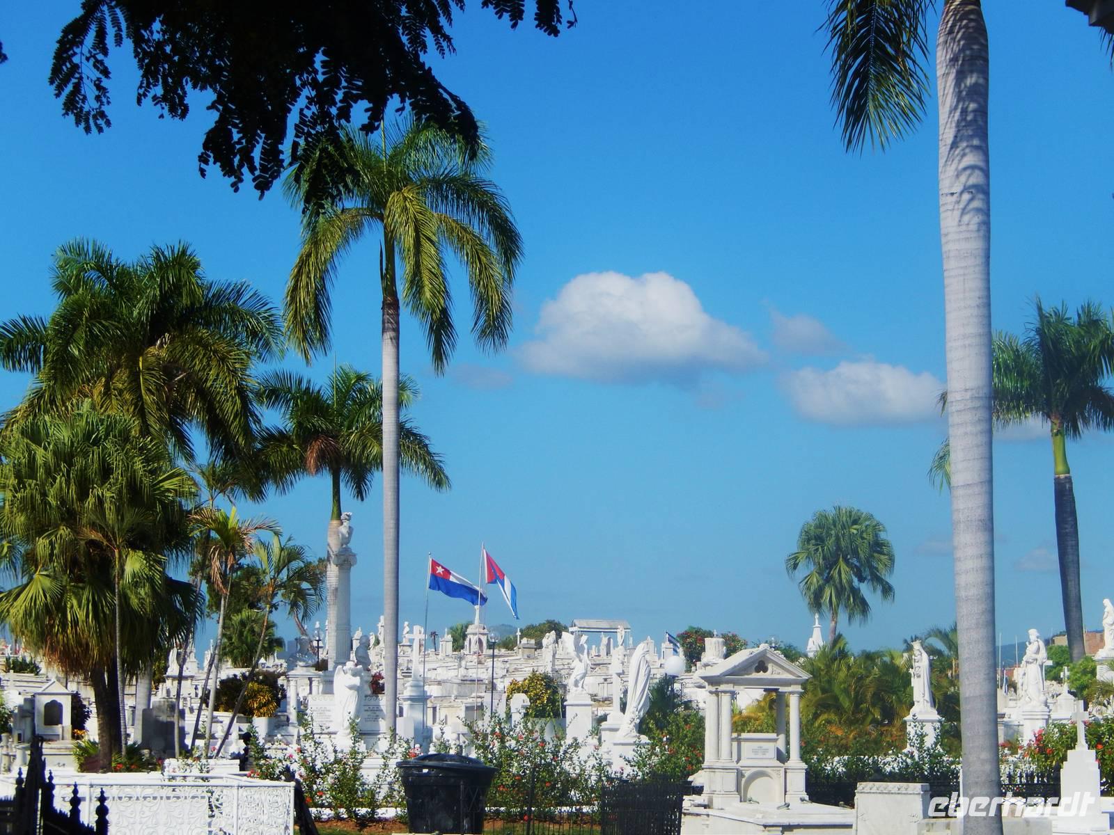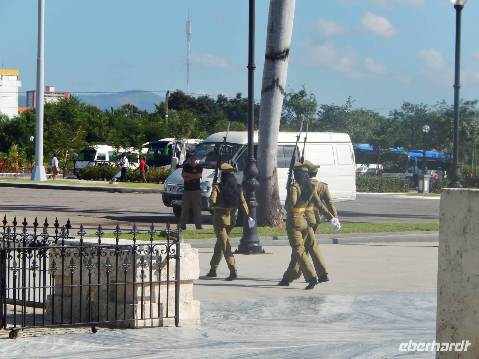 Anschließend geht es weiter zum Friedhof Cementario Santa Ifigenia mit den wunderschönen weißen Grablabyrinthen. Viele Berühmtheiten Kuba liegen hier begraben, so zum Beispiel Compay Segundo von Buena Vista Social Club und Jose Marti, Kubas Nationalheld. An dessen Grab erleben wir einen Wachpostenwechsel, der mit Marschmusik und viel Ehrfurcht durchgeführt wird.
