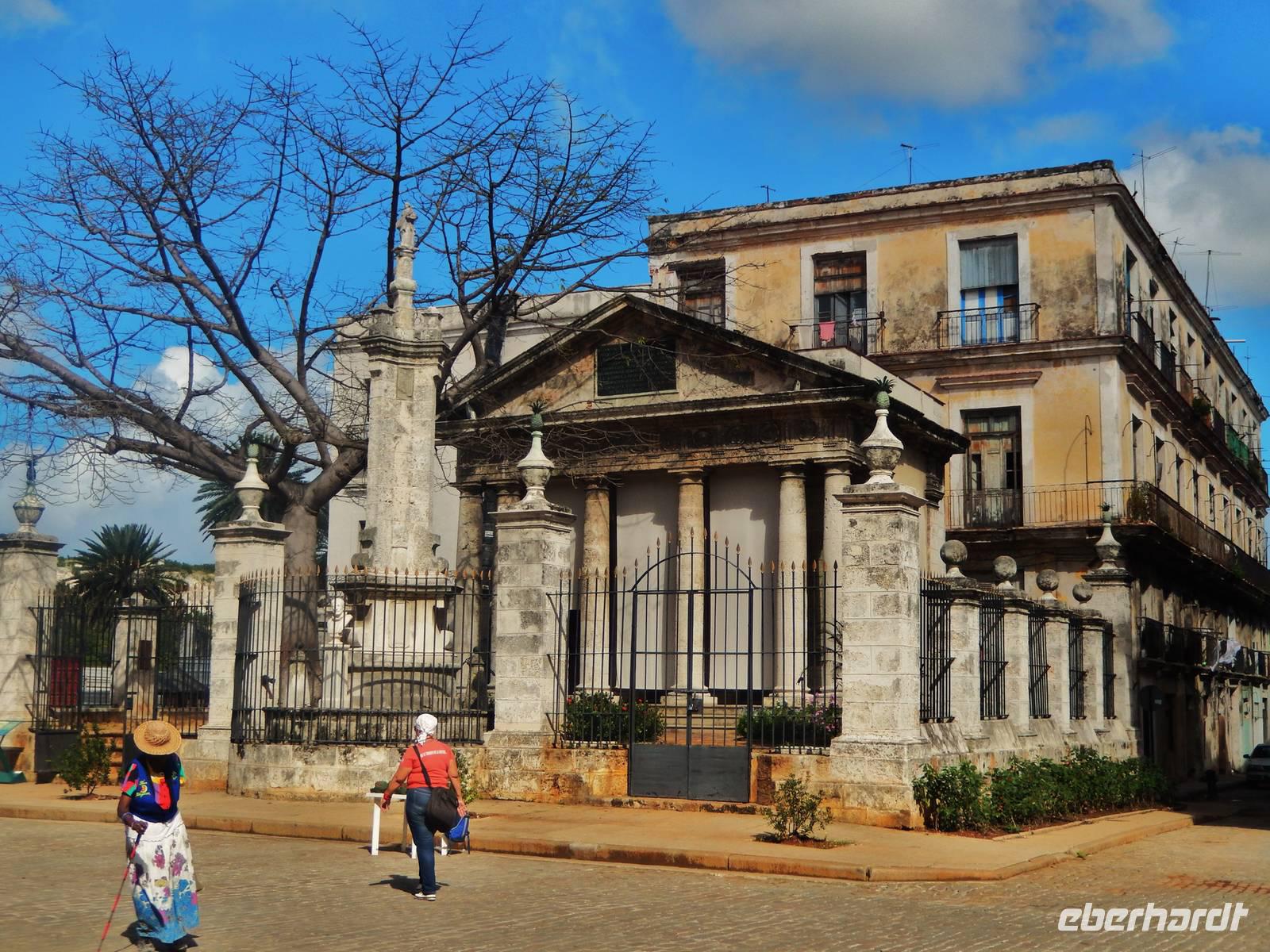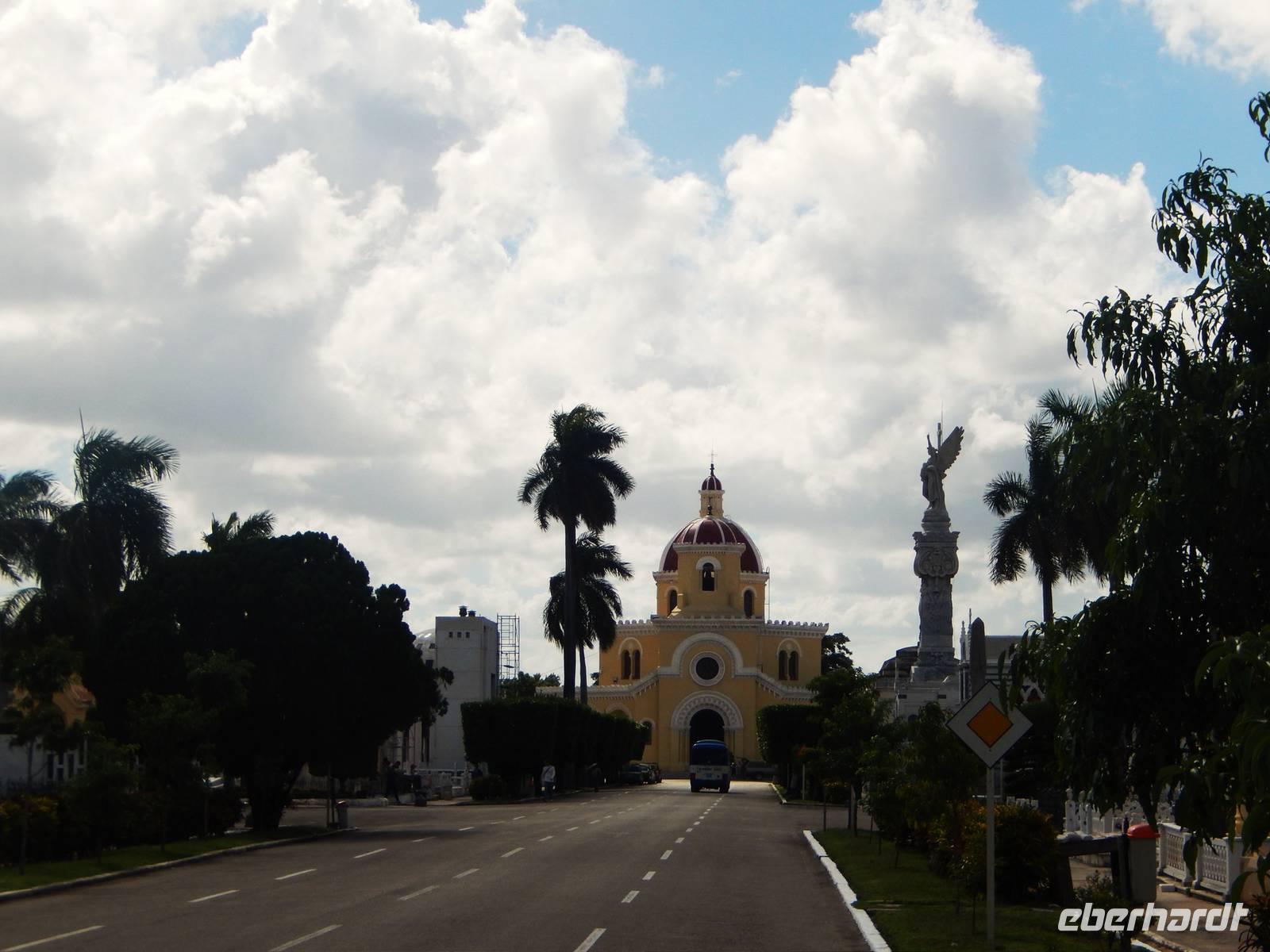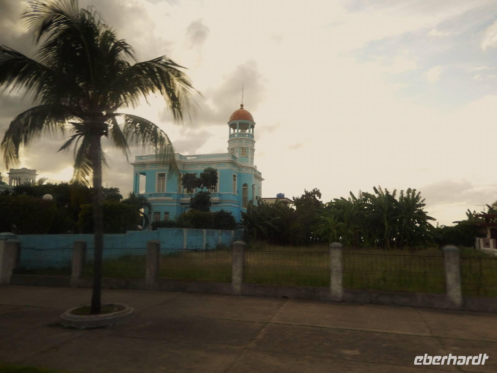 Wir fahren durch die Avenida Garzon, mit den bunten Kololnialhäusern, und stoppen auf der Pista Alegre, einem vom Orkan zerstörten Reichenviertel, wo wir auch das restaurierte Haus der Bacardi Familie sehen. Am Baseballstadion (Nationalsport Kubas) stoppen wir am Revolutionsplatz und an der Moncada Laserne, wo am 26.07.1953 die erste Revolution stattfand. Fidel Castro hat hier an jenem Tag mit dem Überfall des zweitgrößten Amreestützpunktes des Landes, ein Zeichen zum Beginn des bewaffneten Kampfes gegen die Diktatur gegeben. An der heutigen Schule verweilen wir etwas und Luis erklärt uns den damals stattgefundenen Überfall und bringt uns die Geschichte Kubas näher.