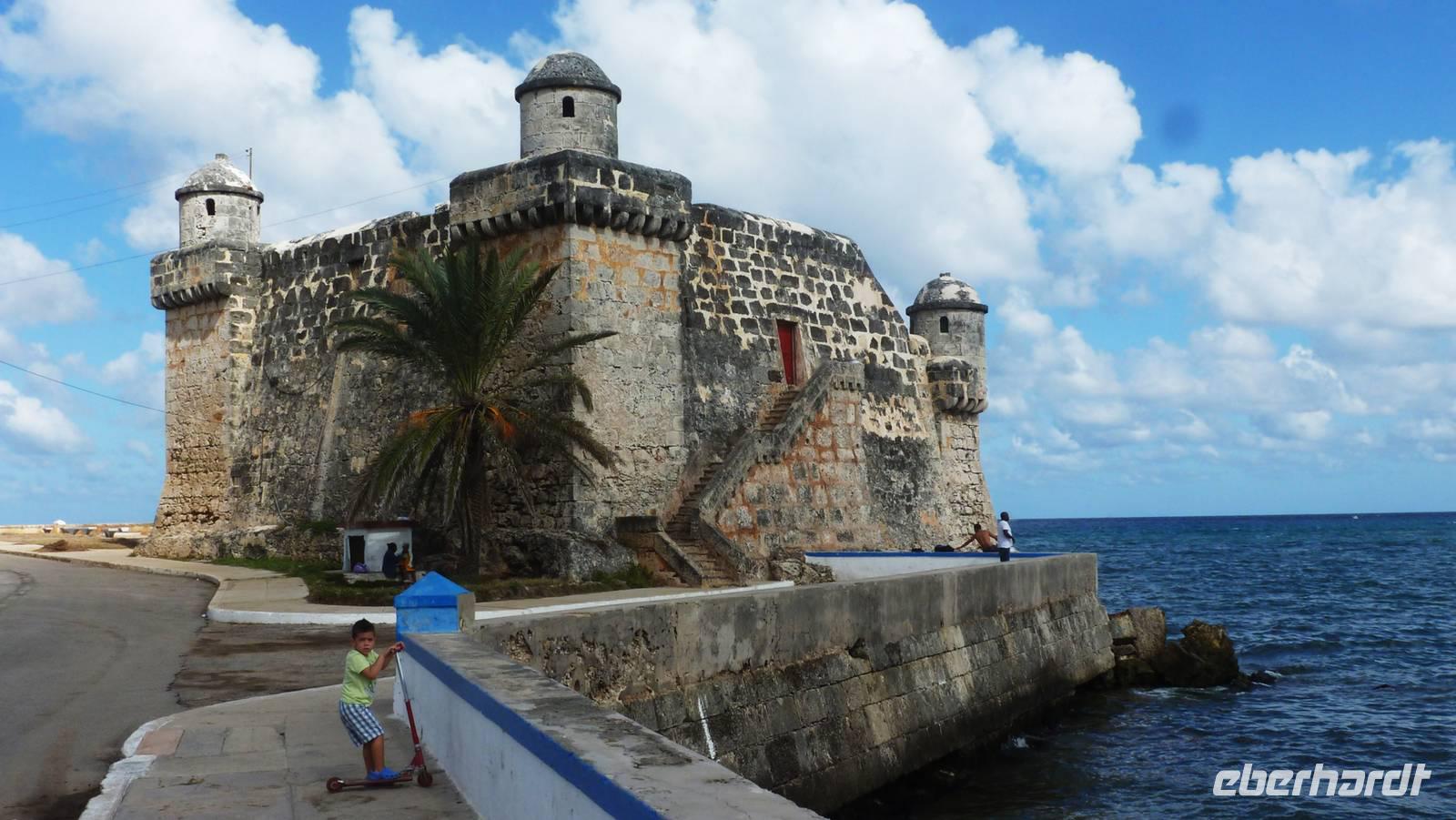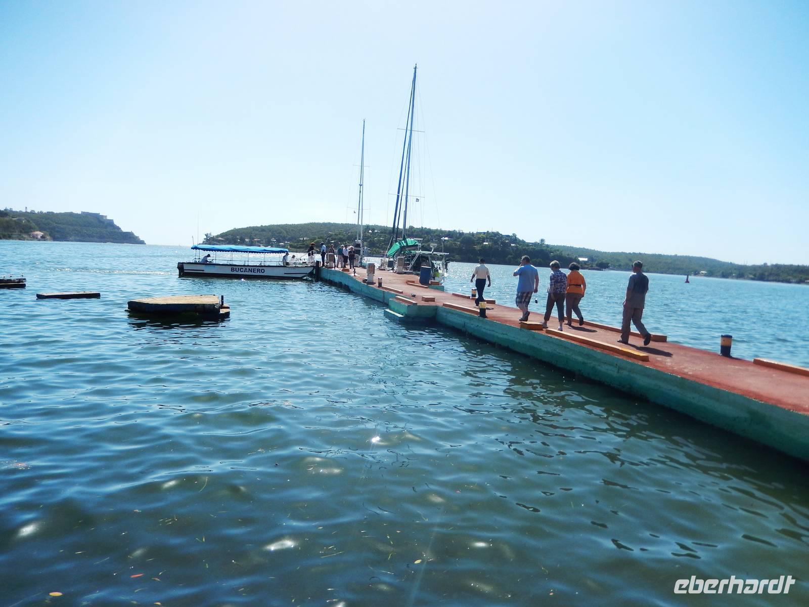 Nach einem kleinen Spaziergang durch Santiago de Cubas belebte Gassen fahren wir weiter zur Festung Castillo el Morro. Auf der ehemaligen Anti-Piraten-Festung, die heute zum UNESCO Weltkulturerbe gehört, haben wir eine wunderschöne Aussicht auf die Karibik bis hin zu den Sierra Maestra. In der Nähe auf einer kleinen Insel befindet sich unser heutiges Mittagsrestaurant, welches wir per Boot erreichen. Im kühlen Schatten auf der von Möwen umkreisten Terrasse, genießen wir Fisch mit Käse und Garnelen überbacken.
