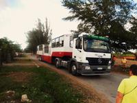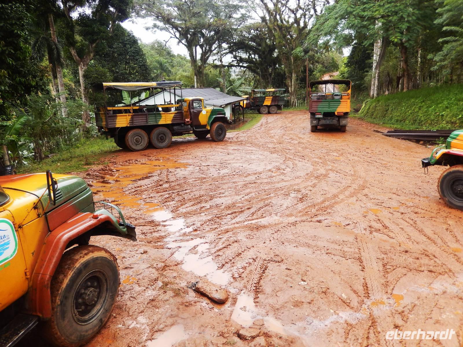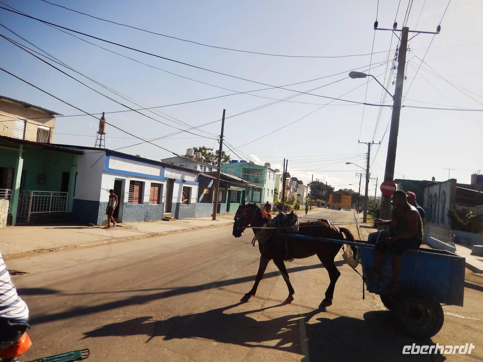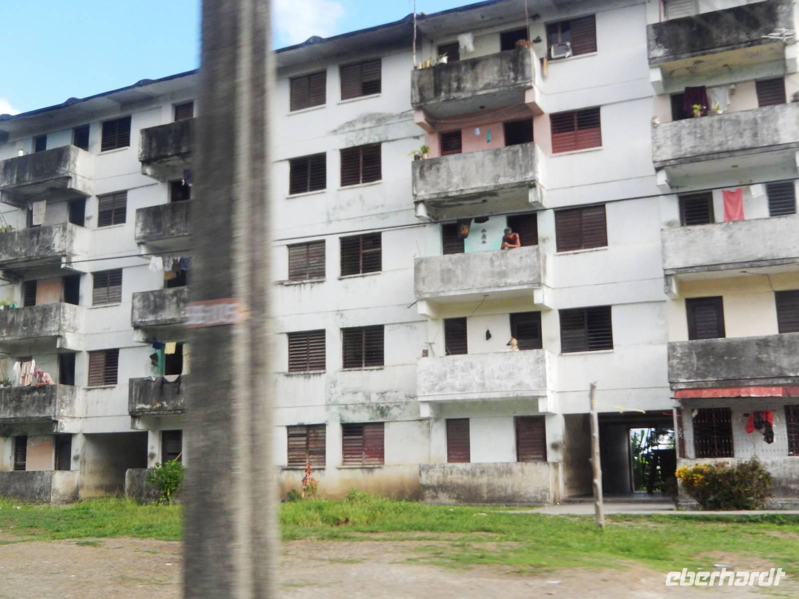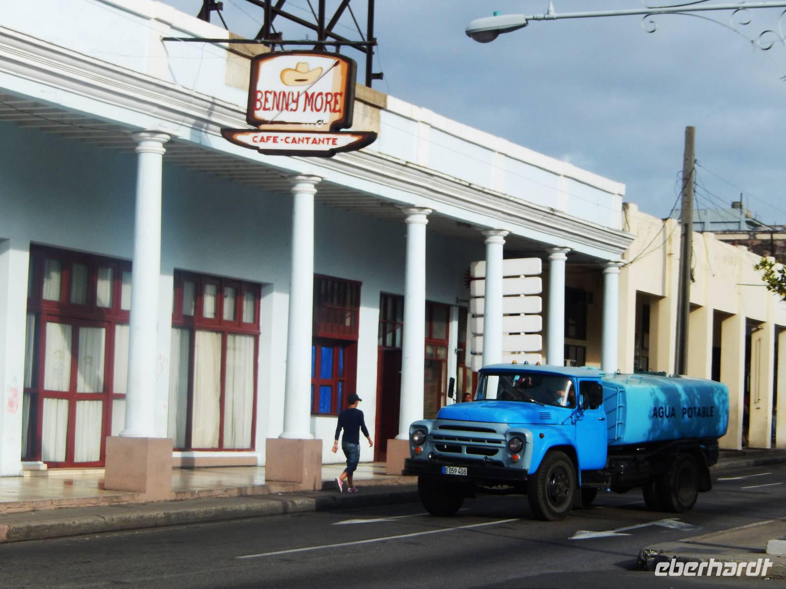 Wir begeben uns auf unsere Stadtrundfahrt durch Santiago de Cuba und Luis gibt uns erste Erläuterungen zum Land mit seinen Wohnungs- und Transportproblemen. Unser sympatischer und ständig gut gelaunter Luis hat 3 Jahre in der DDR gelebt. In Santiago de Cuba sind wir erstaunt über die hier üblichen Busse: alte Lastwagen in allen Formen und Größen und immer bis zum letzten Zentimeter vollgestopft mit Kubanern. Diese sitzen auch geduldig am Straßenrand und warten laut Luis manchmal stundenlang auf einen Bus.