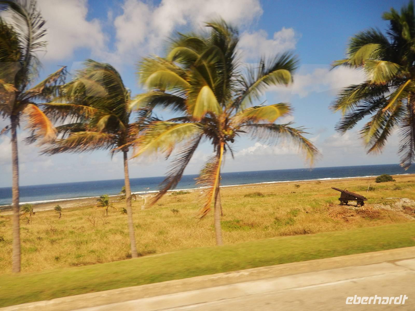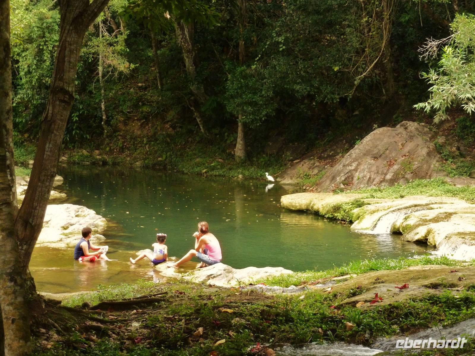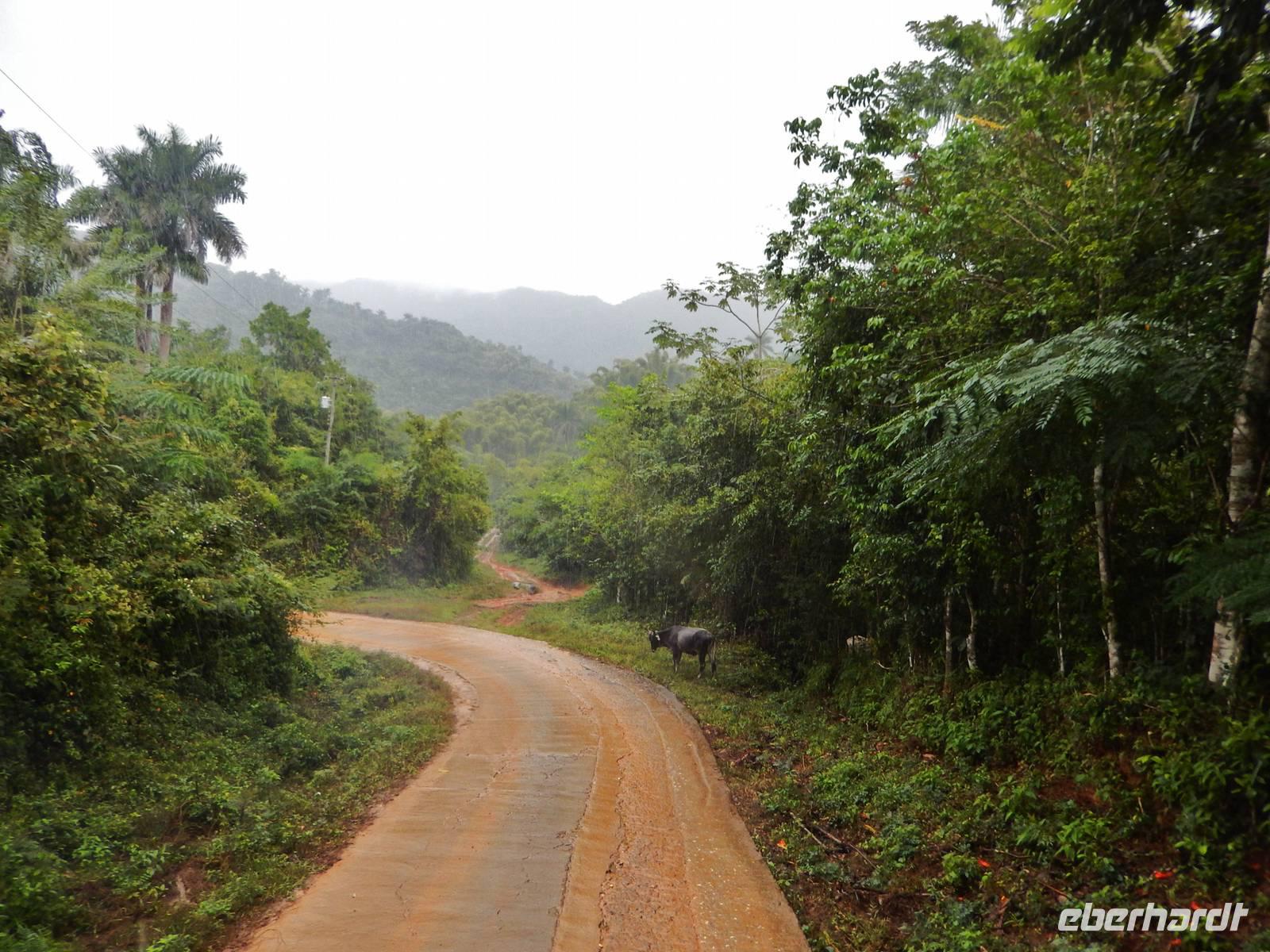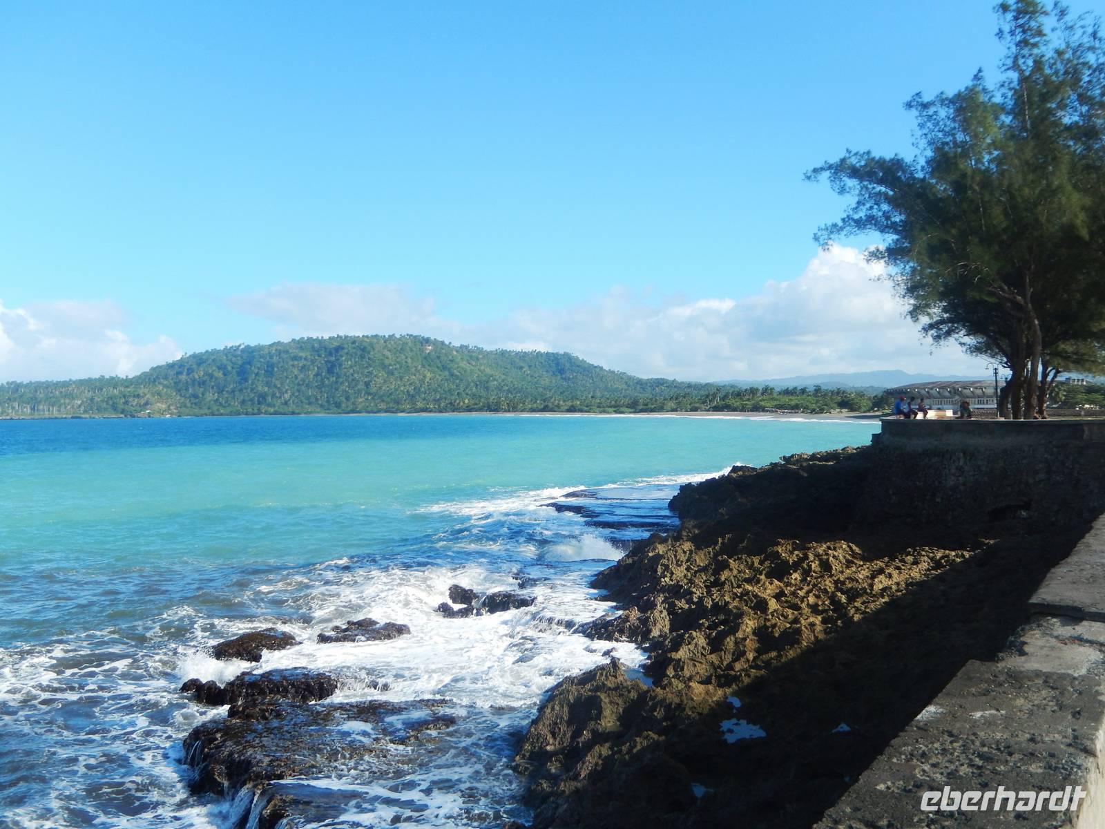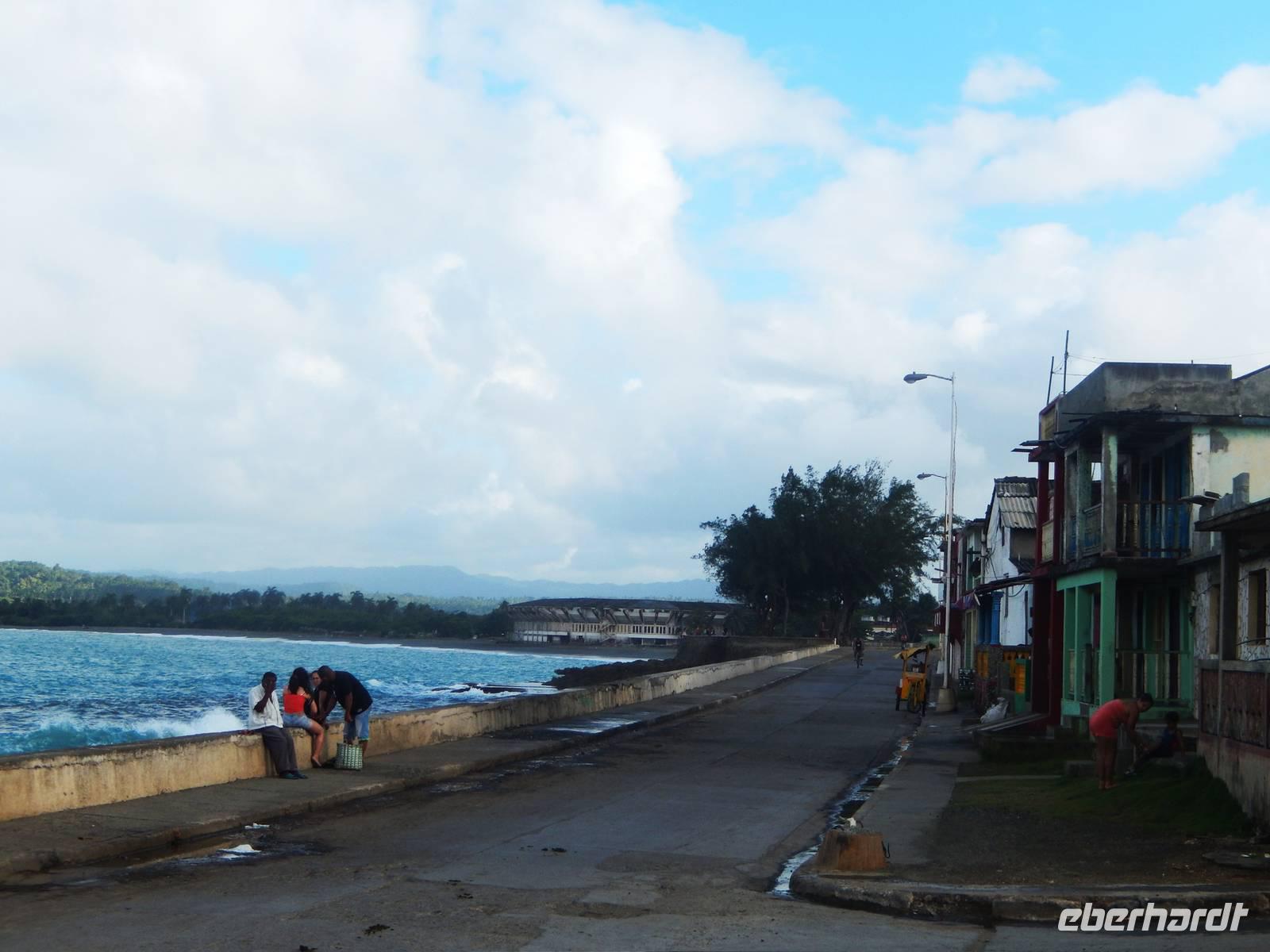 Früh am Morgen brechen wir auf und begeben uns auf den weiten Weg von Santiago de Cuba nach Baracoa. Während der Fahrt durch Landschaften, mit unzähligen Bananenstauden und Palmen, erzählt uns Luis über die Bevölkerung Baracoas. Viele ähneln hier noch ihren Vorfahren, den Indianern. An einem Fluss sehen wir Frauen, die noch wie die Indianer leben und ihre Wäsche im Fluss waschen.
