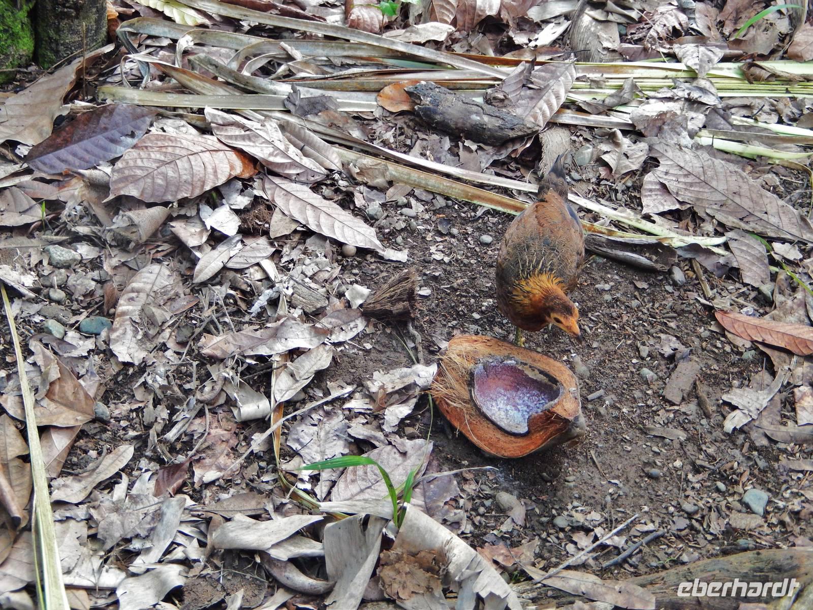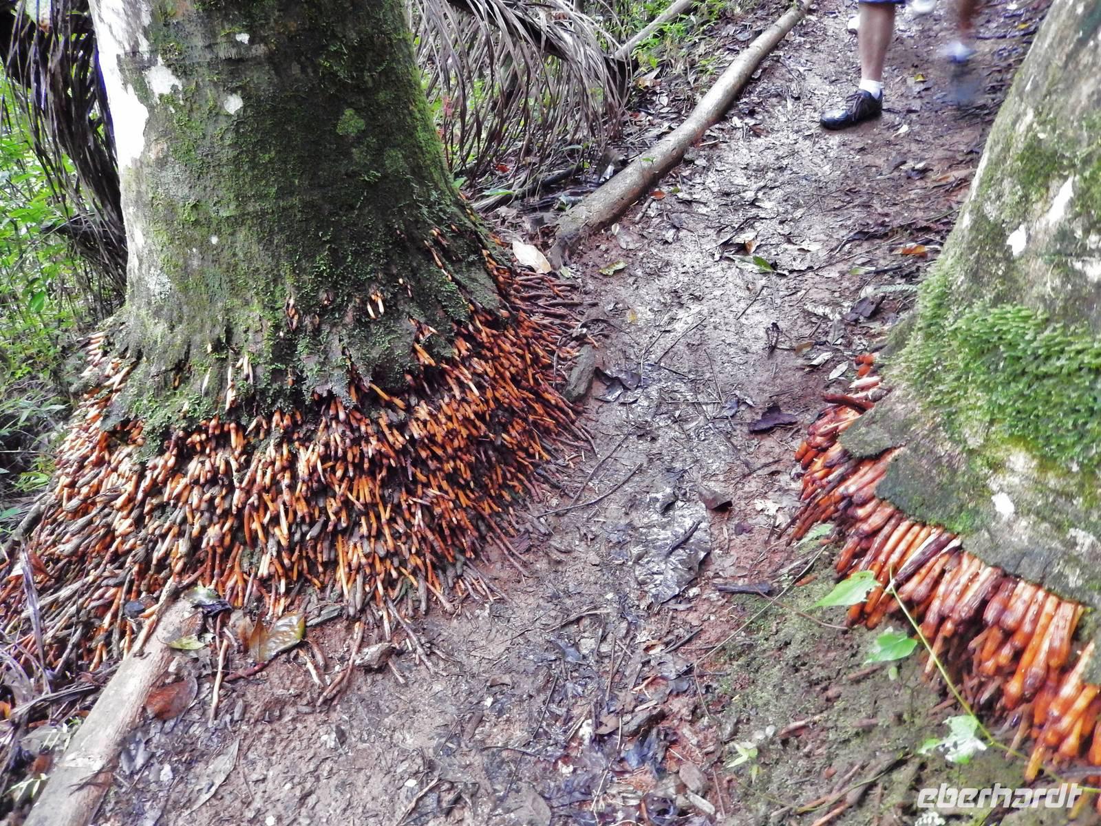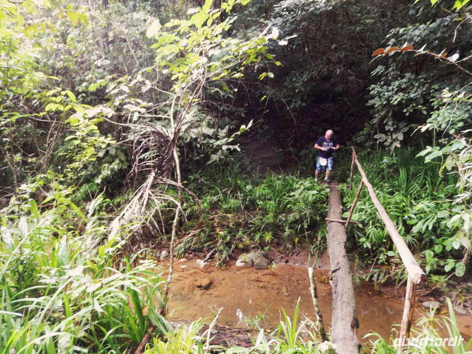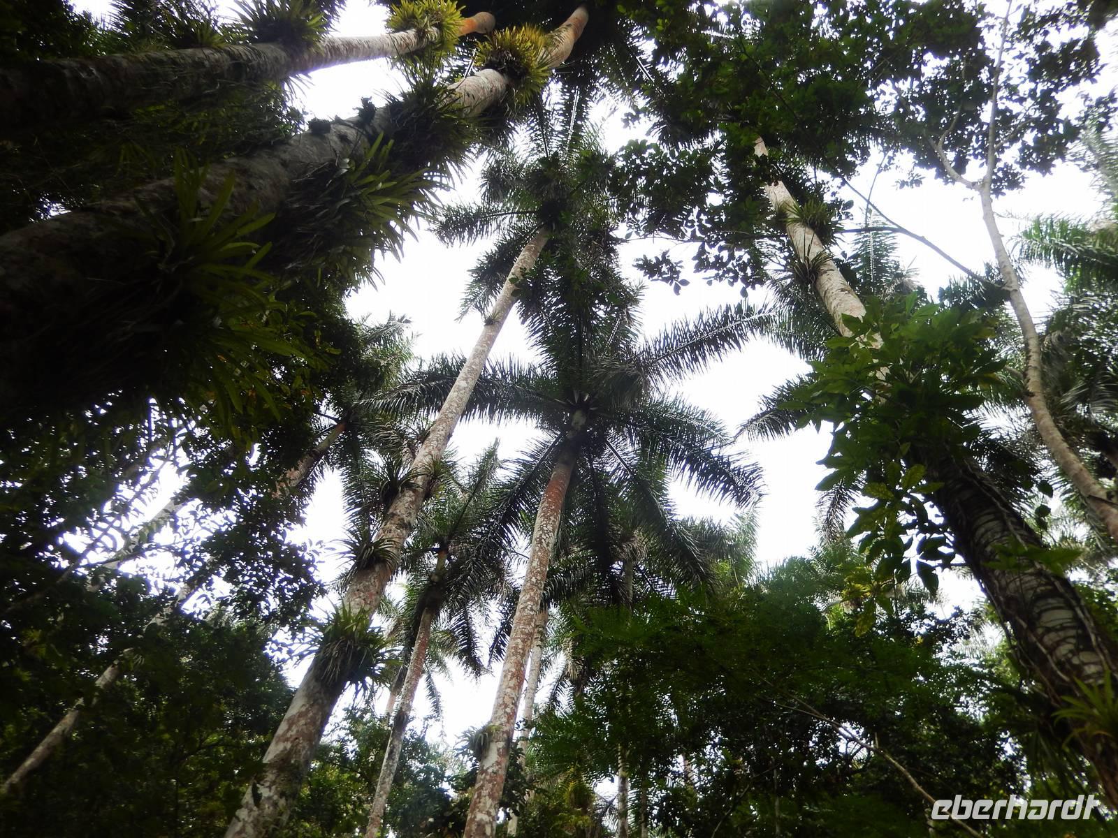 Dann erreichen wir die Finca Duaba. Hier wohnt eine Kakaobauerfamilie, welche uns mit Luis heute außerplanmäßig als Überraschung ihre Finca zeigen. Der Kakaobauer führt uns durch die Plantage, zeigt uns die Kakaobäume und anderen tropische Gewächse. Wir verkosten viele leckere Früchte, so zum Beispiel Pomelos, Cahel, Kakaokerne, Kokosnussfleisch und die ganz Mutigen unter uns probieren auch mal Termiten. Wir spazieren unter einem dichten Mix aus riesigen Bananenstauden und schönen Palmen. Luis erklärt uns die unterschiedlichen Palmenarten. Hinterher gelangen wir zu einer Konstruktion, welche die Bauern bei der Kakaoproduktion unterstützt und erfahren wie man diese handhabt. Zum Abschied trinken wir leckeren, dickflüssigen, selbstgemachten Kakao, welcher mit Kokosmilch zubereitet wurde.