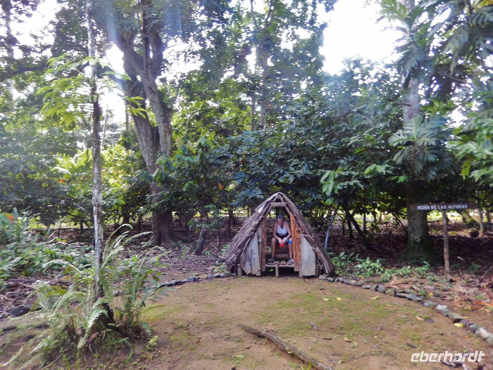 Nachdem fahren wir weiter zum Hotel Villa La Granijta. Wir wohnen in hübschen, kleinen Bungalowhäusern mit Schilfdächern. Die ganz Abgehärteten testen noch im Regen den Hotelpool. Am Nachmittag begibt sich ein Teil der Gruppe noch auf einen kleinen Spaziergang mit Luis durch die Anlage. Wir entdecken interessante Pflanzen und Bäume. Nach dem Abendessen schlafen wir direkt am Urwald bei lautem Grillenzirpen ein.