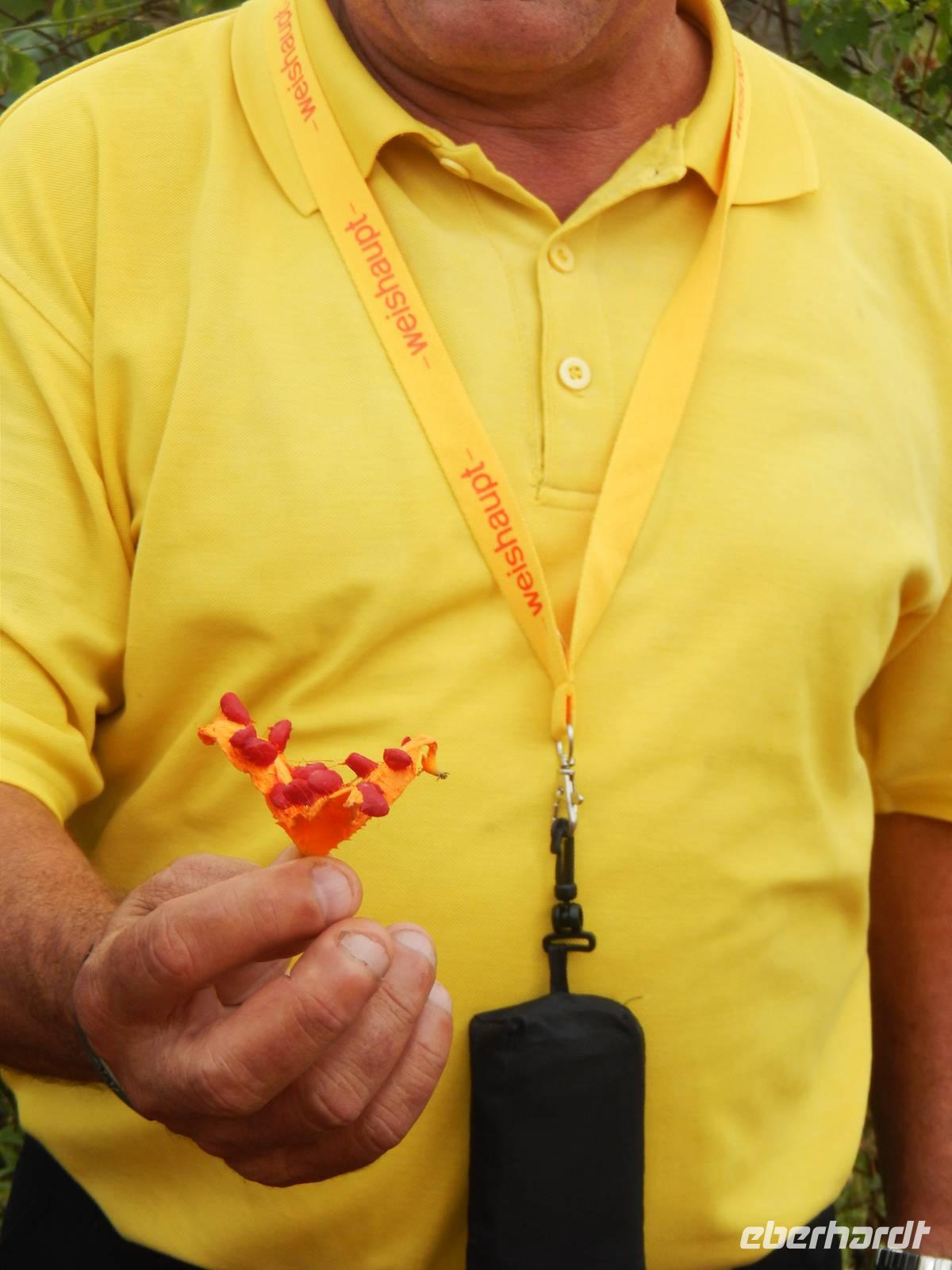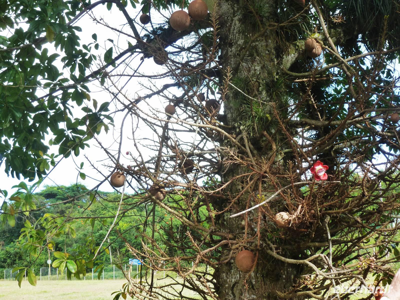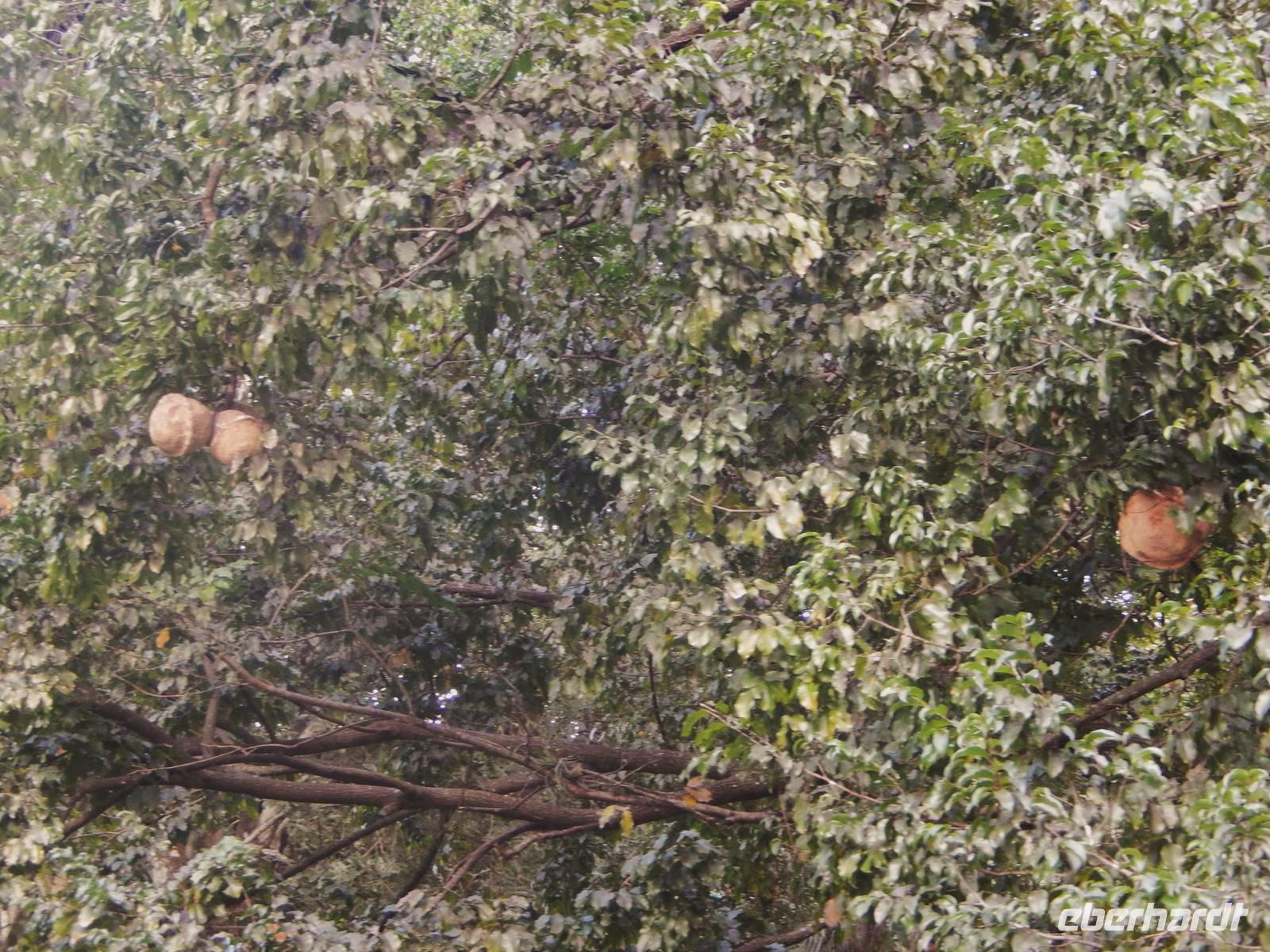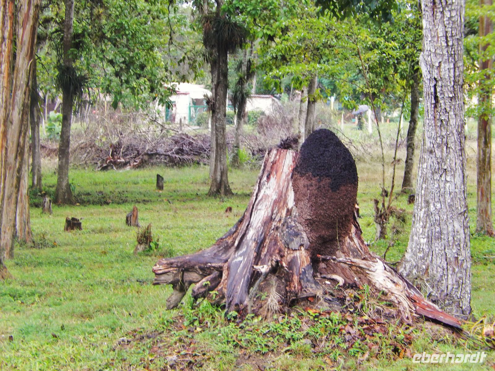 Zum Mittagessen fahren wir ins Hotel Los Caneyes, wo uns ein leckeres Buffet mit kubanischen Spezialitäten, darunter knusprig gebratenem Maniok, erwartet. Am Hotel zeigt Luis und auch einen Feuerbaum, dessen interessante, steinharte Rasselfrüchte wir mit nach Hause nehmen.
