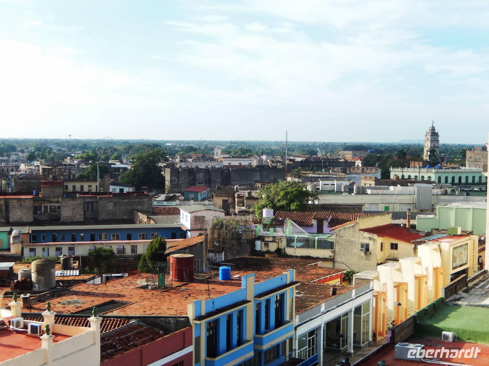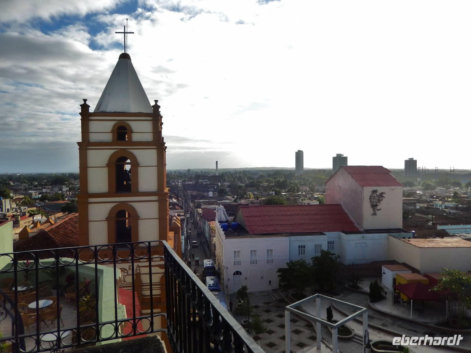 Dann geht die Reise schon weiter, denn wir nächtigen heute in Camagüey, was ungefähr in der Mitte Kubas gelegen ist. Bei Ankunft werden wir vom planmäßig vorgesehenen Hotel an ein anderes verwiesen, ein auf Kuba leider ganz normales Vorgehen. Doch wir haben Glück, denn das edle Hotel Santa Maria wurde gerade erst neu eröffnet und wir dürfen es als erste Gruppe beziehen. Beim Spaziergang zum Restaurant zeigt uns Luis einige Sehenswürdigkeiten dieser reizenden Kolonialstadt. Dann fängt es an zu regnen. Wir sitzen im Trockenen und werden bei einem leckeren Essen von Musik der berühmten Gruppe Buena Vista Social Club berieselt.
