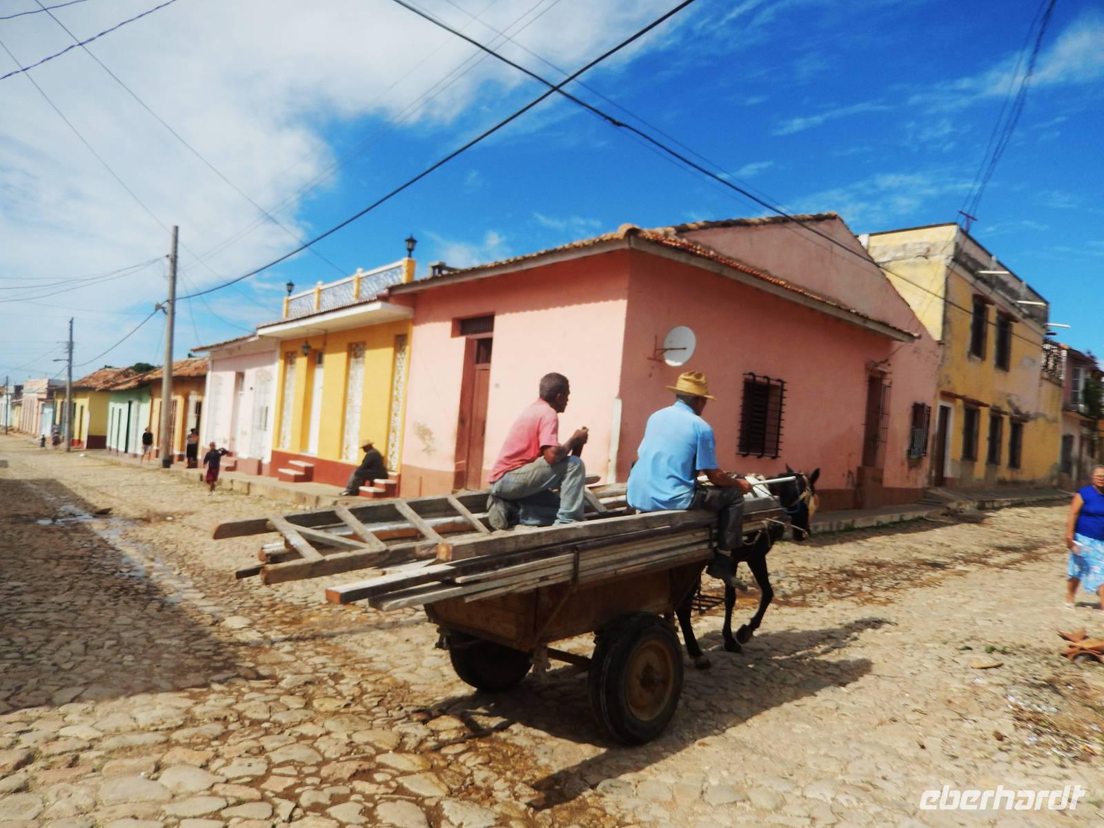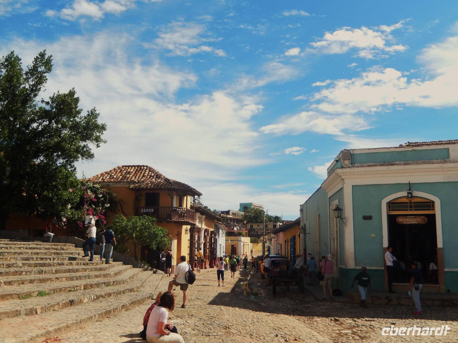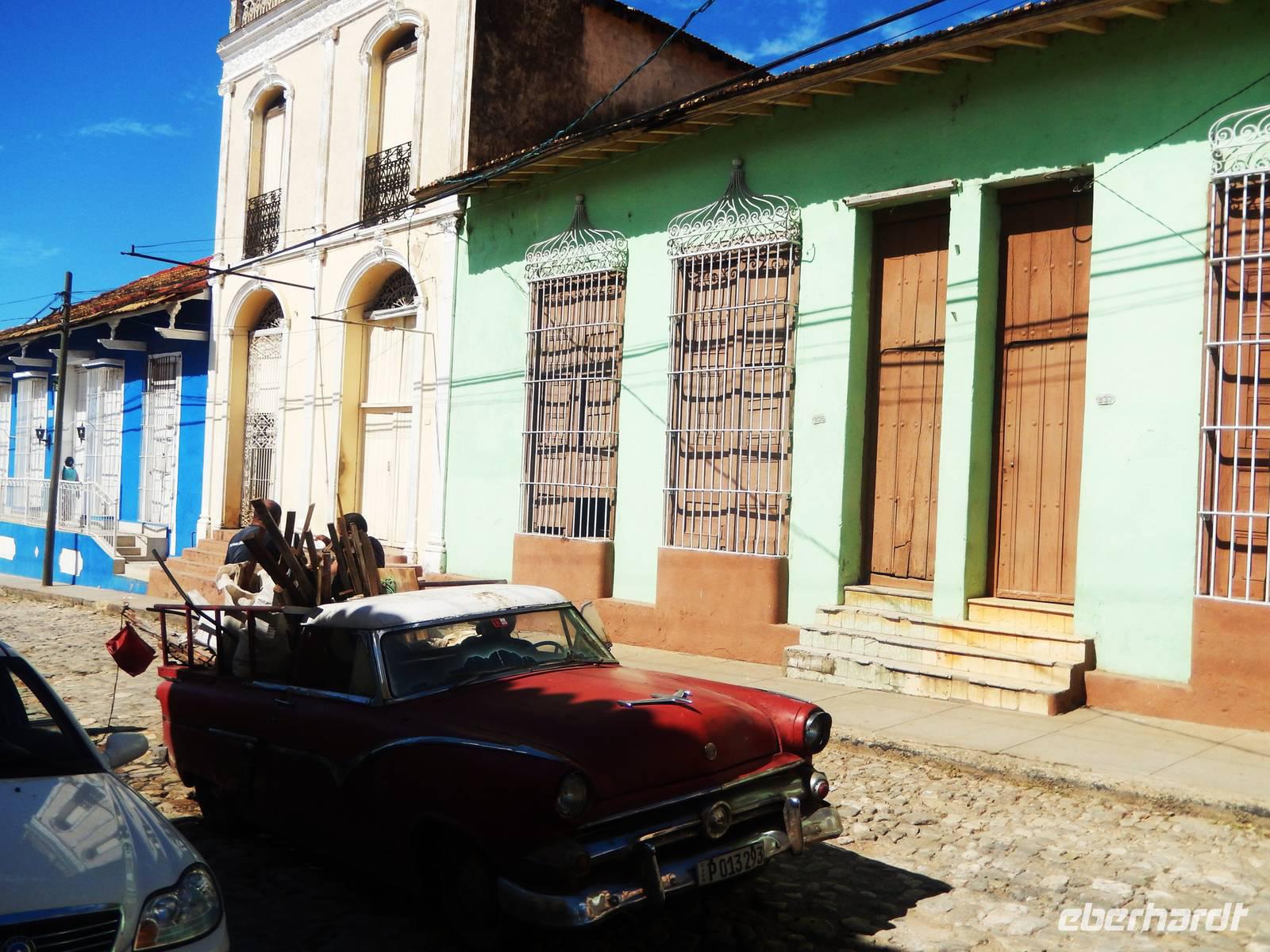 Später fahren wir nach Trinidad auf halten unterwegs nochmals an einem Aussichtspunkt, welcher uns die Schönheit dieses grünen Tals zeigt. Trinidad gehört zum UNESCO Weltkulturerbe und fasziniert uns mit bunten einstöckigen Kolonialhäusern, großen, vergitterten Fenstern und historischen Bauten. Die Bevölkerung ist auf Pferdekutschen unterwegs und in ewig vergessenen Oldtimervarianten. Bei einem Stadtrundgang zeigt uns Luis auch einen Lebensmittelladen, welcher uns Deutschen unfassbar leer erscheint. Wir bummeln noch etwas über den Souvenirmarkt und begeben uns zum zentralen Platz, die Plaza Mayor. Den Besuch der bekannten Chanchanchara Bar lassen wir aus, denn diese ist zum Bersten gefüllt mit Touristen. Zum Mittagessen fahren wir in unser Badehotel Brisas del Mar und schlemmen uns durchs Buffet bevor es endlich an den ersehnten Karibikstrand geht. Bei Mojitos und 30 Grad lassen wir den Tag am weißen Strand unter Palmen ausklingend.