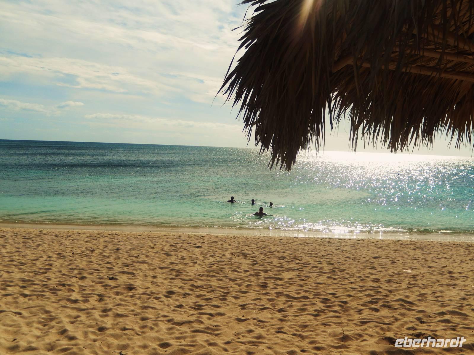 Der freie Tag begrüßt uns mit viel Sonne. Perfekten Vorraussetzungen um etwas Farbe zu bekommen! Die Hälfte unserer Gruppe unternimmt einen Ausflug und fährt mit dem Katamaran auf eine einsame Karibikinsel mit vielen Krebsen...