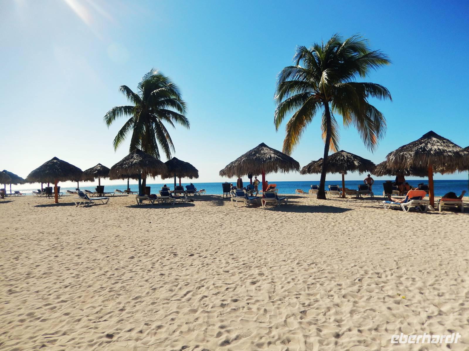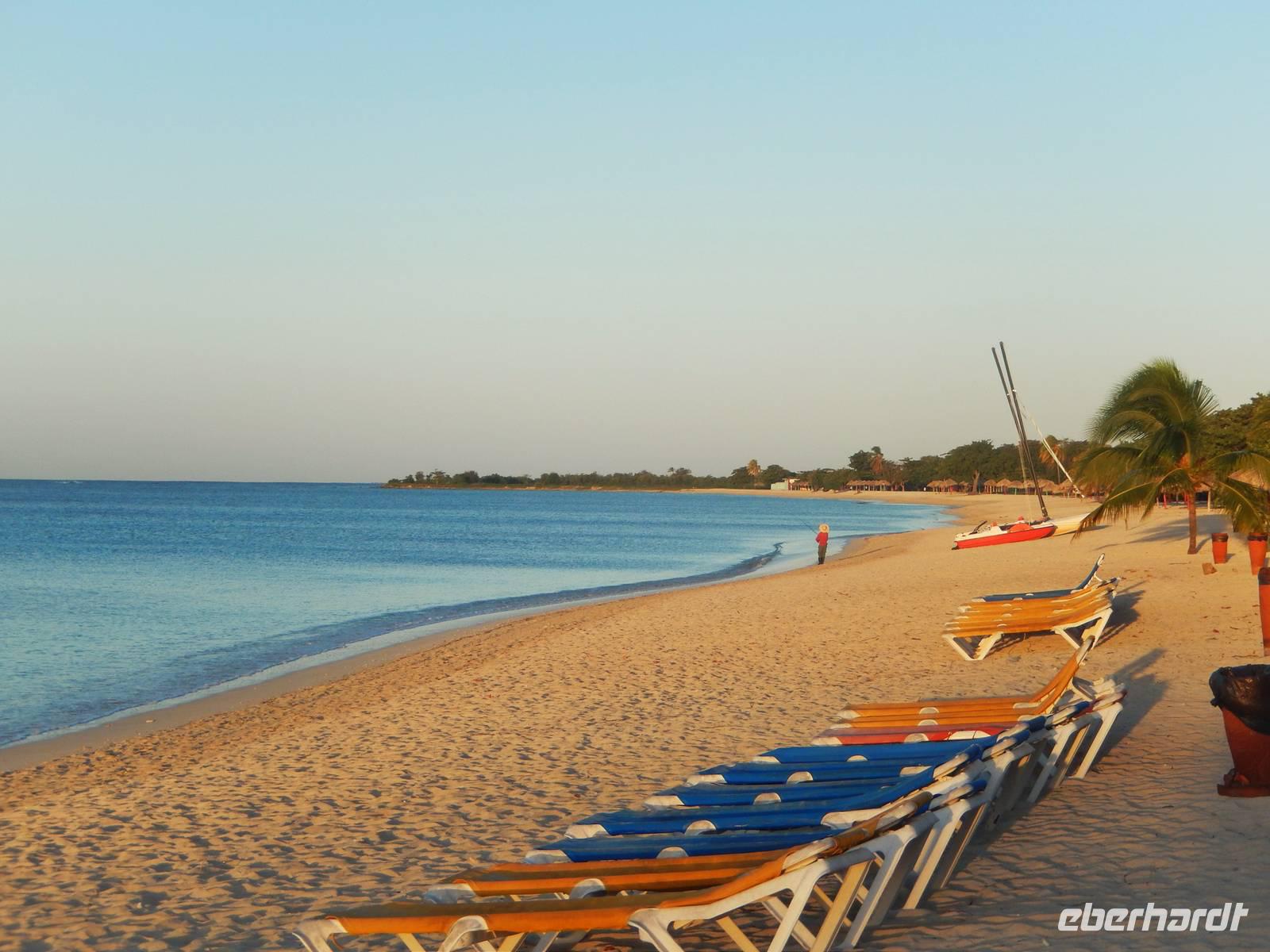 Die anderen verbringen den Tag am Strand oder unternehmen langgezogene Spaziergänge am hellblauen Wasser der Karibik. Am Abend treffen wir uns alle wieder im Restaurant Conuco, wo wir typisch kubanisches Essen genießen und die Männer von der tollen Bedienung sogar mit Zigarren verwöhnt werden. Beim anschließenden Bergfest in der Bar tauschen wir unsere heutigen erlebten Abenteuer aus und starten erholt in die zweite Hälfte unserer ereignisreichen Kubareise.