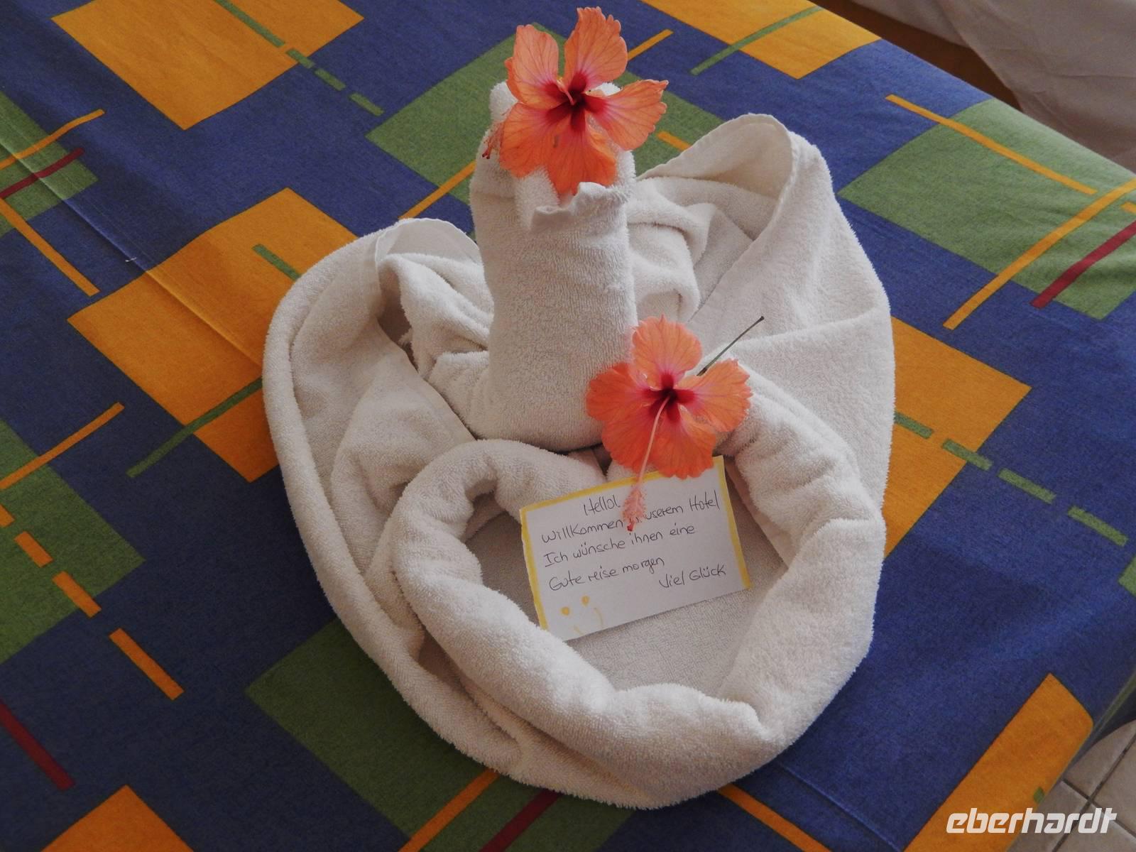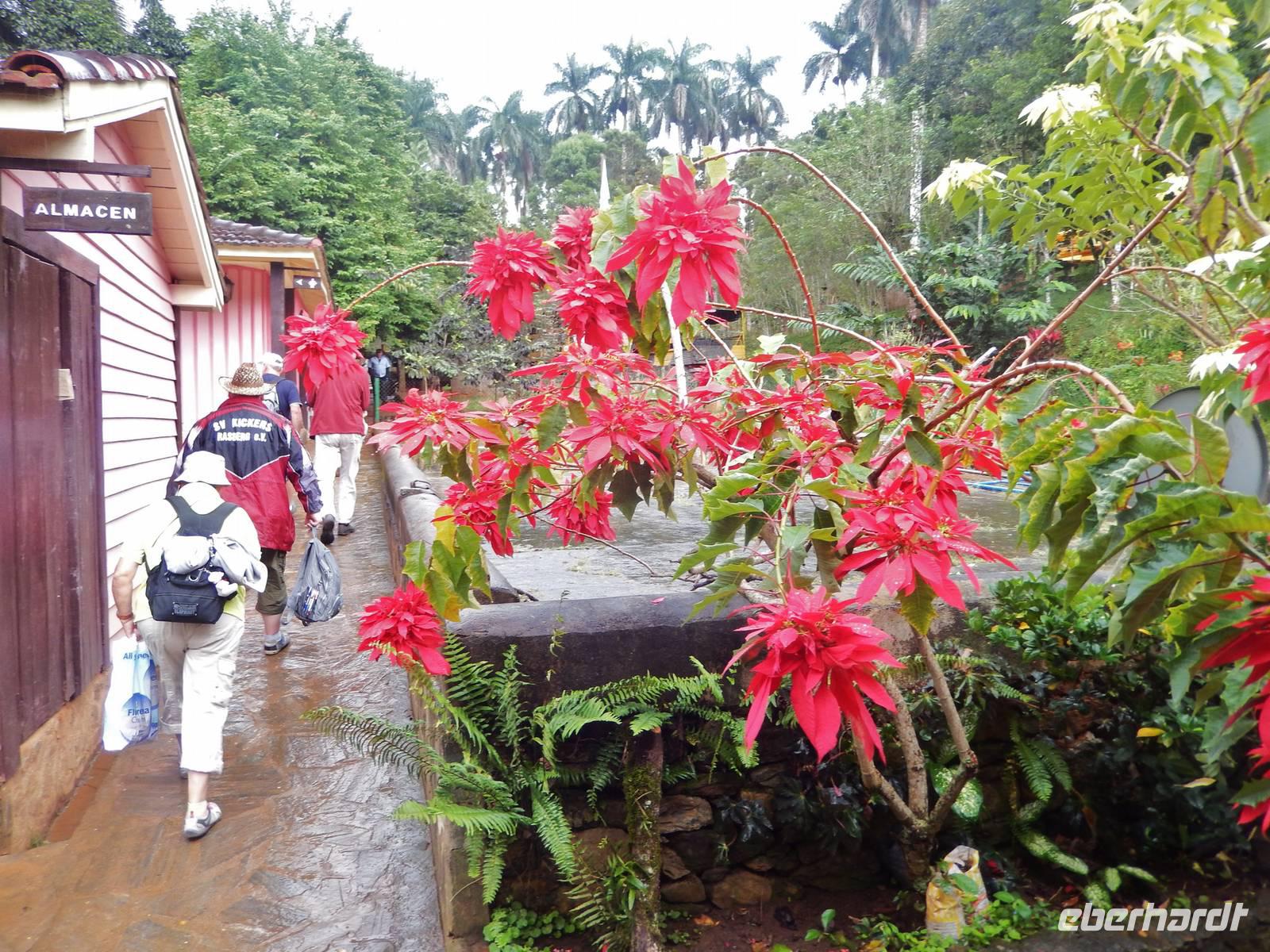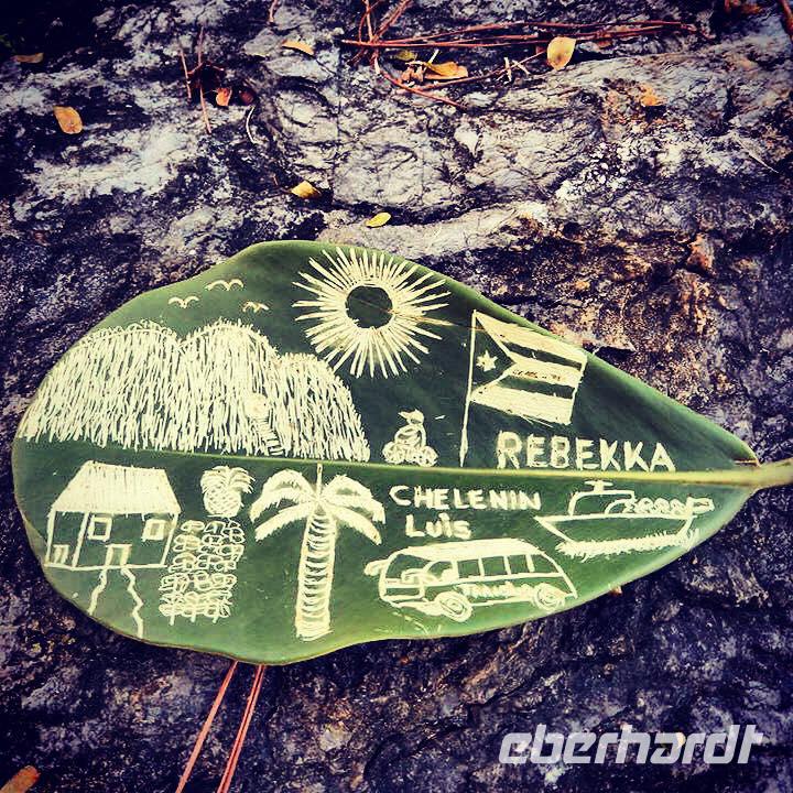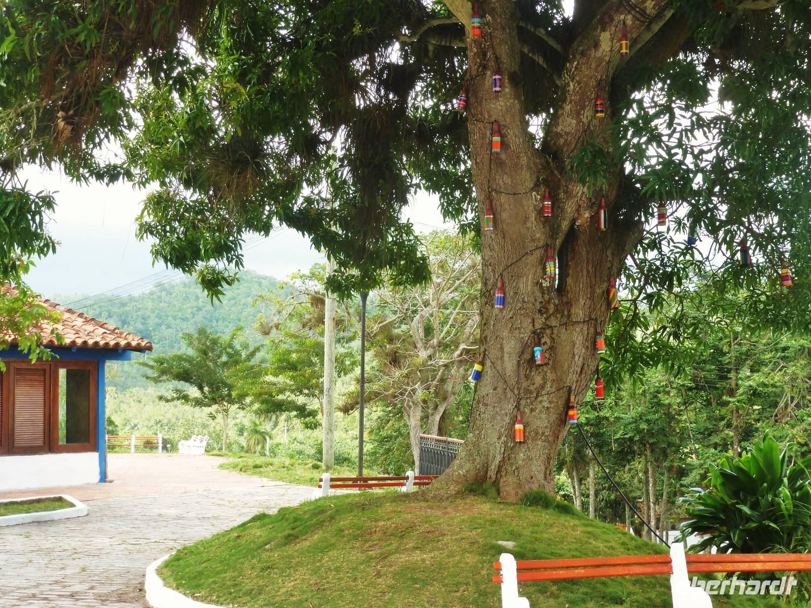 Am heutigen frühen Dezembermorgen hat sich auch der Nikolaus zu uns in den Urwald verirrt. Nach dem Frühstück zeigt uns Luis den hier wachsenden Briefbaum. Auf dessen riesigen Blättern kann man Bilder einritzen, die nach einer Weile deutlich weiß sichtbar werden. Ein besonders hübsches Exemplar als Erinnerung an unsere schöne gemeinsame Reise hat uns Luis am Abend zuvor gemalt und nun geschenkt. Heute möchten wir den Orchideengarten von Soroa besuchen. Auf den Weg dahin halten wir noch bei einem Familienarzt. Nach einer kurzen Besichtigung der Praxis geht es weiter. Luis fasst auf der Fahrt nochmal die Erlebnisse und Ereignisse unserer Reise zusammen, wir erinnern uns an schöne Erlebnisse, als auch an die nicht optimal verlaufenen, abenteuerlichen Ereignisse.