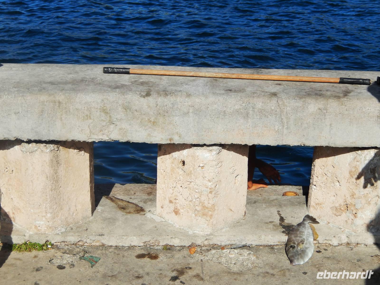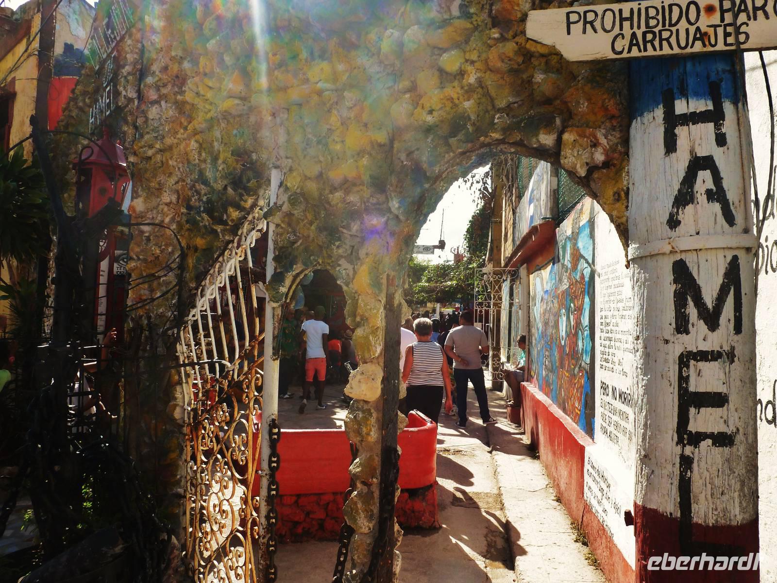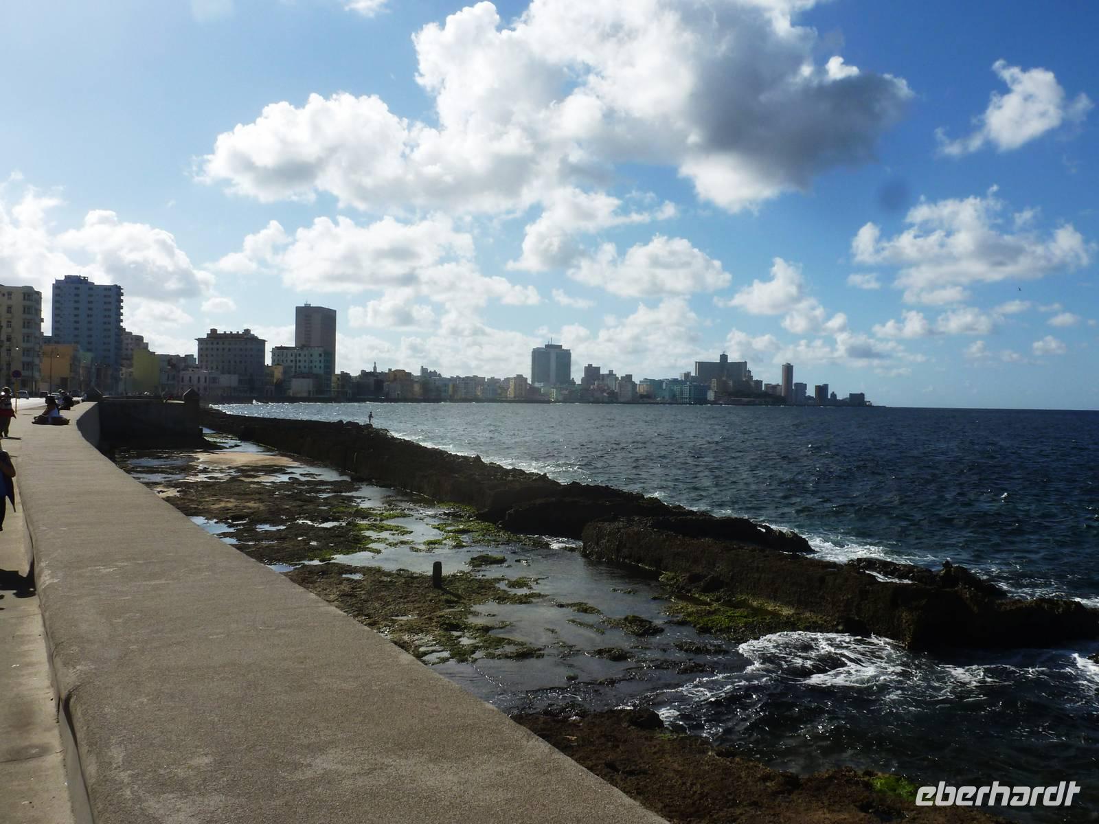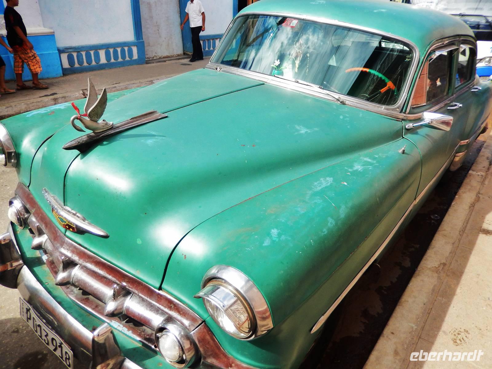 Anschließend erreichen wir Havanna, welche uns mit Ihrer Kolonialpracht bei besten Wetter begrüßt. Wir kehren in ein tolles Restaurant in Havannas Altstadt ein und genießen leckere Languste und Mojitos bei Live Musik mit Buena Vista Social Club Songs. Später begeben wir uns gestärkt auf einen kleinen Stadtrundgang durch Havanna Vieja. Um uns düsen die berüchtigten Coco- und Bici-Taxis und die schönsten Oldtimer. An den Straßen sitzen Afrokubanerinnen und nuckeln an riesigen Zigarren oder preisen lauthals ihre Wahrsagerkünste an. Zunächst inspizieren wir die Plaza de Armas (Armeeplatz) mit dem Stadtmuseum, der Columbus-Statue, dem großen Antiquitätenmarkt und dem berühmten, alten Ceibo-Baum. Dieser spielt hier am 16.11. jedes Jahr eine große Rolle. Es ist der Gründungstag Havannas (1519). Die Havaneros pilgern an diesem Tage traditionell um den Ceibo-Baum. Auf dem Weiterweg sehen wir Reste von Havannas Steinmauer und ein riesiges Bildnis aus Natursand, welches bekannte Persönlichkeiten der Kolonialzeit darstellt. Zu Fuß begeben wir uns zu Havannas Hafengelände, wo Luis uns drei farbenfrohe Oldtimer (Baujahr Mitte 19. Jahrhundert) besorgt. Nun begeben wir uns auf eine Spritztour durch ganz Havanna, lassen die Atmosphäre der Stadt auf uns wirken und uns den Wind um die Ohren pfeifen.