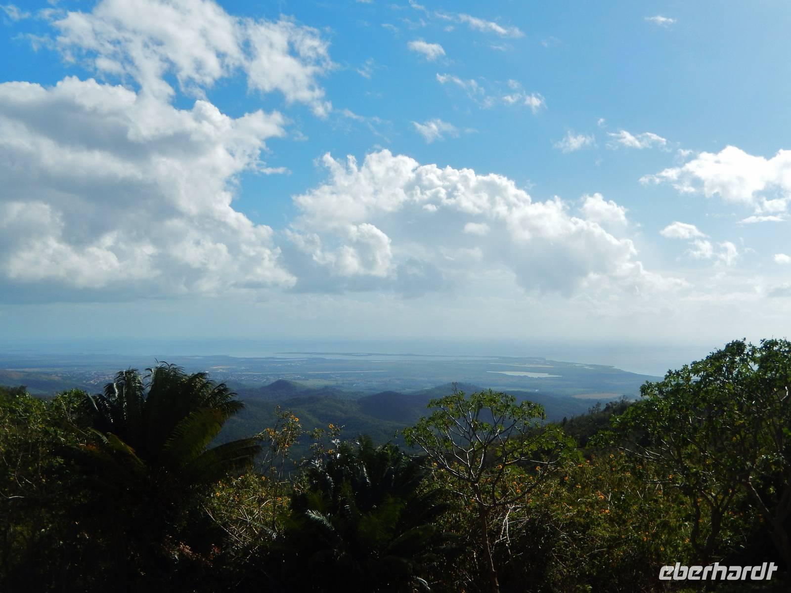 Nach einem herzhaften Frühstück brechen wir zeitig auf, denn heute werden wir viel erleben und eine weite Strecke zurücklegen. Am Rande der Stadt Baracoa gibt es einen Aussichtspunkt, der uns die Bedeutung des Namen des Ortes verdeutlicht. Aufgrund der Lage am berühmten Tafelberg El Yunque trägt die Stadt den Namen Hohes Land.